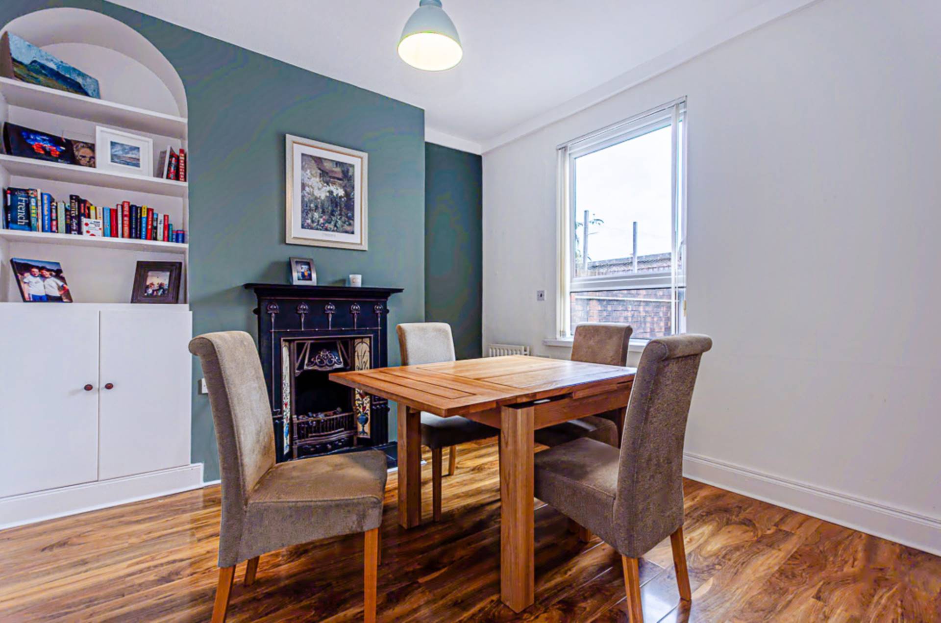 From the traditional red-brick terraced façade step inside to find period features, like the original tiled floor in the hallway and timber detailing, setting the tone for a warm and inviting atmosphere. The extended kitchen has fitted cabinets and integrated appliances and more than enough room to whip up Sunday dinners or experiment with new recipes. Plus, there is a dining room with a period fireplace where you can gather around for a laugh or two with loved ones. The living room, complete with a traditional fireplace, makes for a cosy nook to end the day.