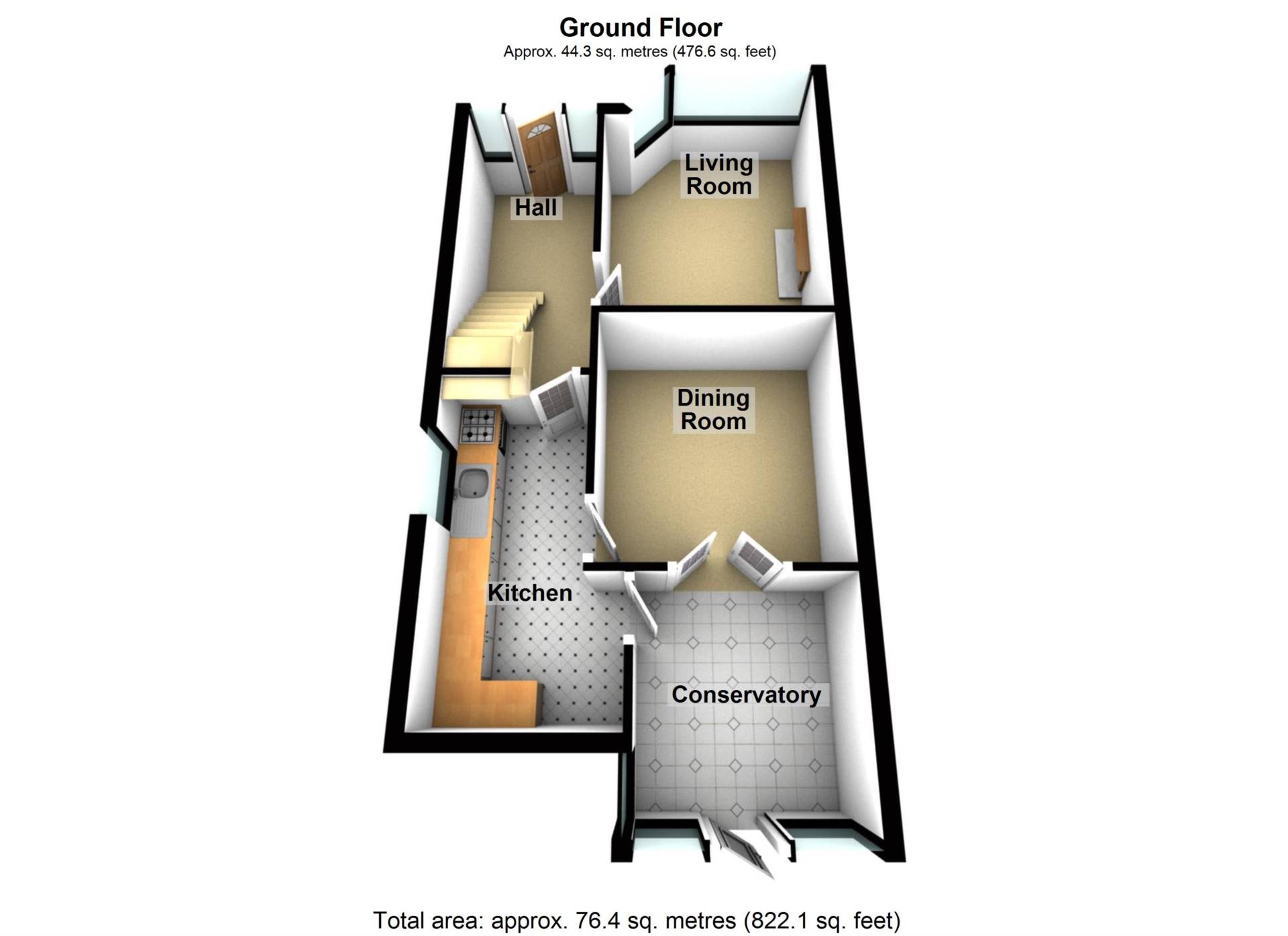 CONSERVATORY: - 9'6" (2.9m) x 8'11" (2.72m)