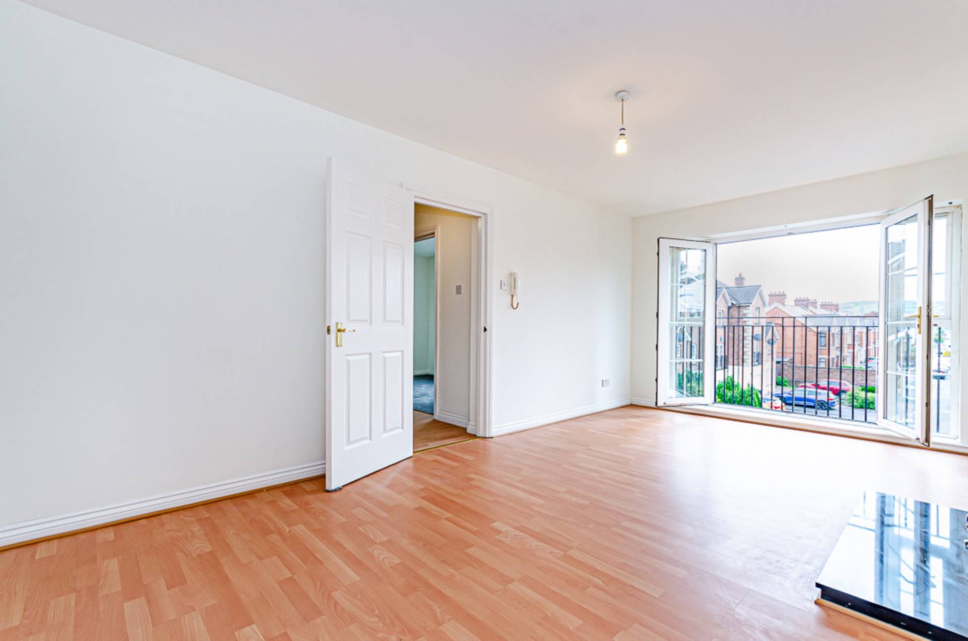 Number 14c is a second floor apartment comprising entrance hall, living room with double doors, and French balcony with a good view of the Castlereagh hills, modern kitchen, two good sized bedrooms, including master bedroom with en-suite shower room, and main bathroom.