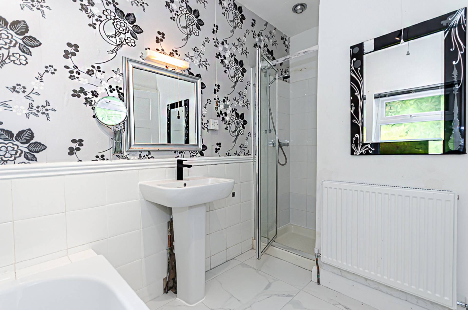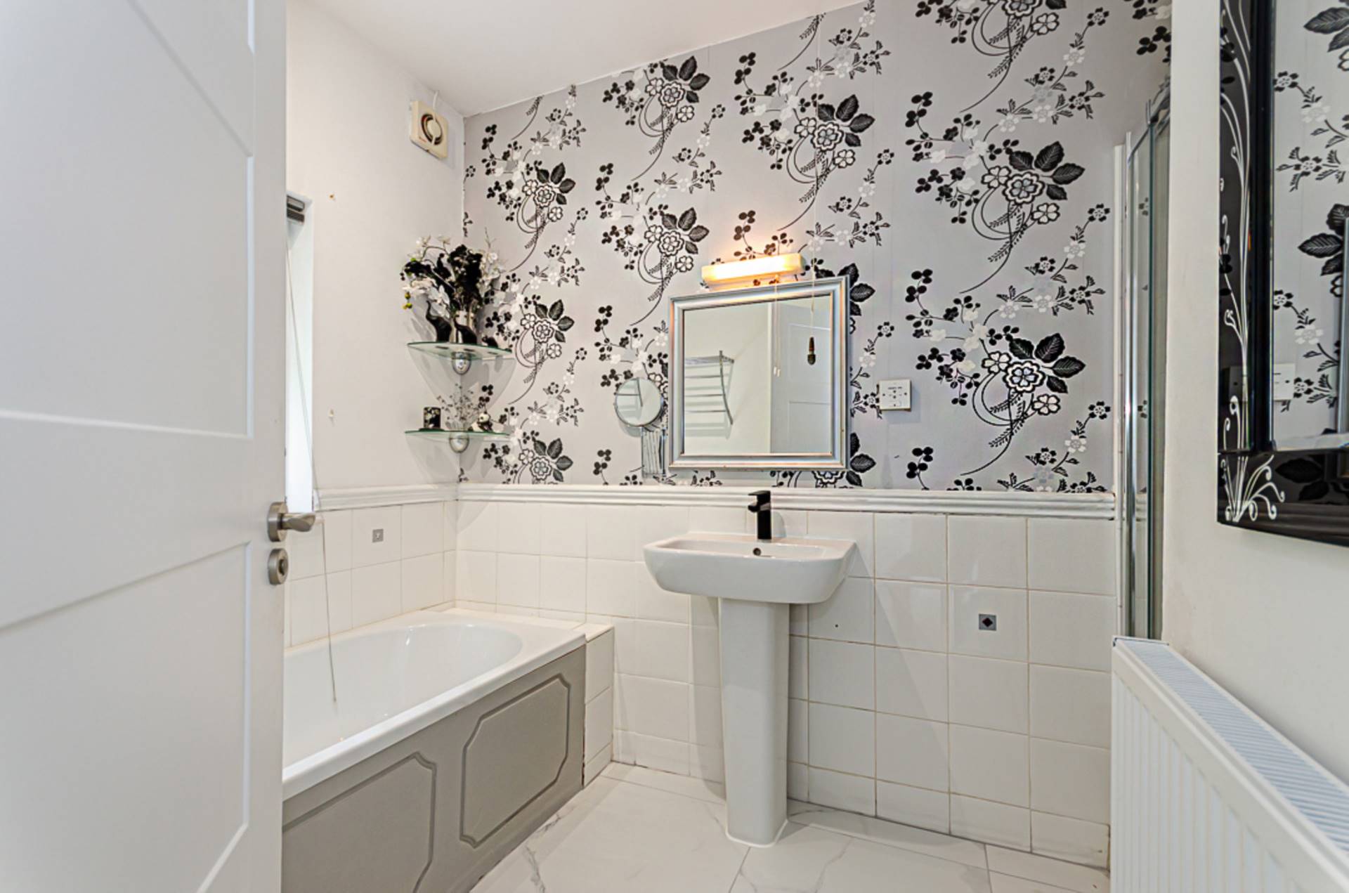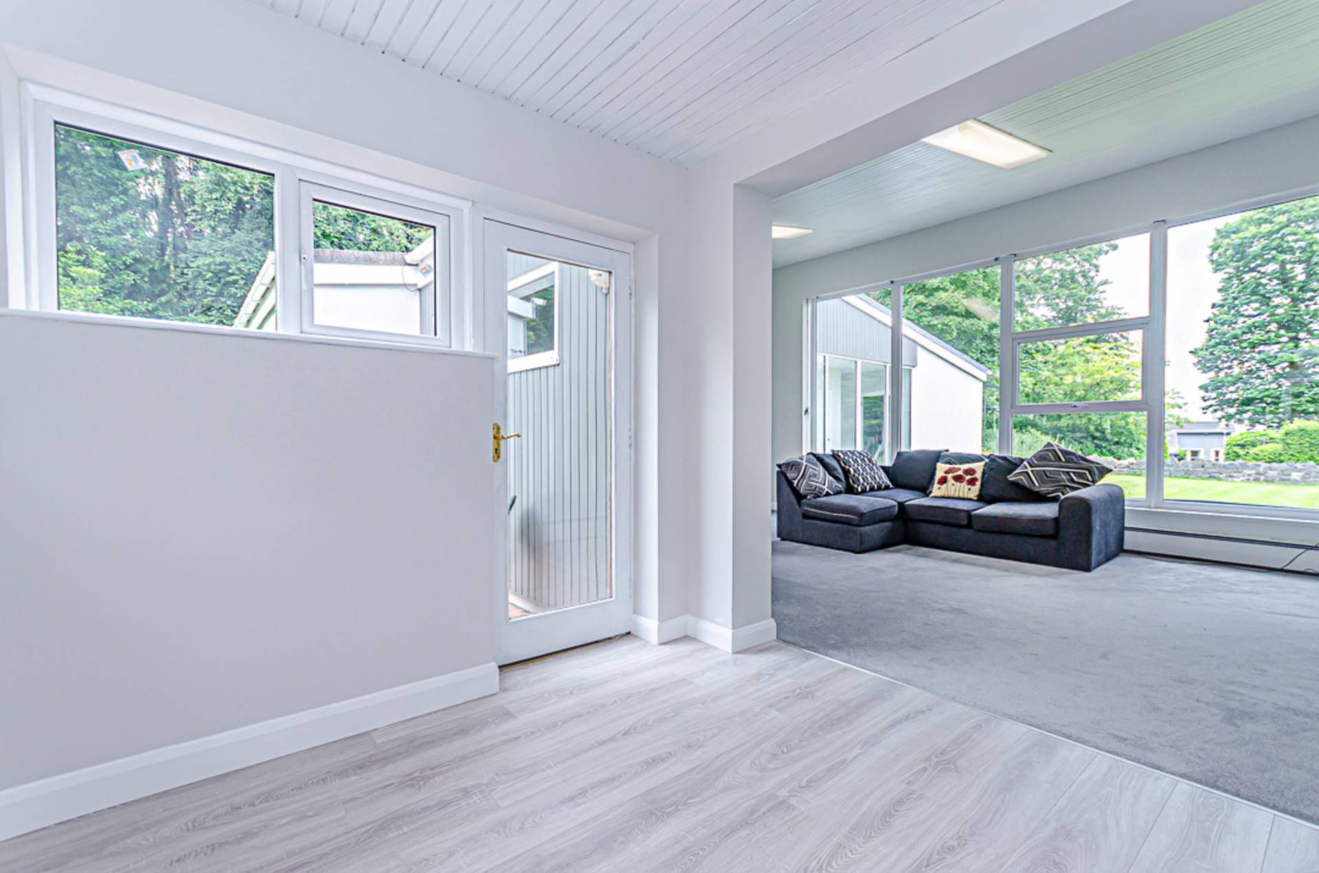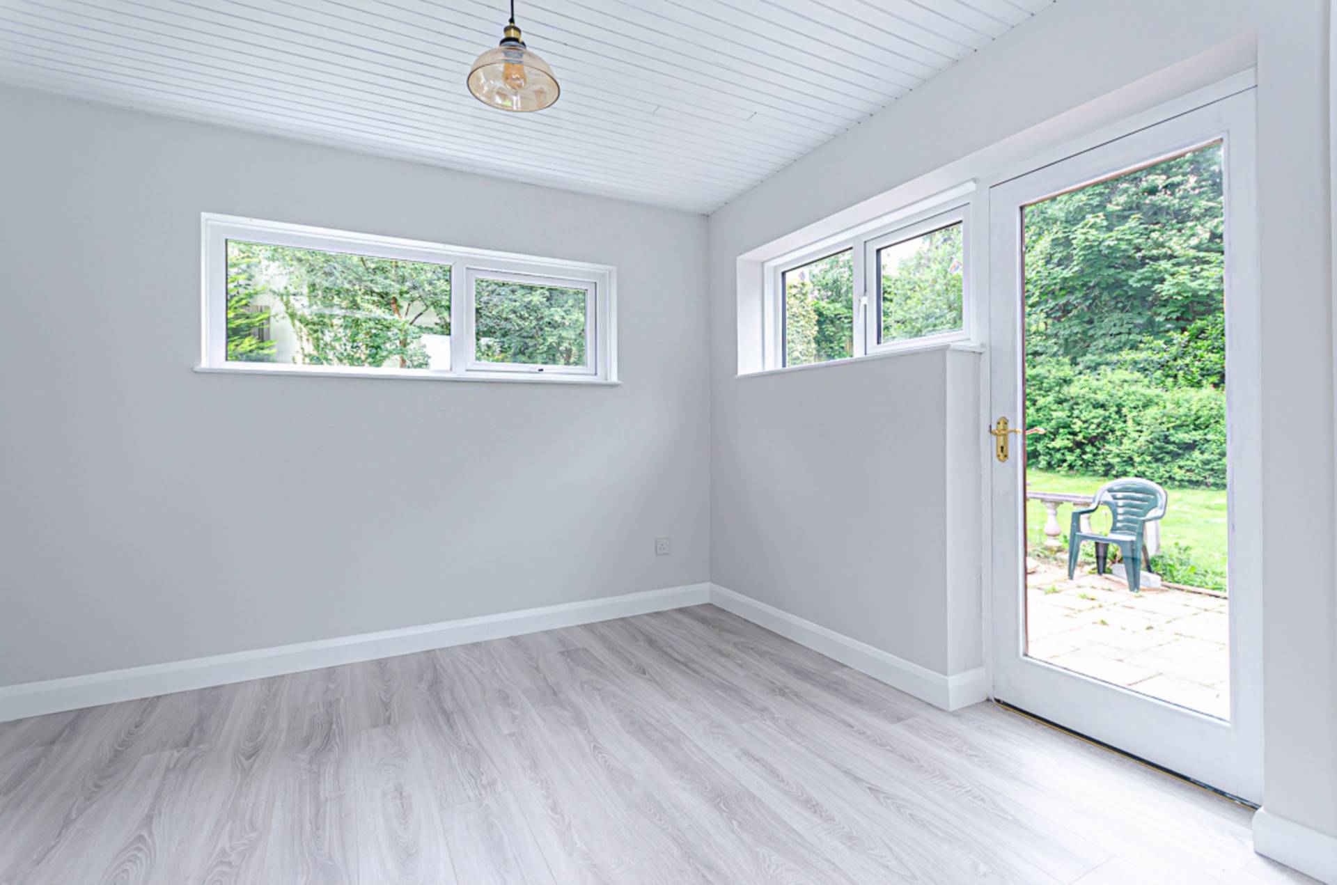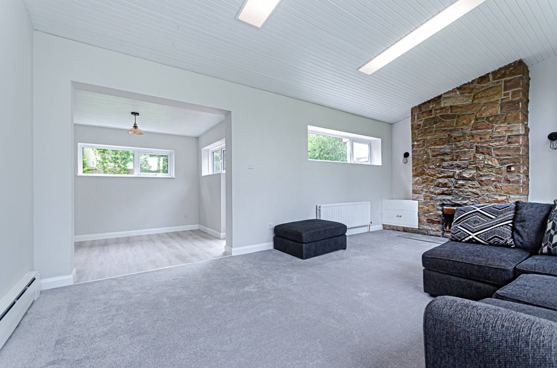 The spacious living room has large windows and a stone fireplace, making it perfect for both cosy nights in and entertaining guests. Off the living room there is an additional area with a door leading to the garden, that could be used for dining space or as a separate snug. The bedrooms are all generously sized and the modern bathrooms are well-appointed, with a bath and separate shower in one and a newly fitted shower enclosure and suite in the other, ensuring all needs are met.
