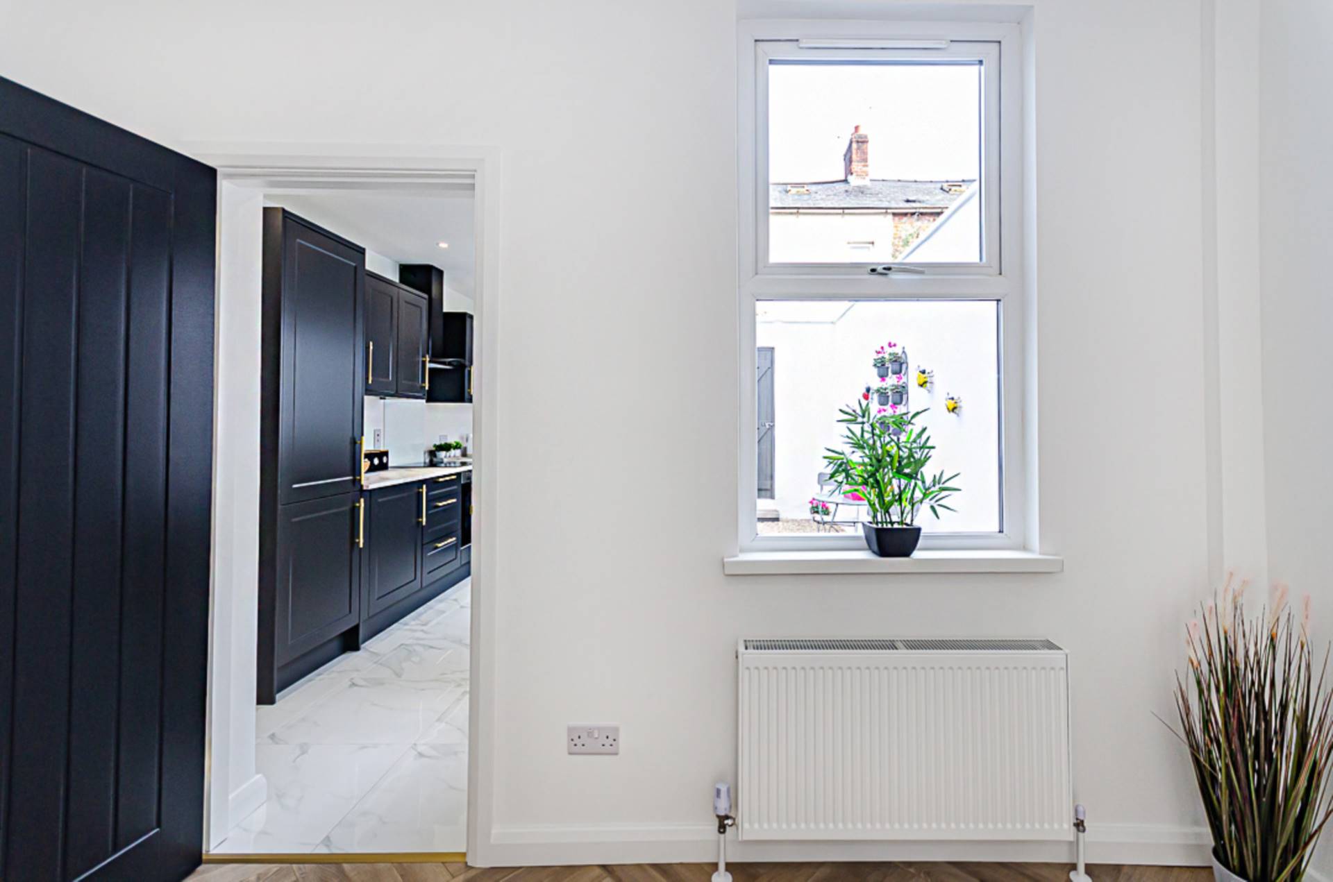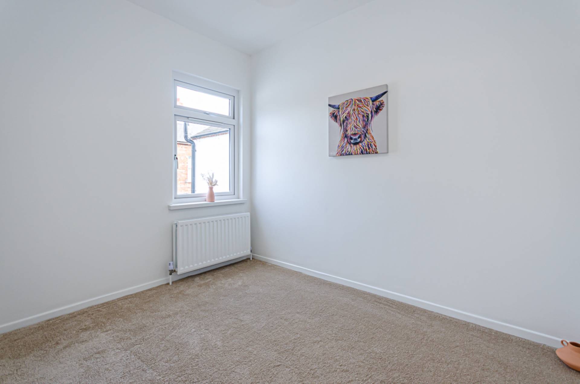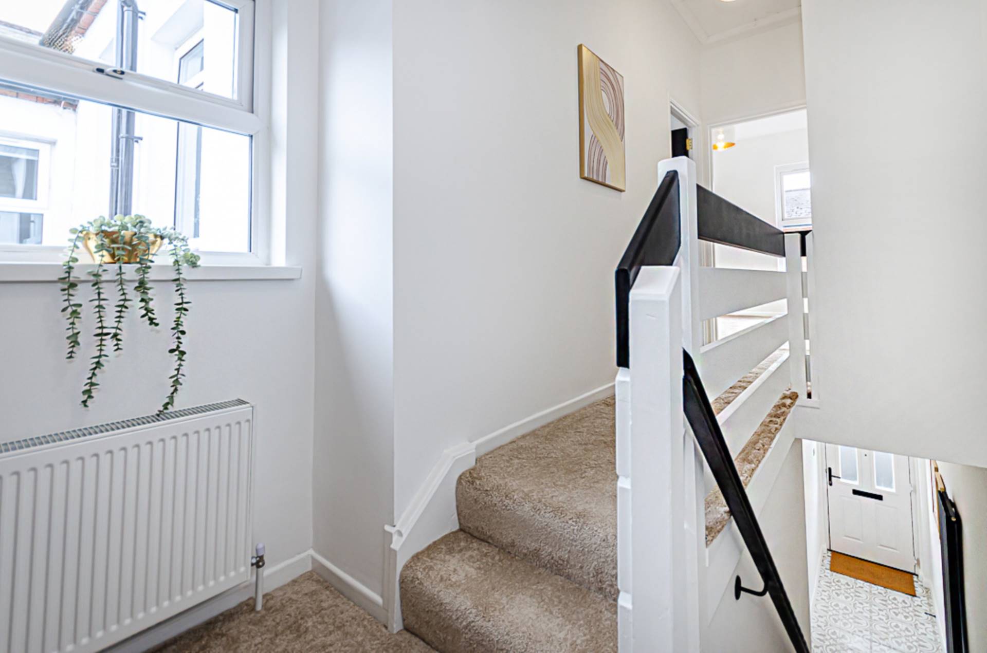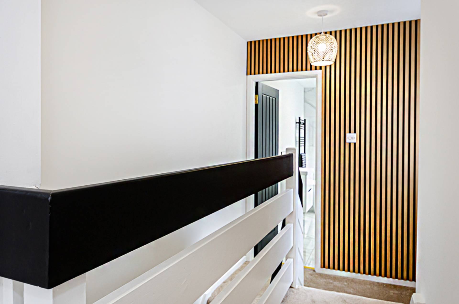 The bedrooms are generous and bright with freshly fitted carpets. A feature landing wall adds a dash of personality. The luxurious 4-piece bathroom comes complete with a freestanding bath, making it the ultimate relaxation spot. The dual head shower, smart black fittings and porcelain floor add to it`s appeal.