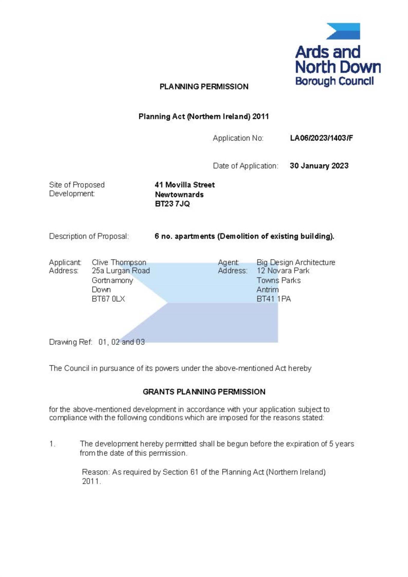 Development opportunity with full planning permission for 6 x two bedroom apartments. The 6 apartments will be positioned over three floors with a communal entrance.