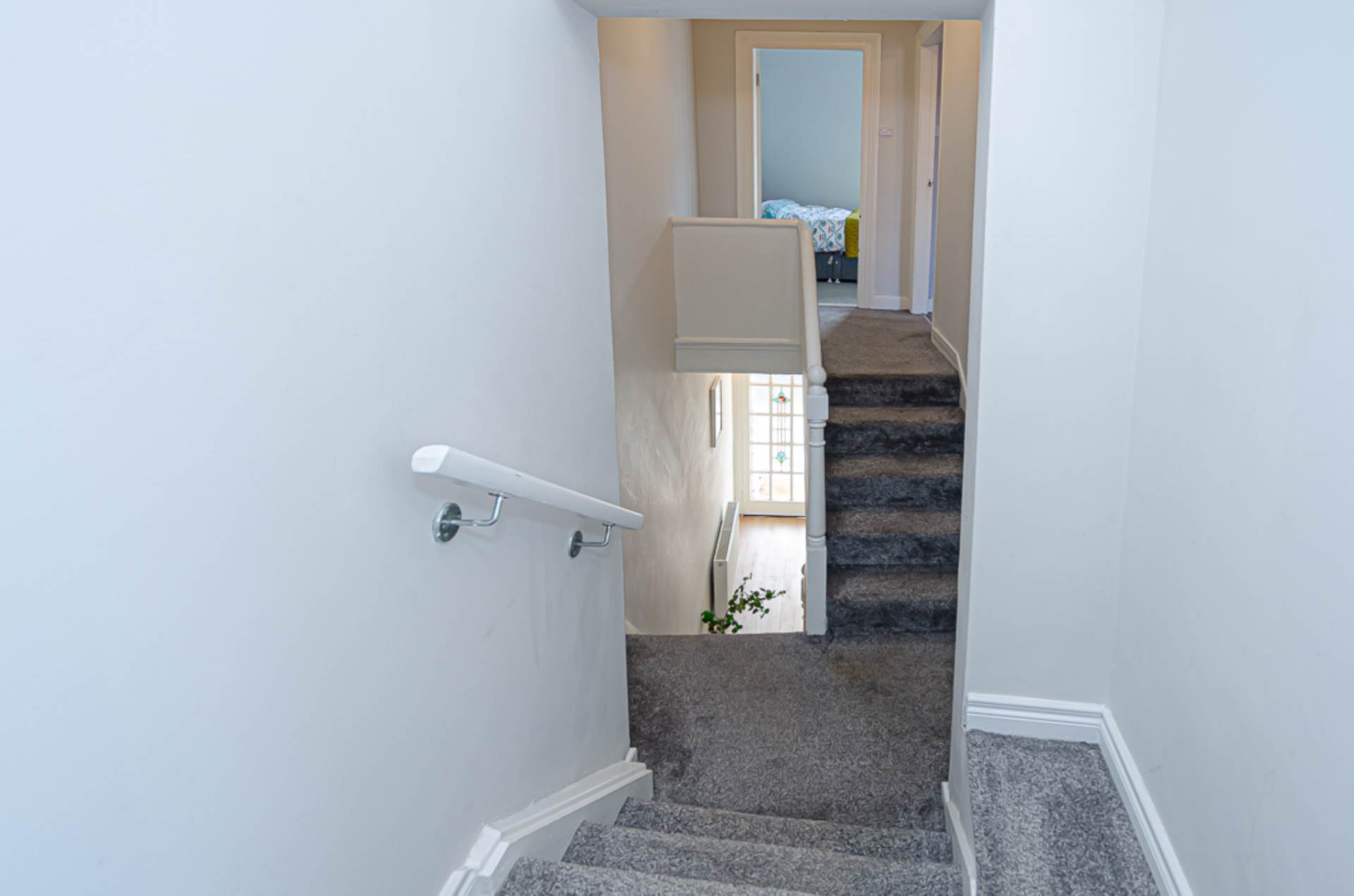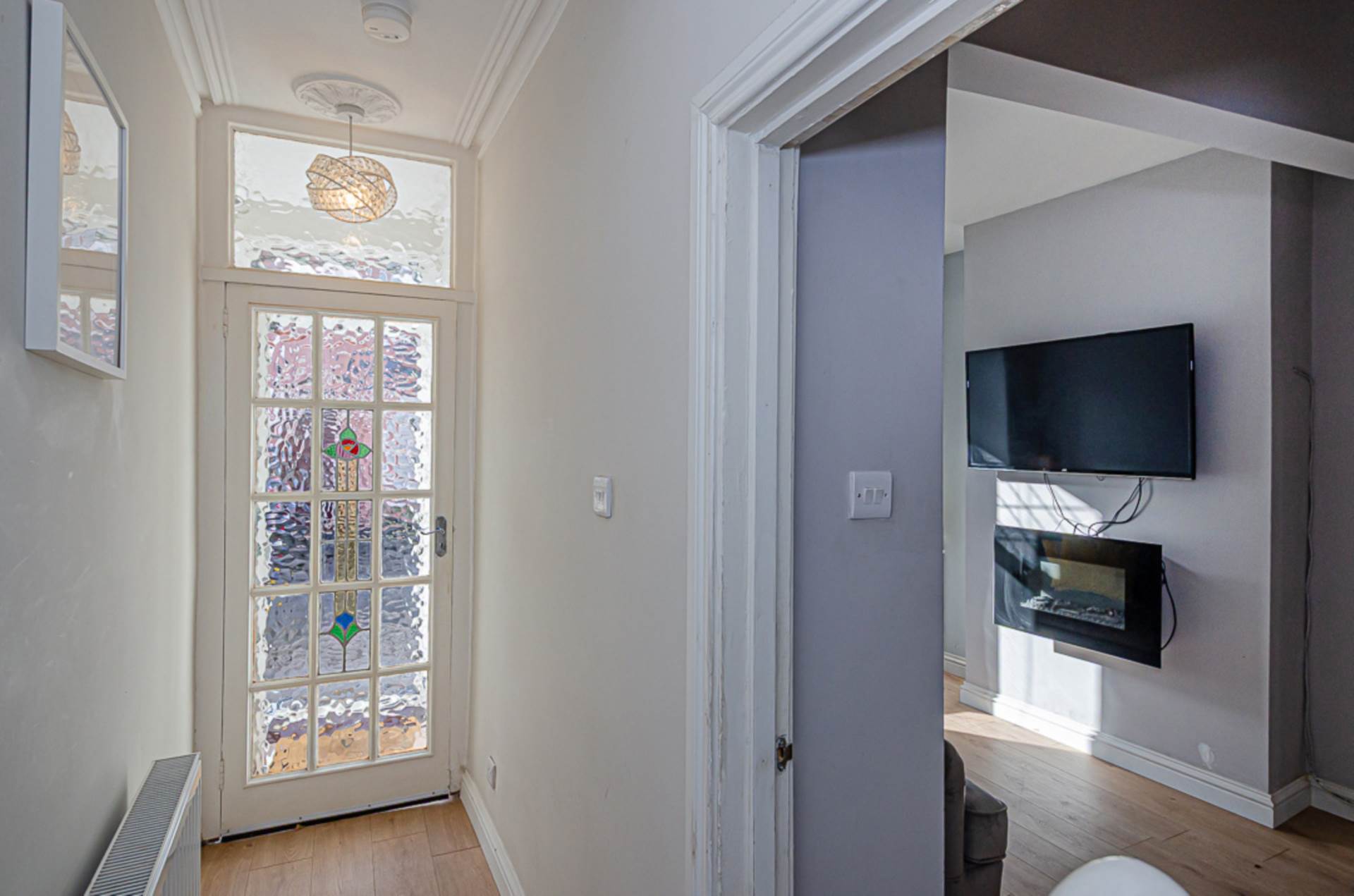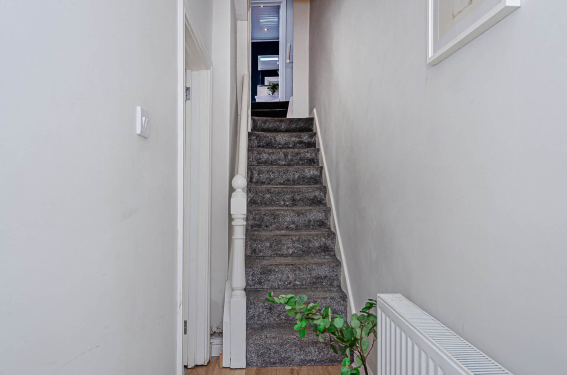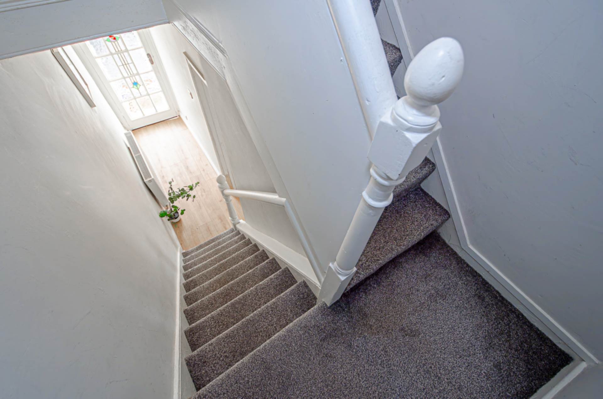 Bay window, timber laminate floor and storage under stairs