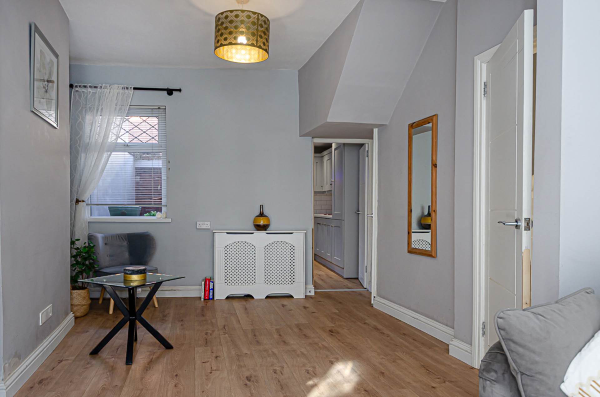 Discover this stylish and beautifully presented terrace house, ideally located near Ormeau Park. This inviting home features a bright through lounge with a charming bay window, creating a spacious and airy living area. The modern kitchen boasts a sleek grey finish, offering a contemporary touch.