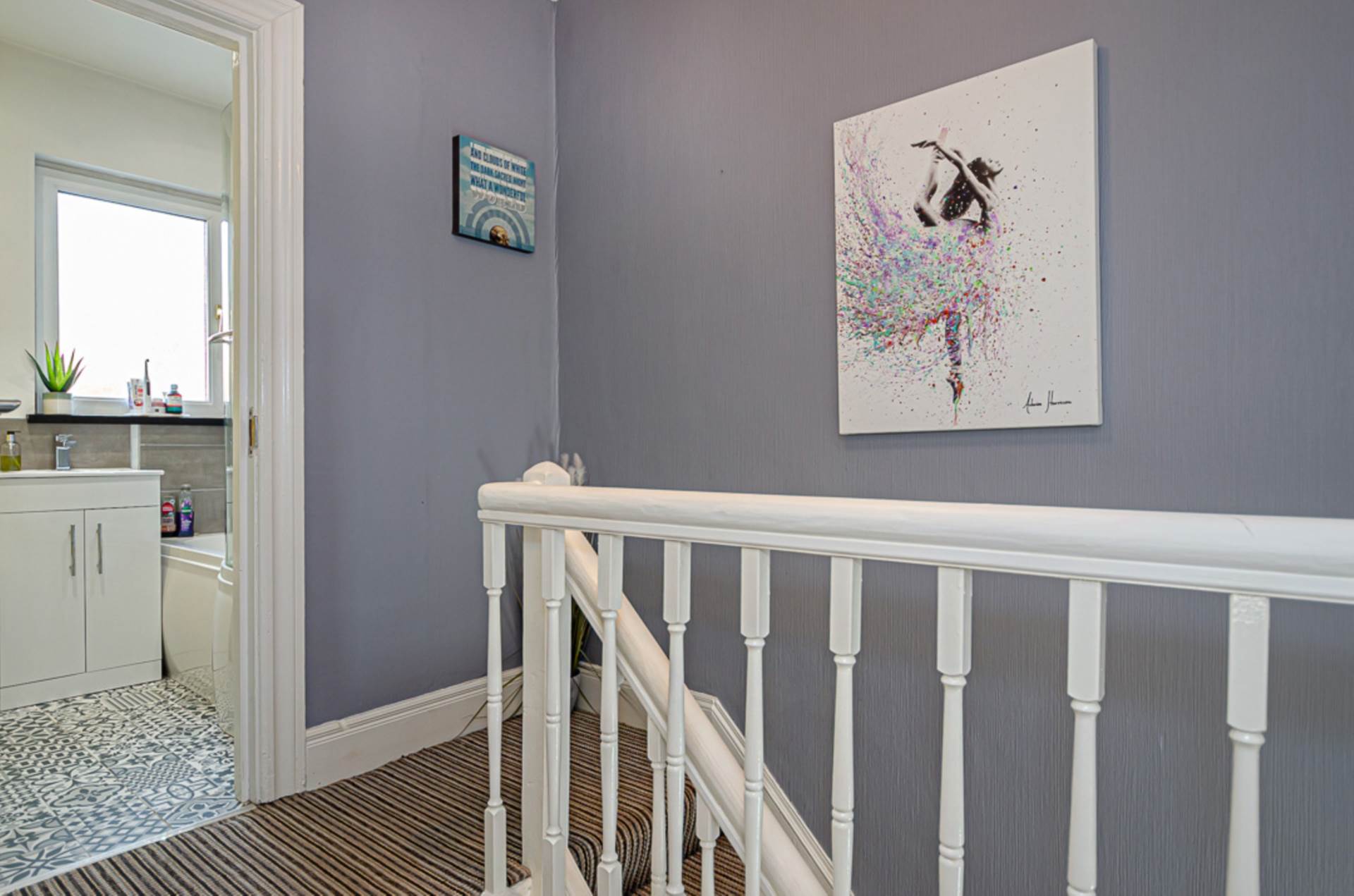 Upstairs, there are three bedrooms, along with a recently fitted contemporary bathroom. The property also benefits from a floored roof space, providing additional storage or potential for versatile use.