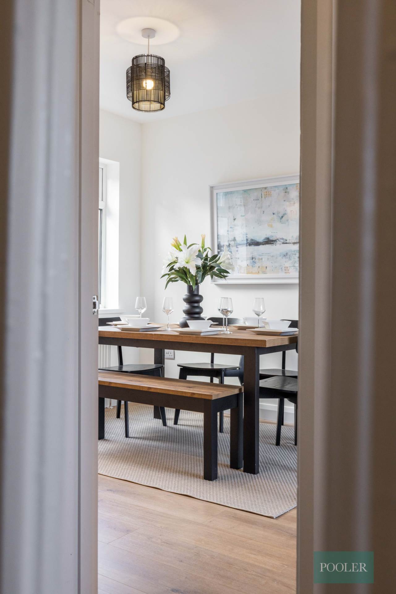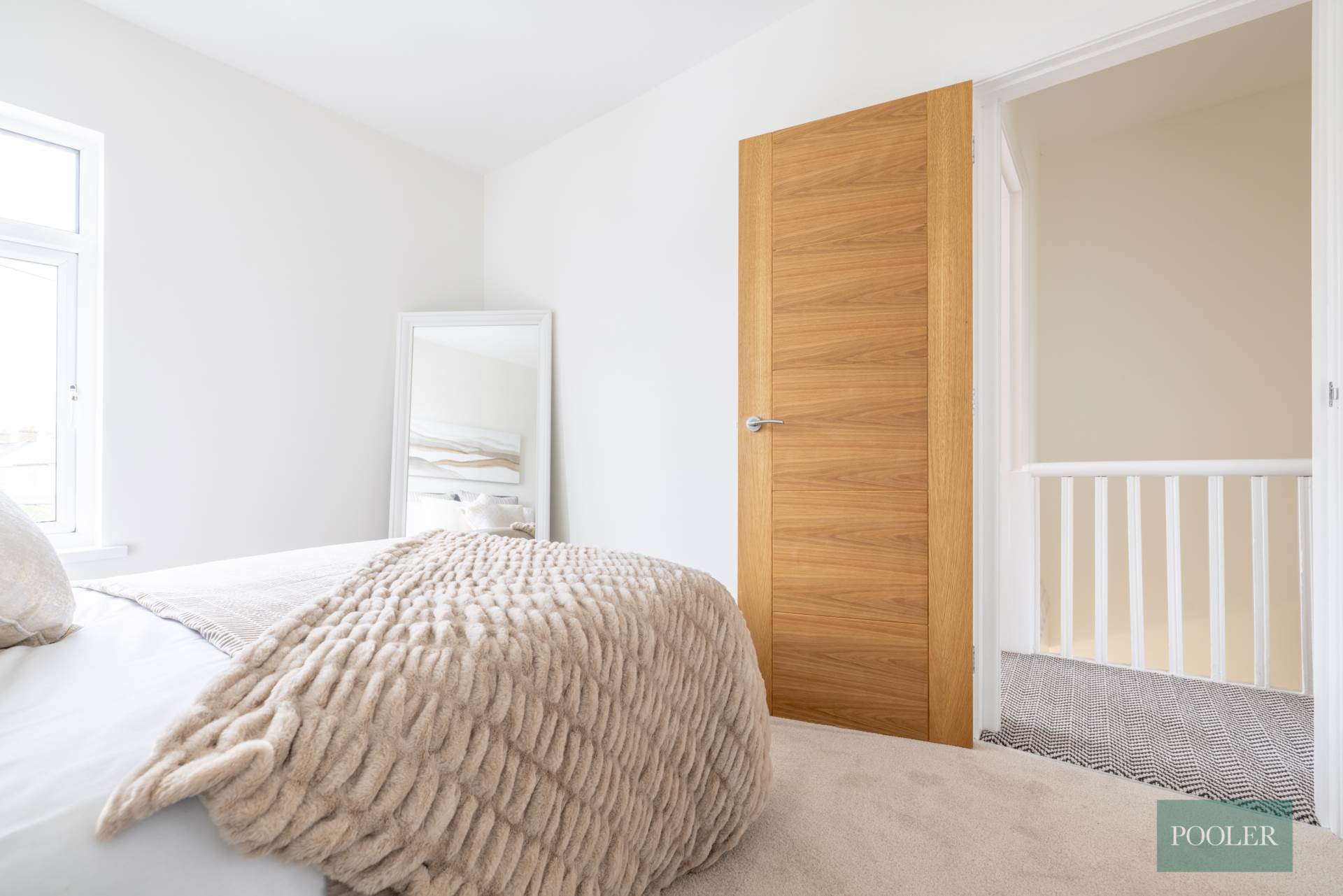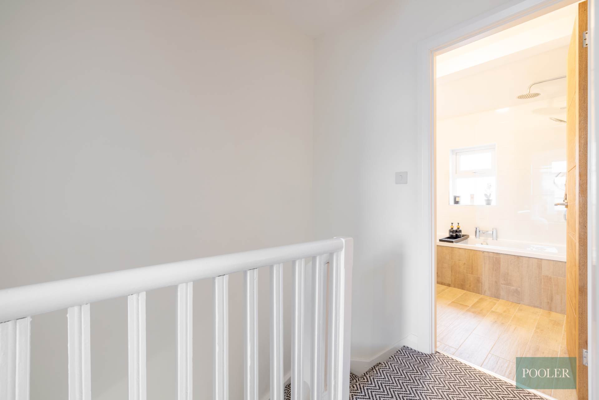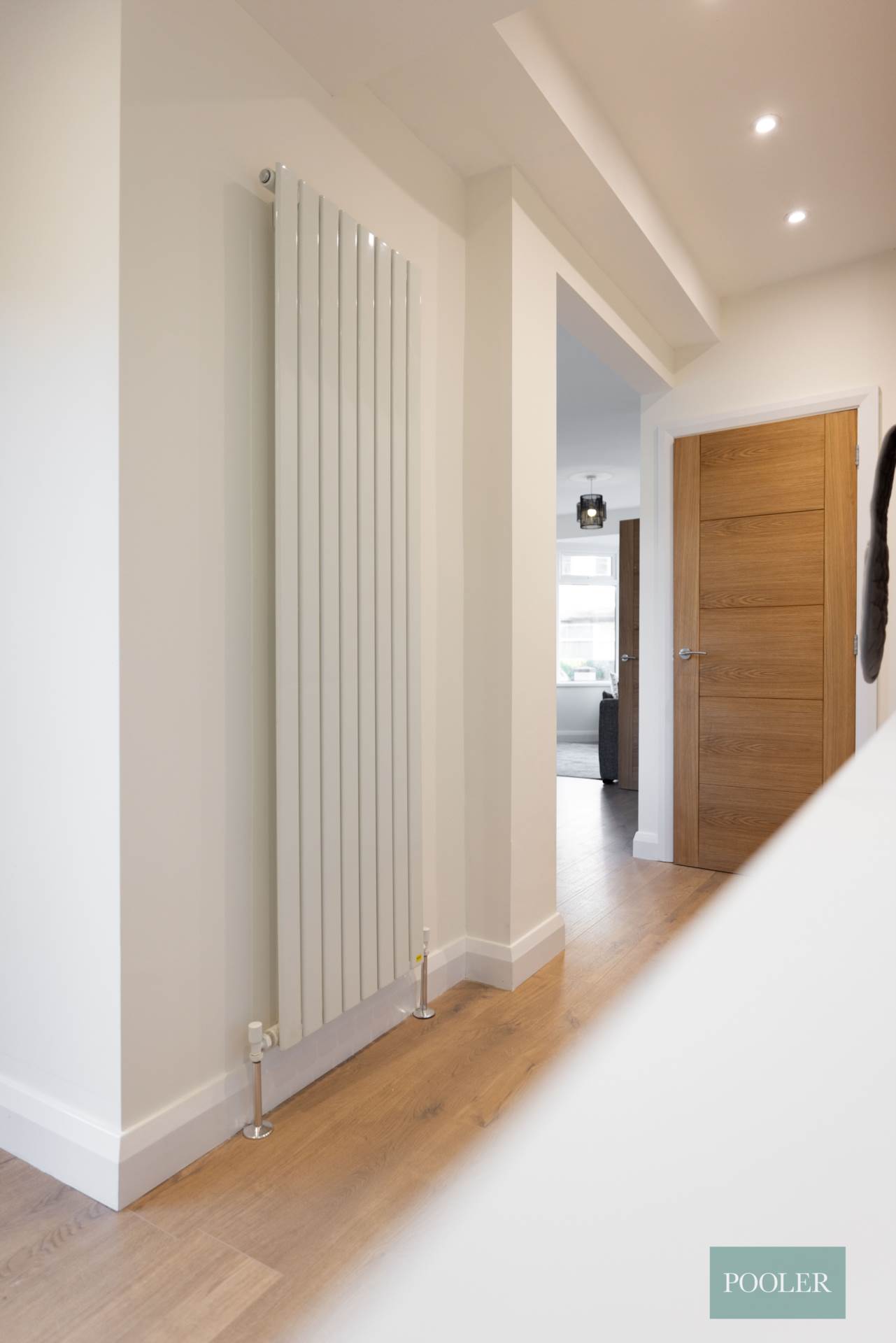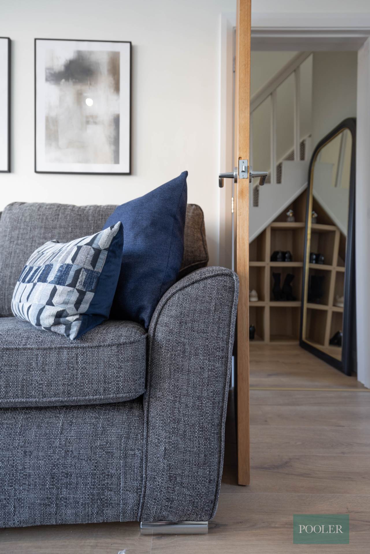 Timber laminate floor and bespoke storage under stairs