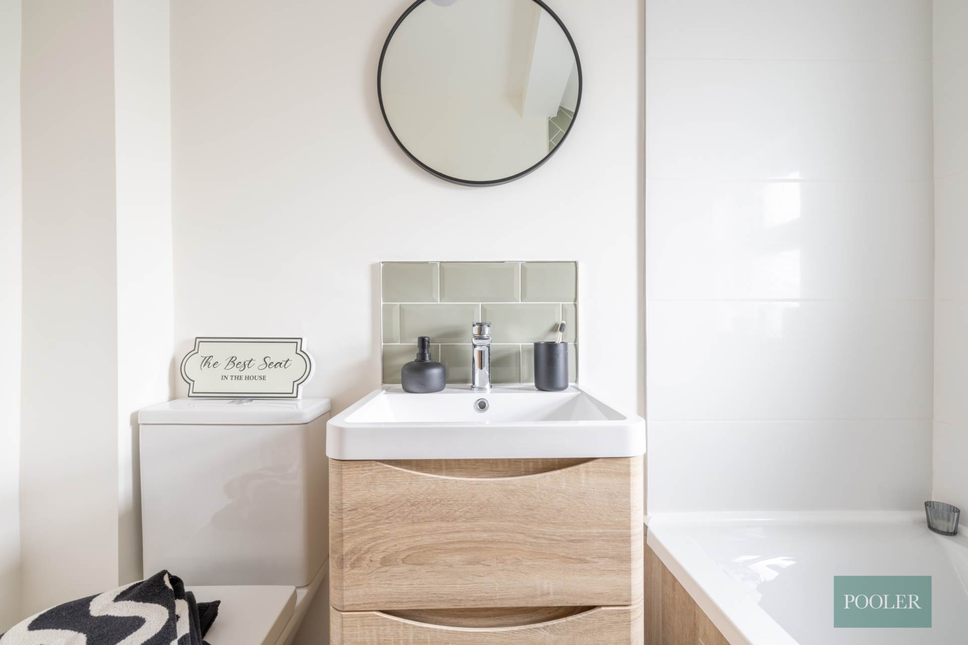 Wash hand basin in vantiy unit with splash back, modern W.C. and ceramic tiled floor