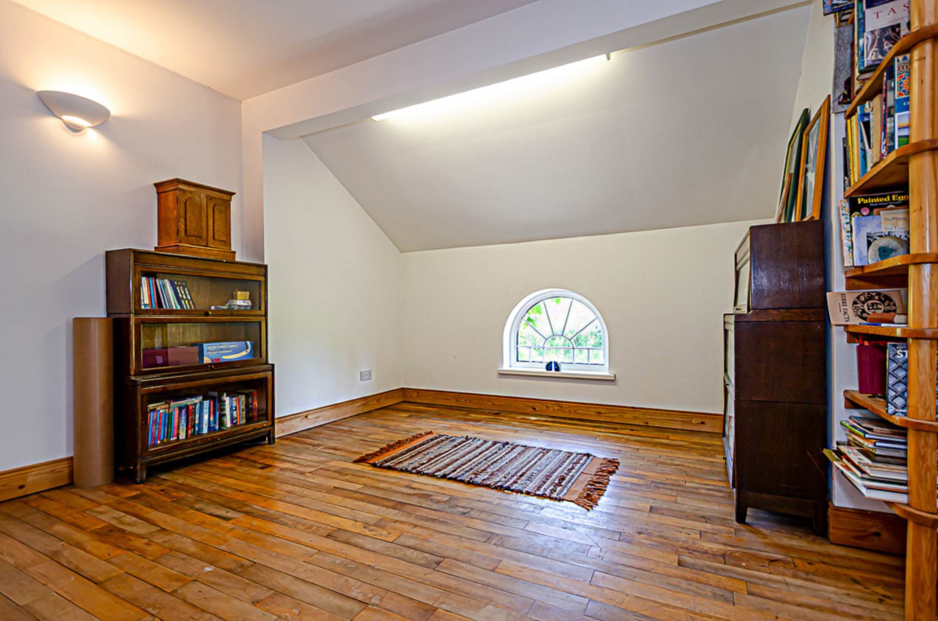 Mezzanine landing - 12'2" (3.71m) x 9'9" (2.97m)Maple wood floor (reclaimed from old English mill), replica semi-circular fan light and wall lights. Bright, airy space that could be put to a variety of uses as a living, study or additional sleeping area