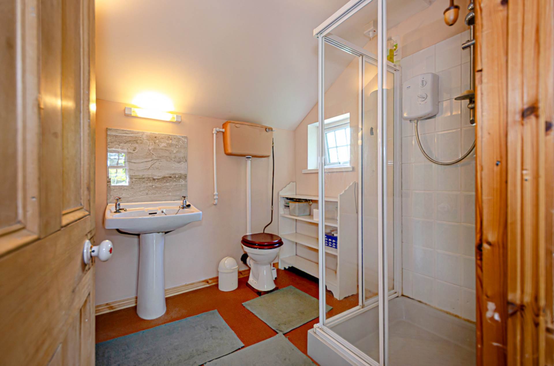 Bedroom 2 - 14'11" (4.55m) Max x 9'7" (2.92m)Bedroom 3 - 11'6" (3.51m) Max x 9'9" (2.97m)Bathroom - 10'6" (3.2m) Max x 7'5" (2.26m) MaxTimber panelled bath with decorative splash back, W.C. and wash hand basin with splash back and shaving light above. Hot press with reclaimed door