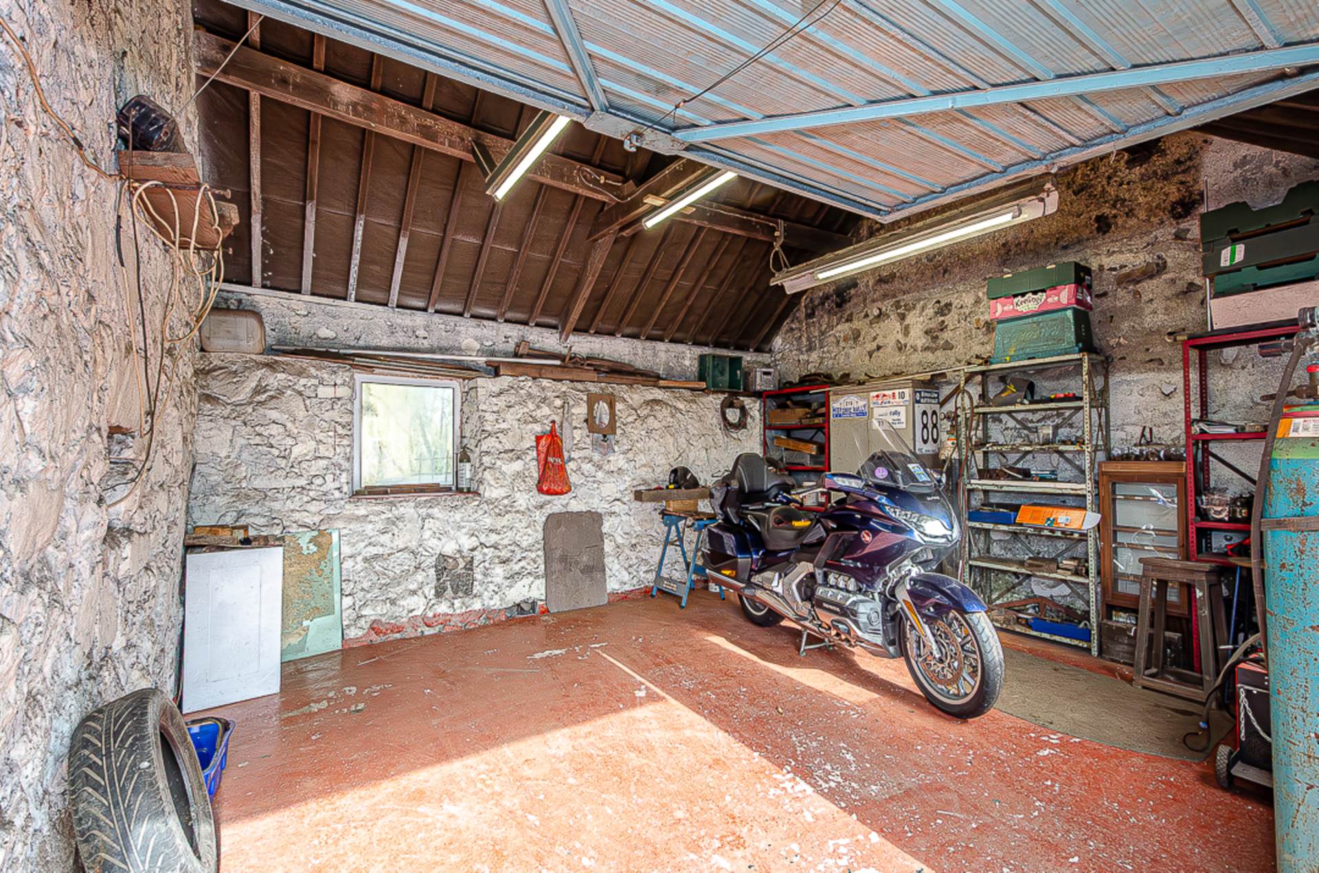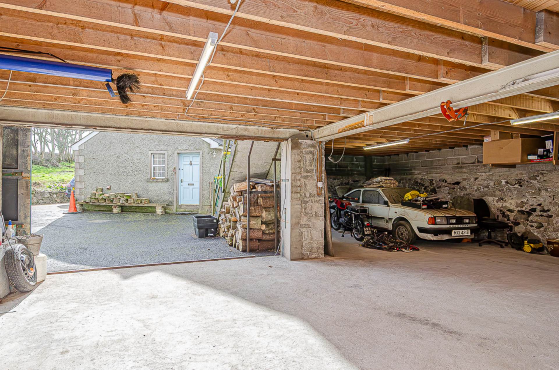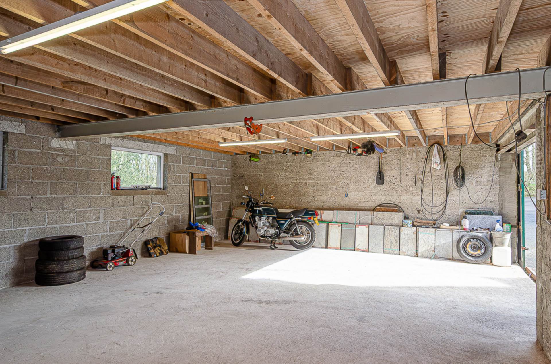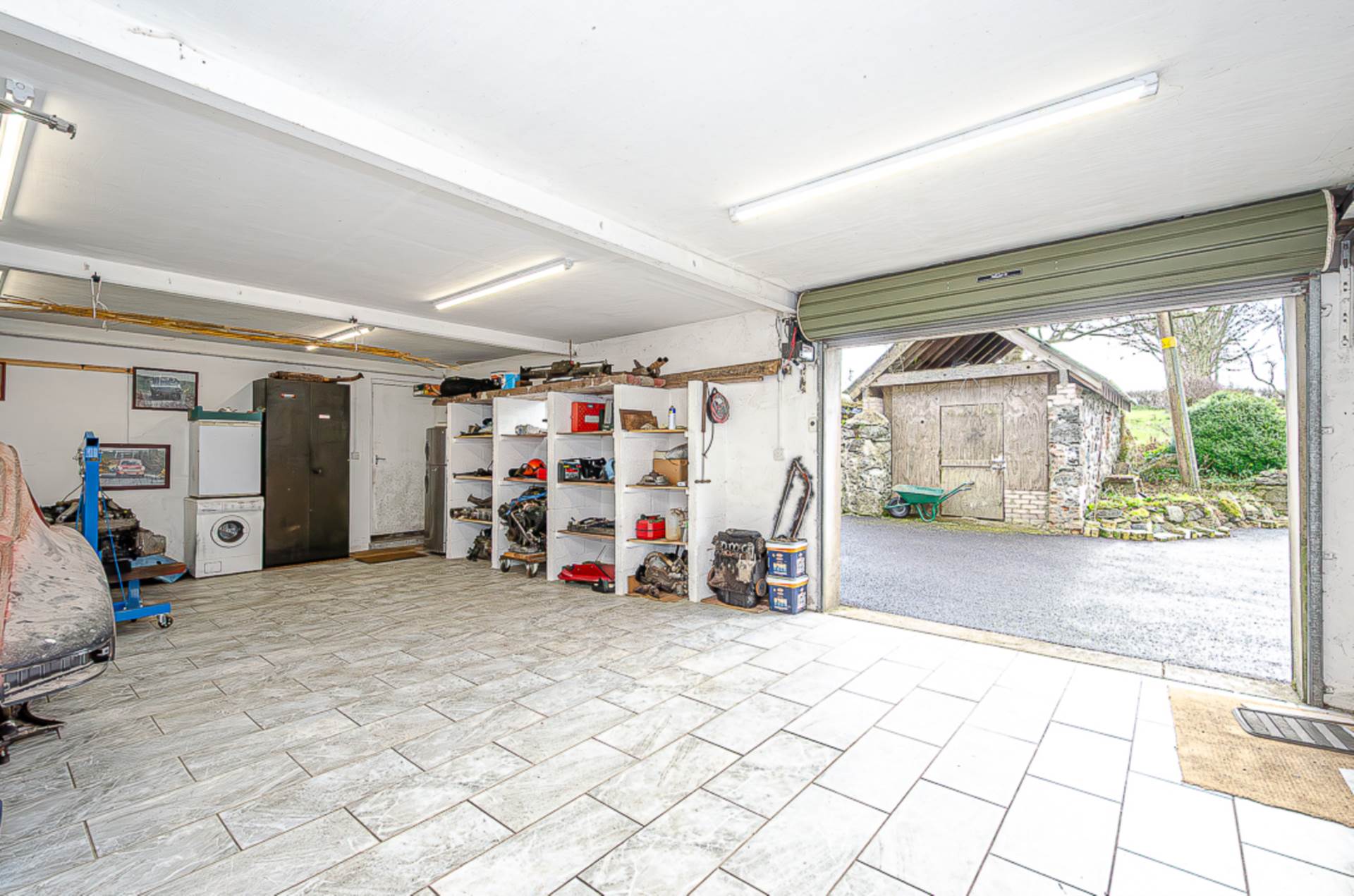 Originally farm buildings, the three-phase electricity that would have powered heavy machinery is still connected and in use. Three garages have concrete floors and one has a porcelain tiled floor providing a garage that is a pleasure to work in.
