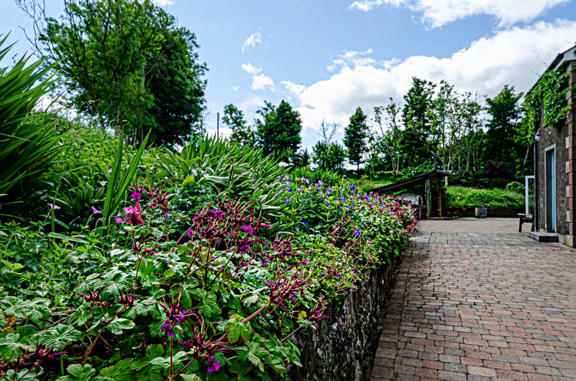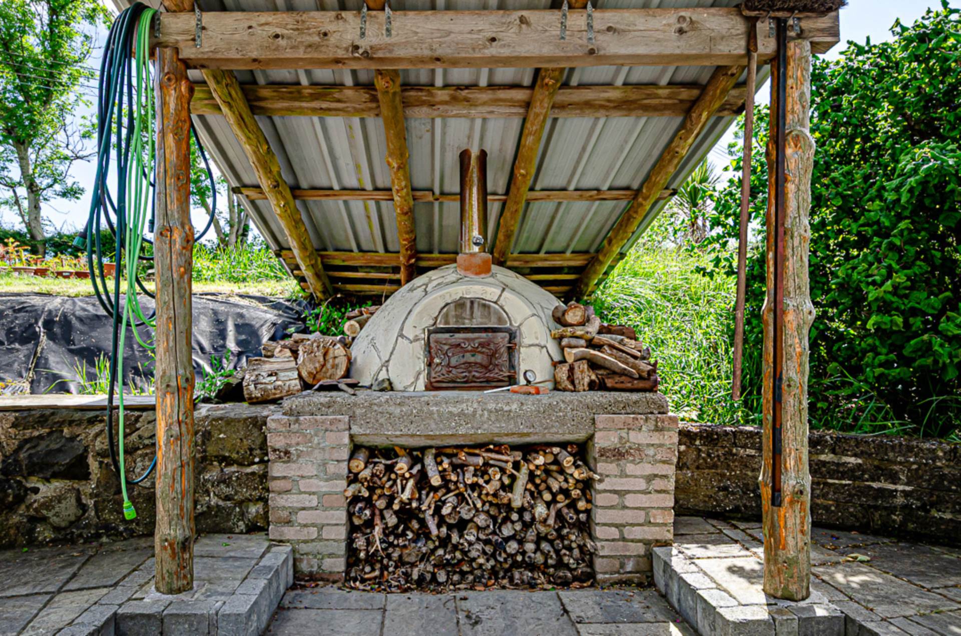 - Gardens with raised beds, shrubs, lawn, trees, Tobermore paving and fabulous hand-built pizza oven