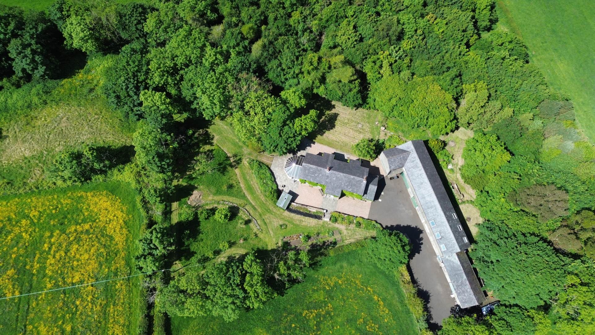 A long concrete lane leads to a durable SMA surfaced yard off which is a huge range of outhouses carefully renovated and in use as garages and workshops. There is an original stone pottering shed housing an original blacksmiths forge with a large wood store adjacent