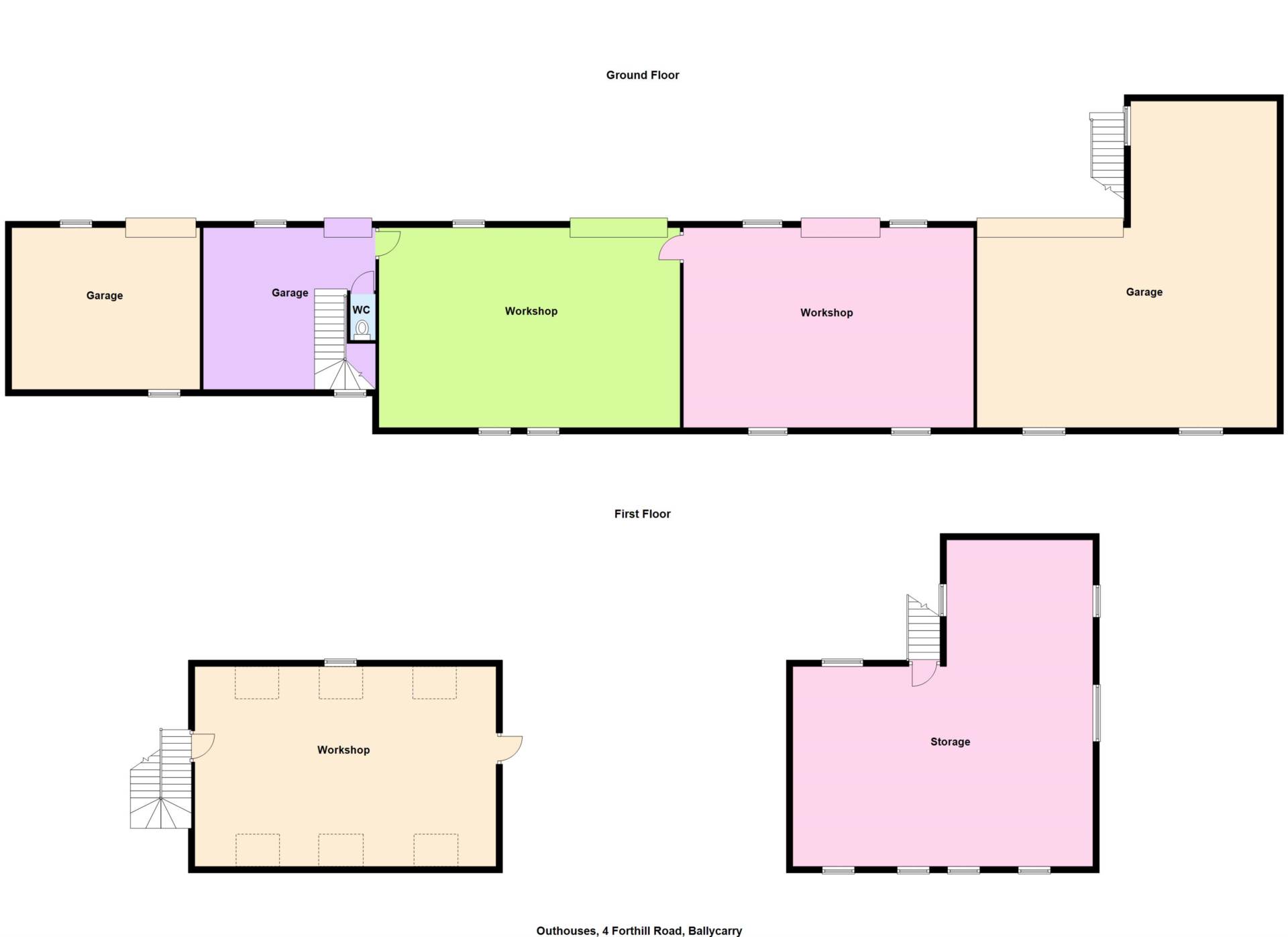 Storage - 17'10" (5.44m) x 15'6" (4.72m)Single storey storage area with W.C, lighting and sliding door. Staircase leading up to first floor workshop above adjacent garage