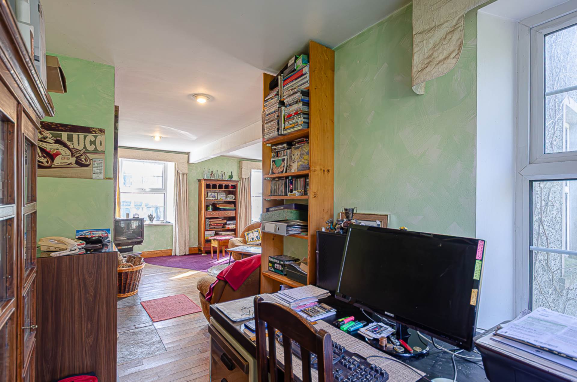 - Spacious living room with wood burning stove and study alcove