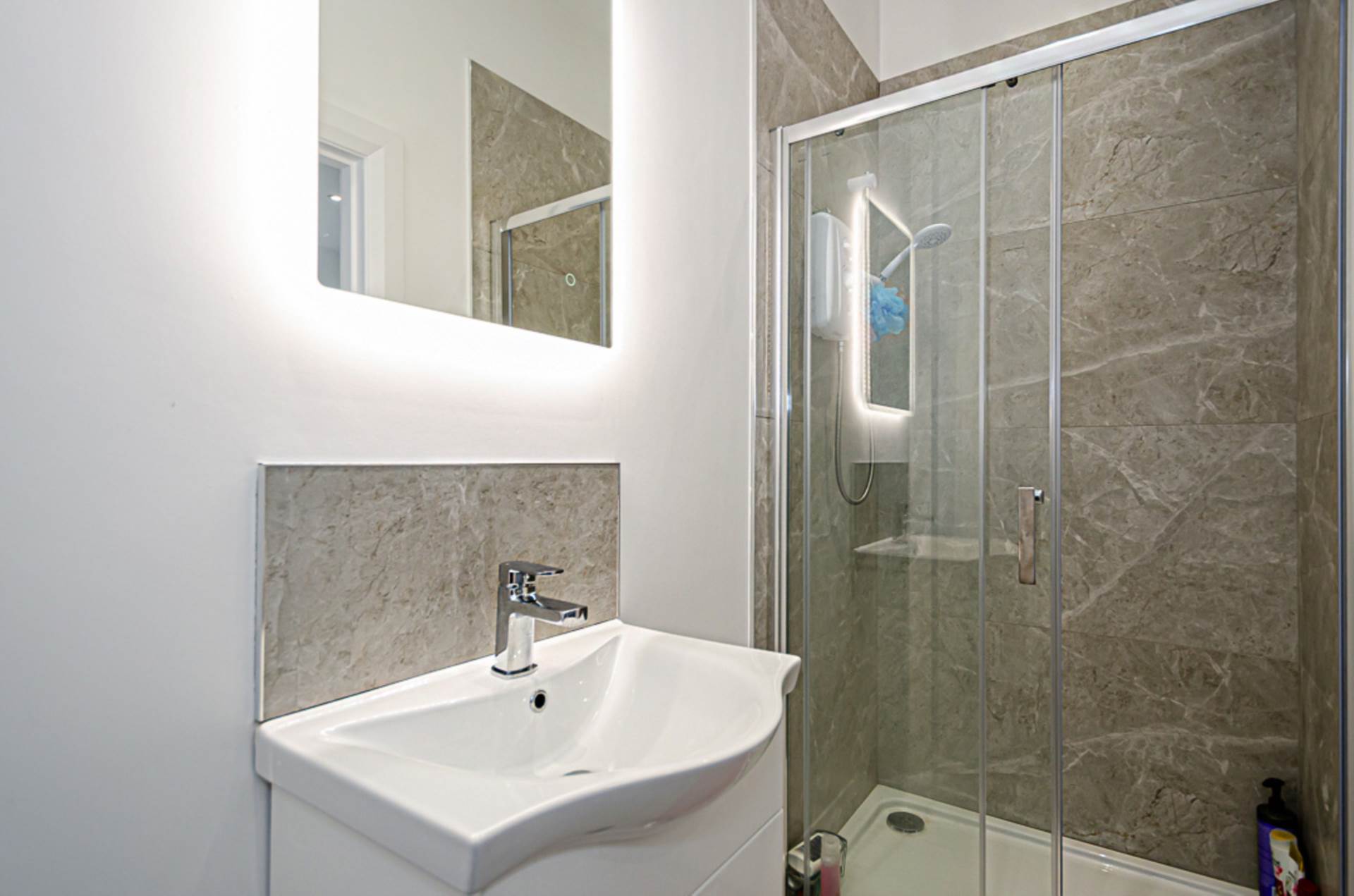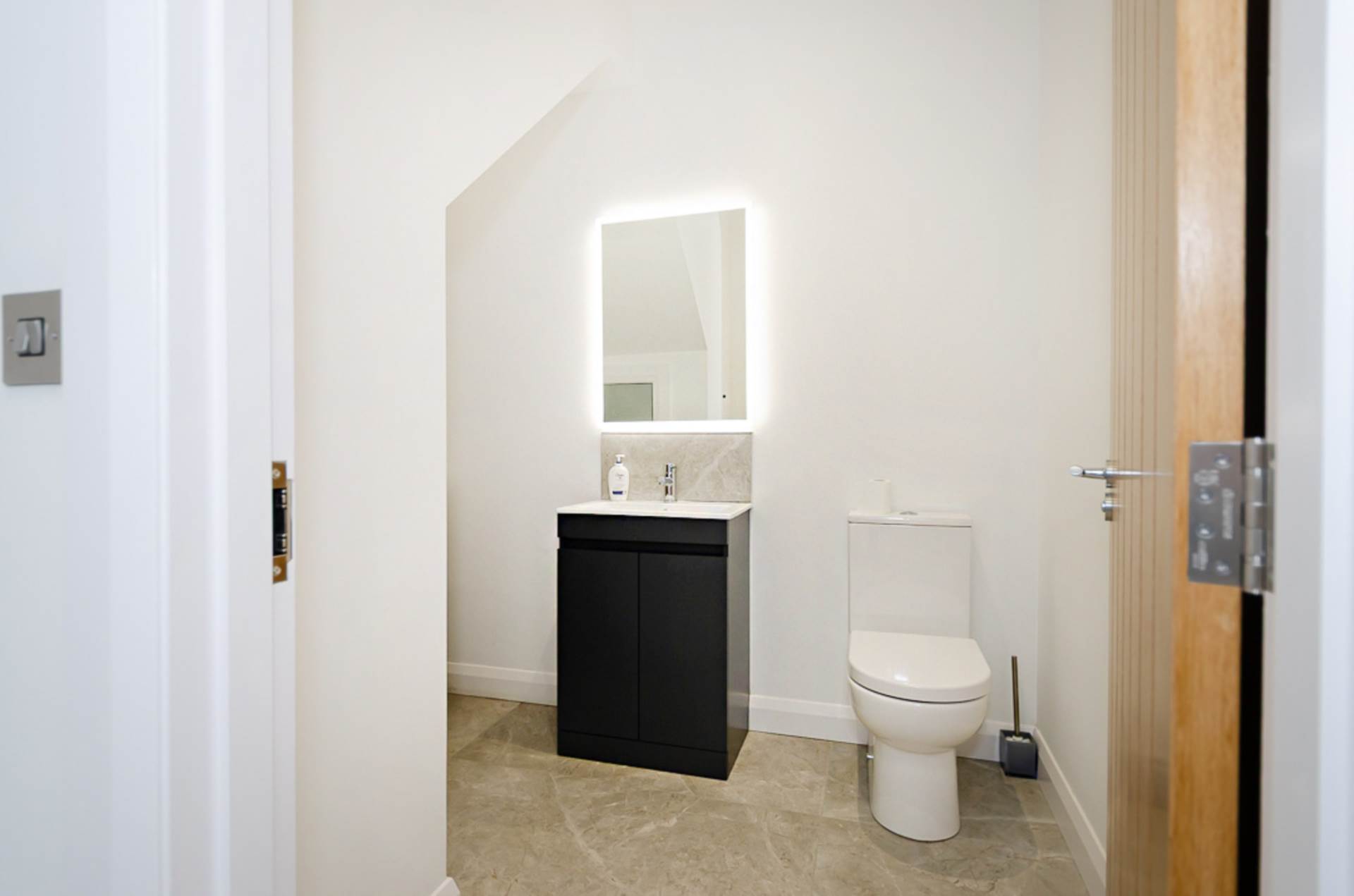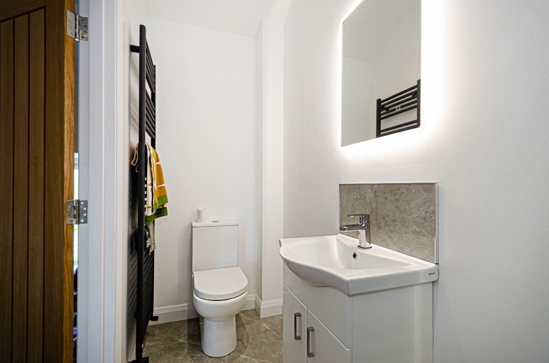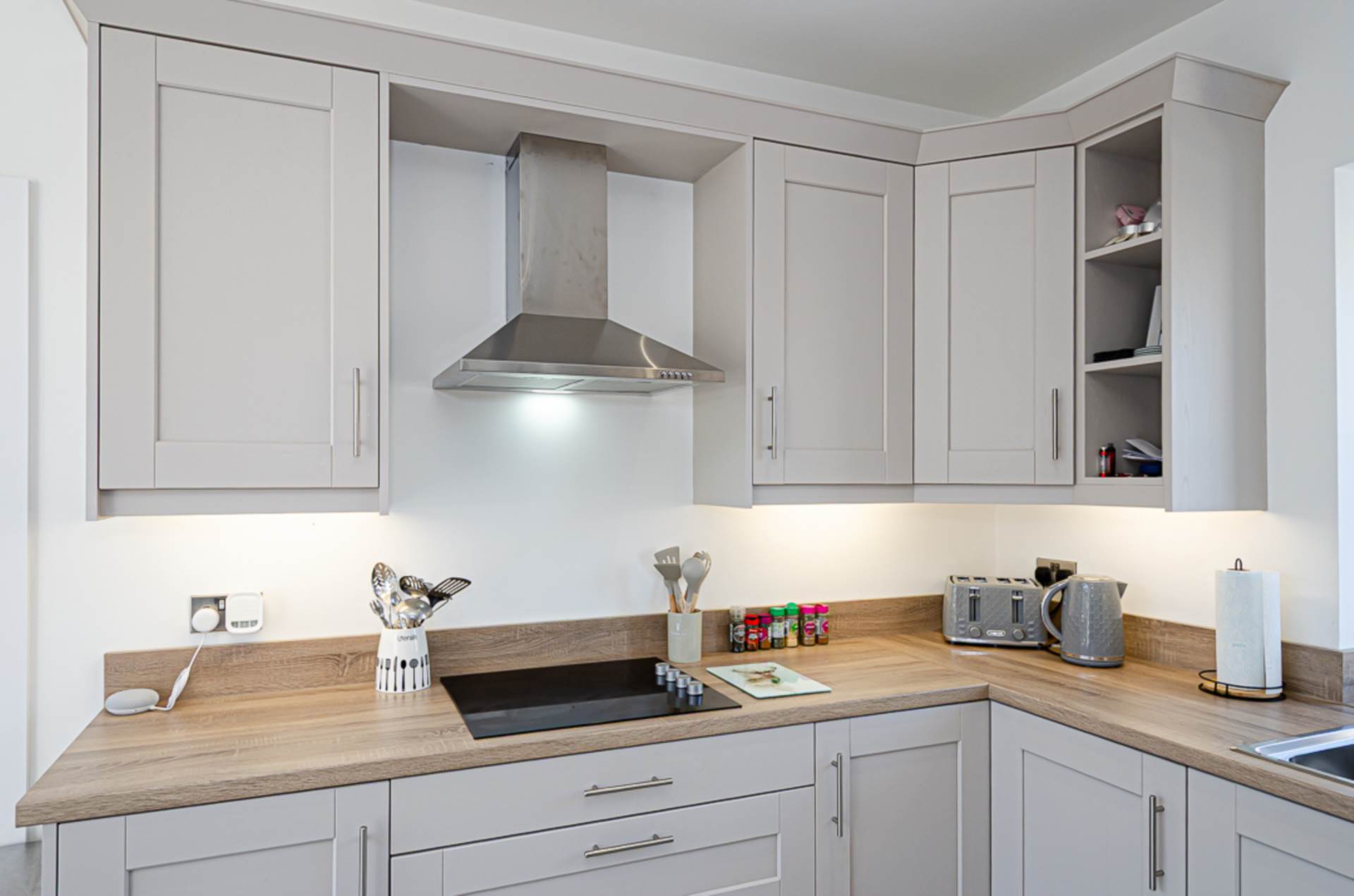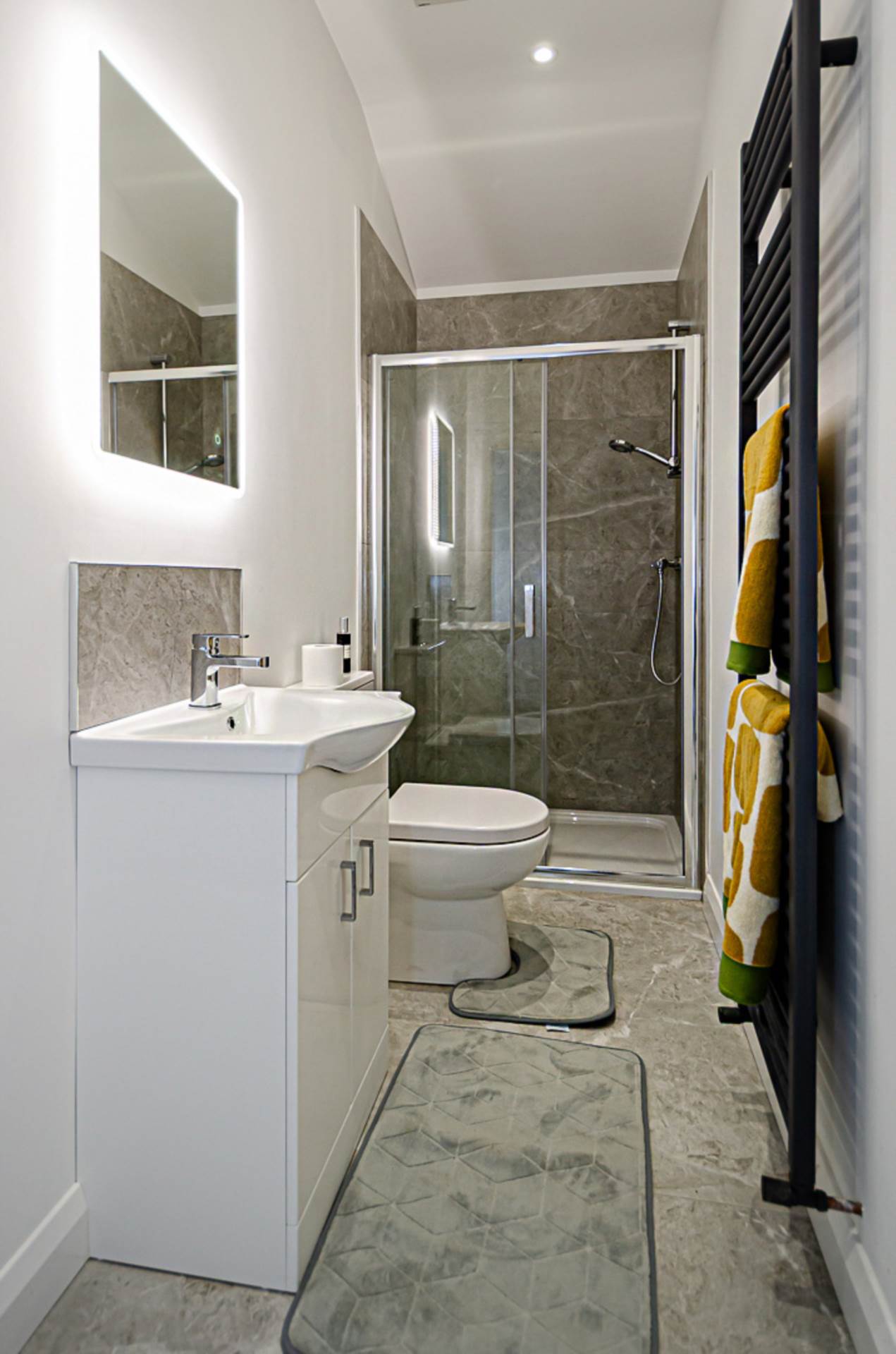 The property comprises open plan living room and newly fitted luxury kitchen with appliances, utility room, downstairs W.C., three bedrooms including main bedroom with en suite shower room, and main shower room. The finish is exceptional with black U.P.V.C. framed double glazing and oil fired central heating.