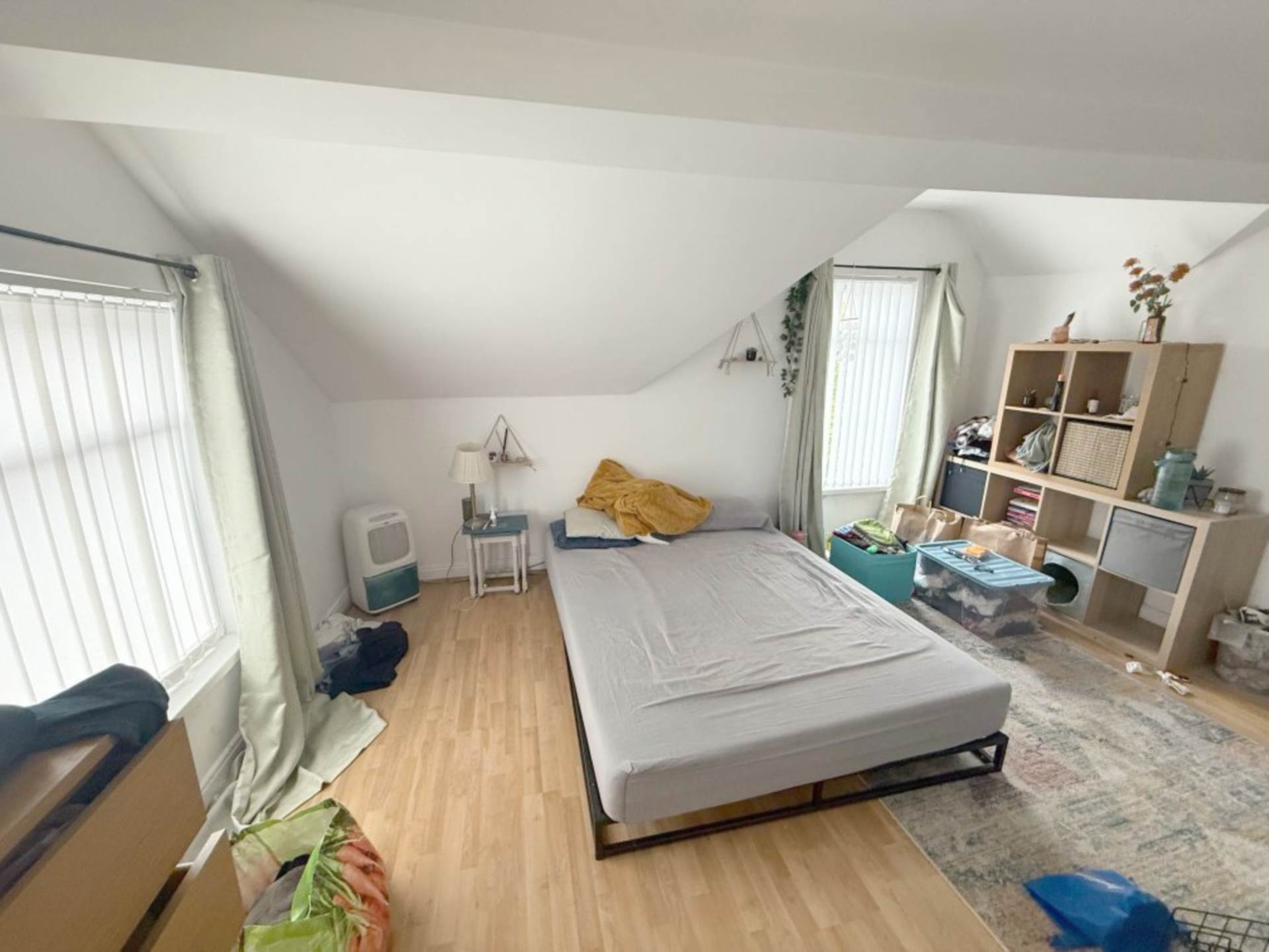 Dormer window and window to side, built in cupboard and timber laminate floor