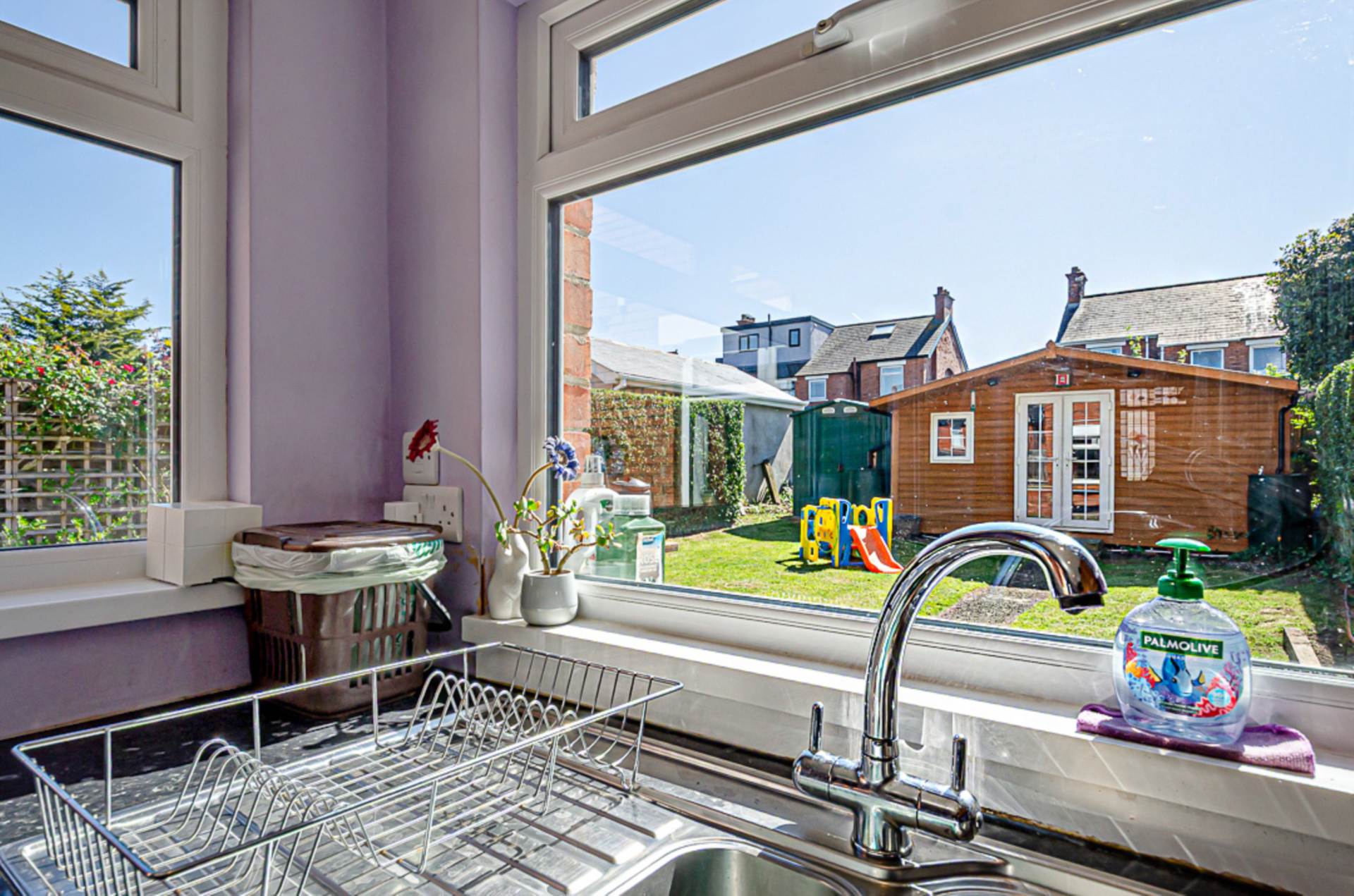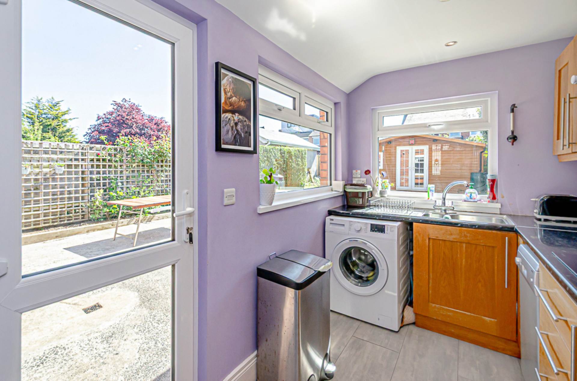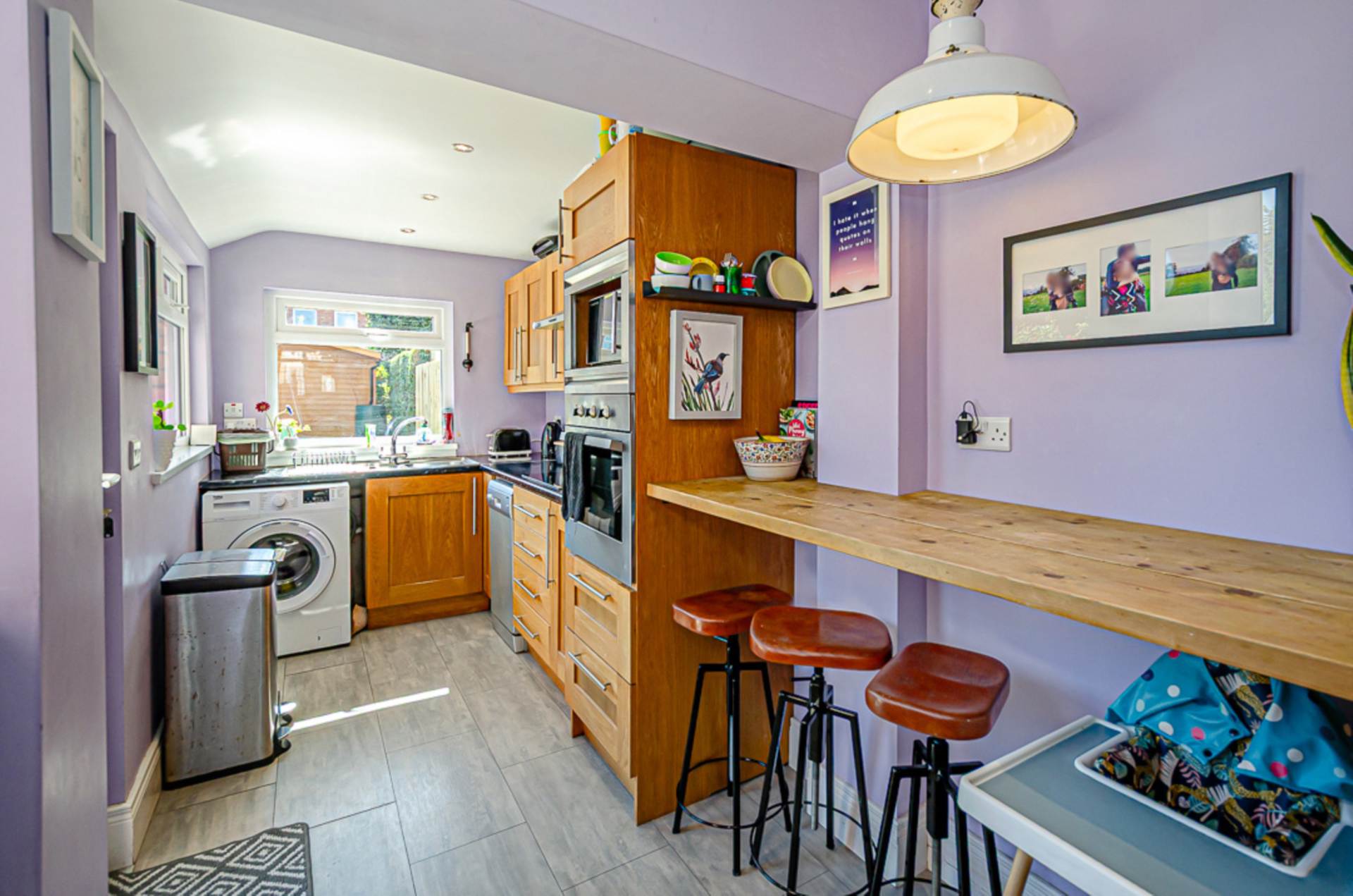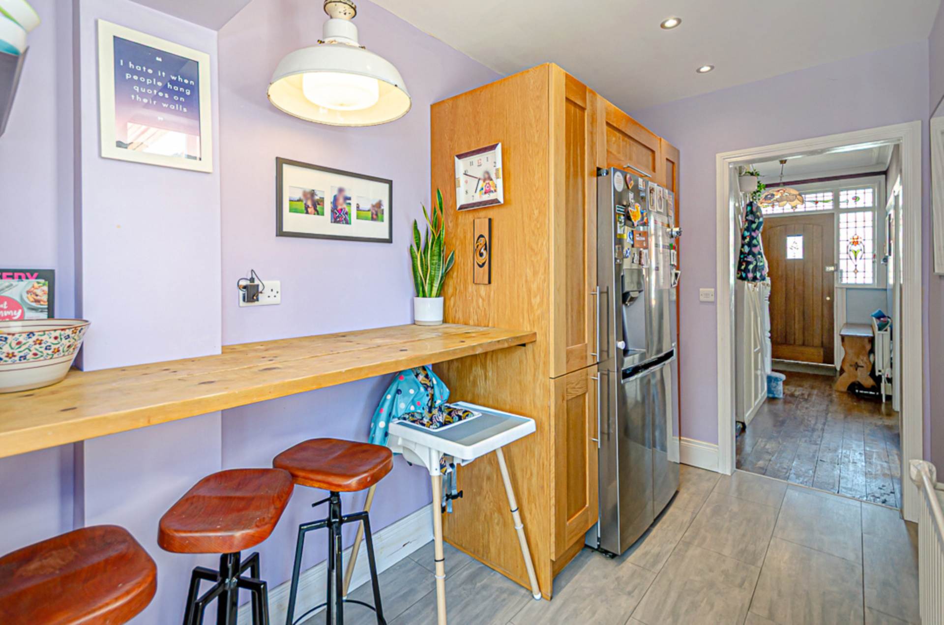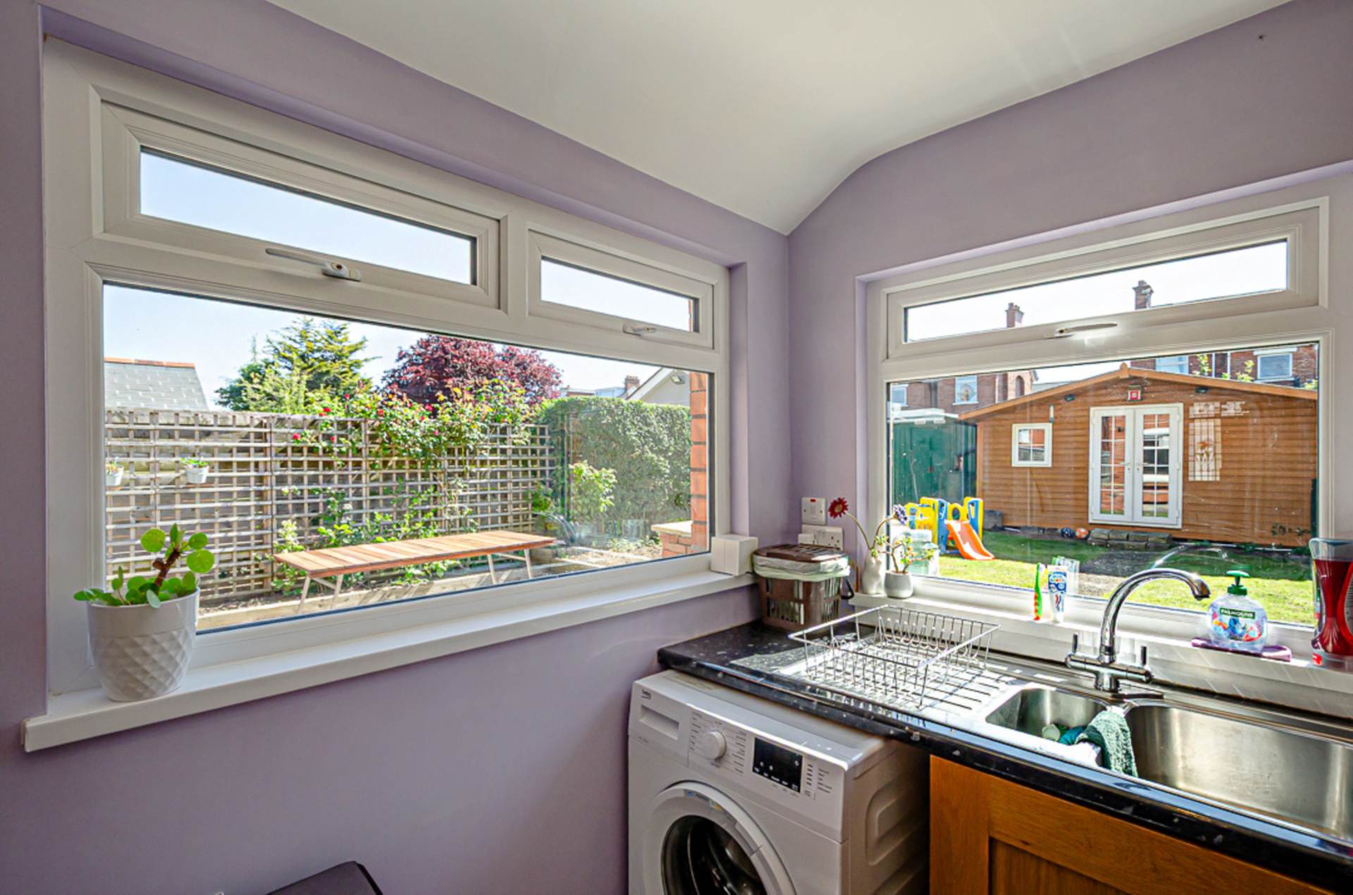 Step into the inviting living room, where a classic bay window floods the space with natural light and highlights the home`s traditional charm. The adjoining dining room, complete with a cosy stove, provides the perfect setting for family meals or entertaining guests. To the rear, the extended kitchen enjoys garden views through a large window, creating a bright and functional space for cooking and casual dining.