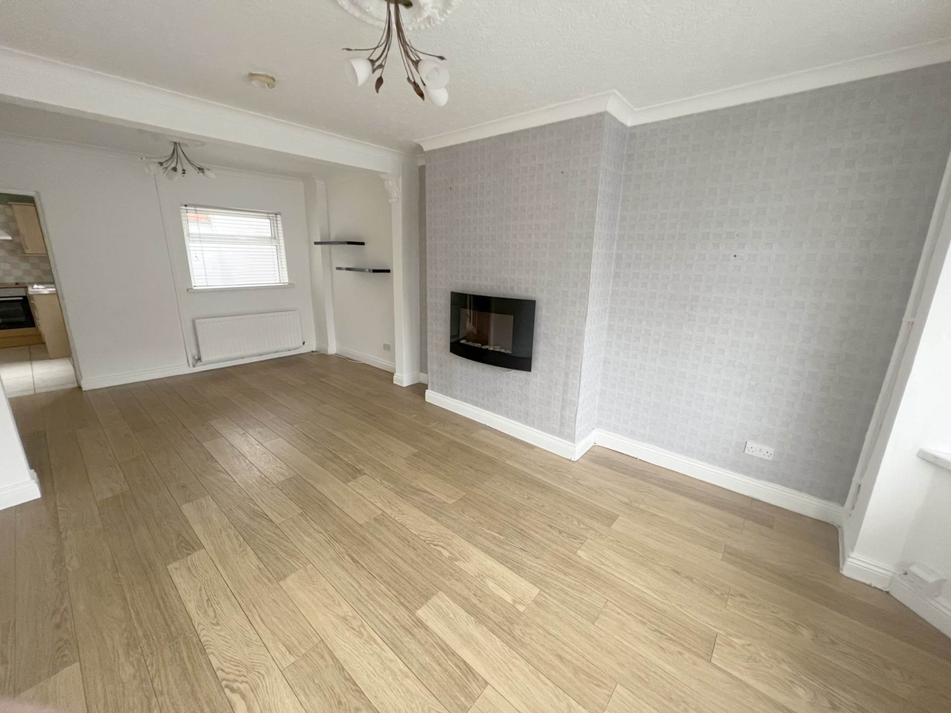 The property features a welcoming entrance hall, a bright and spacious through lounge, a modern fitted kitchen, two well-proportioned bedrooms, and a contemporary bathroom. Additional benefits include a private driveway for off-street parking.