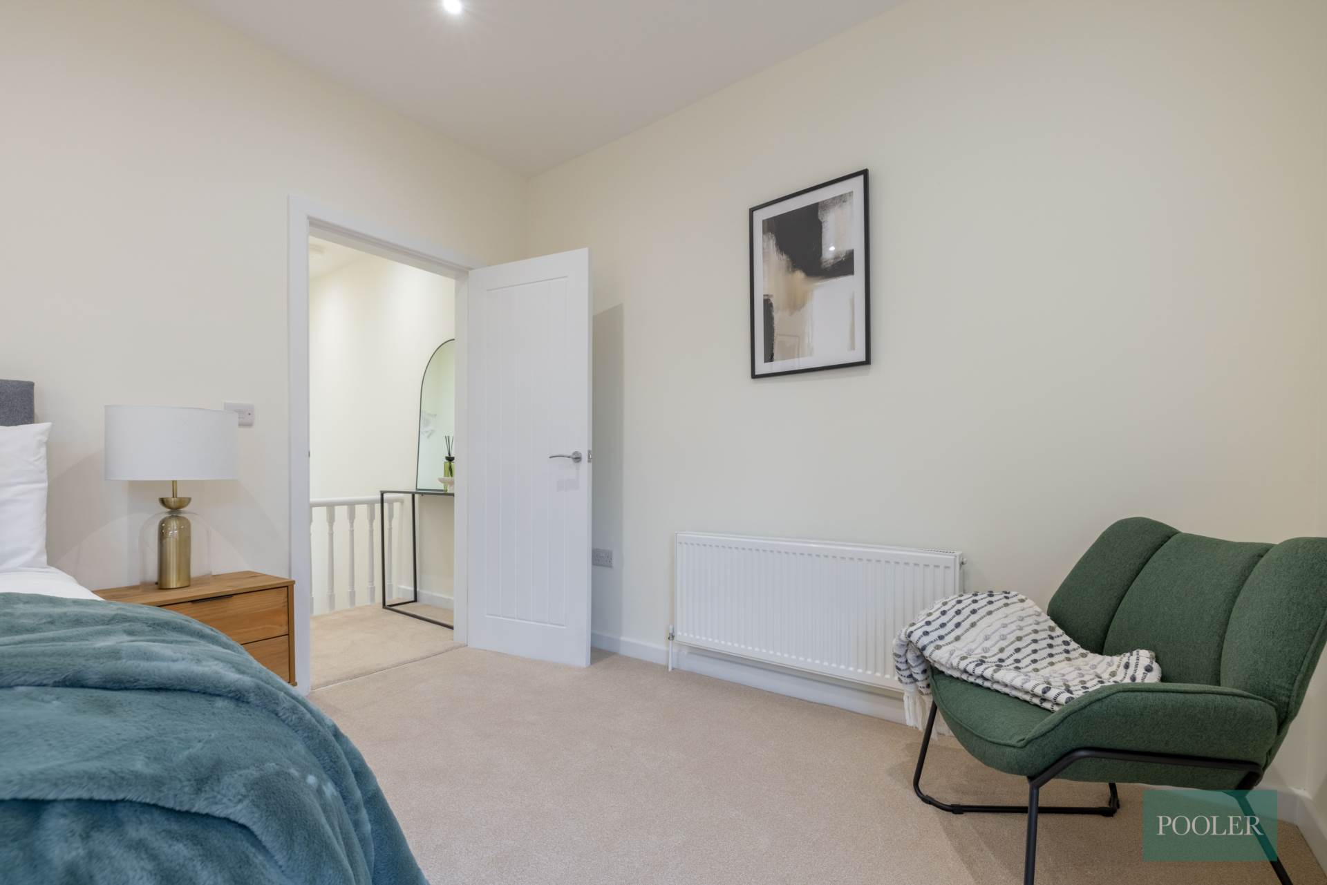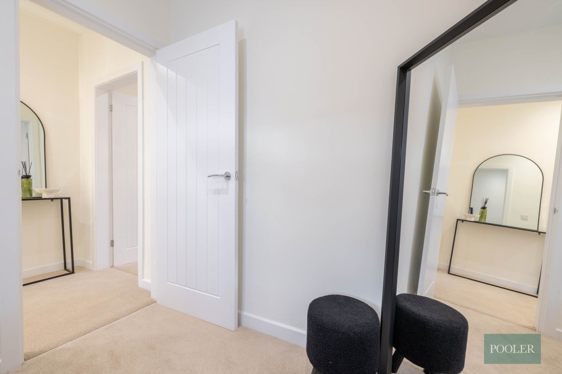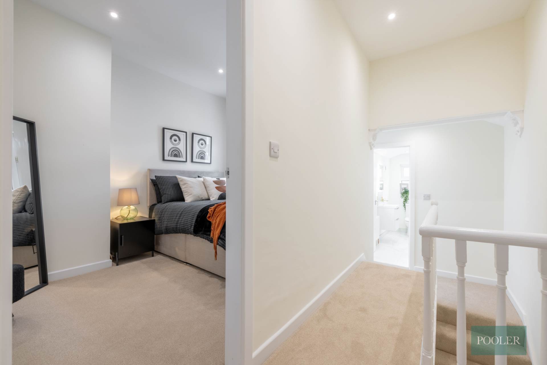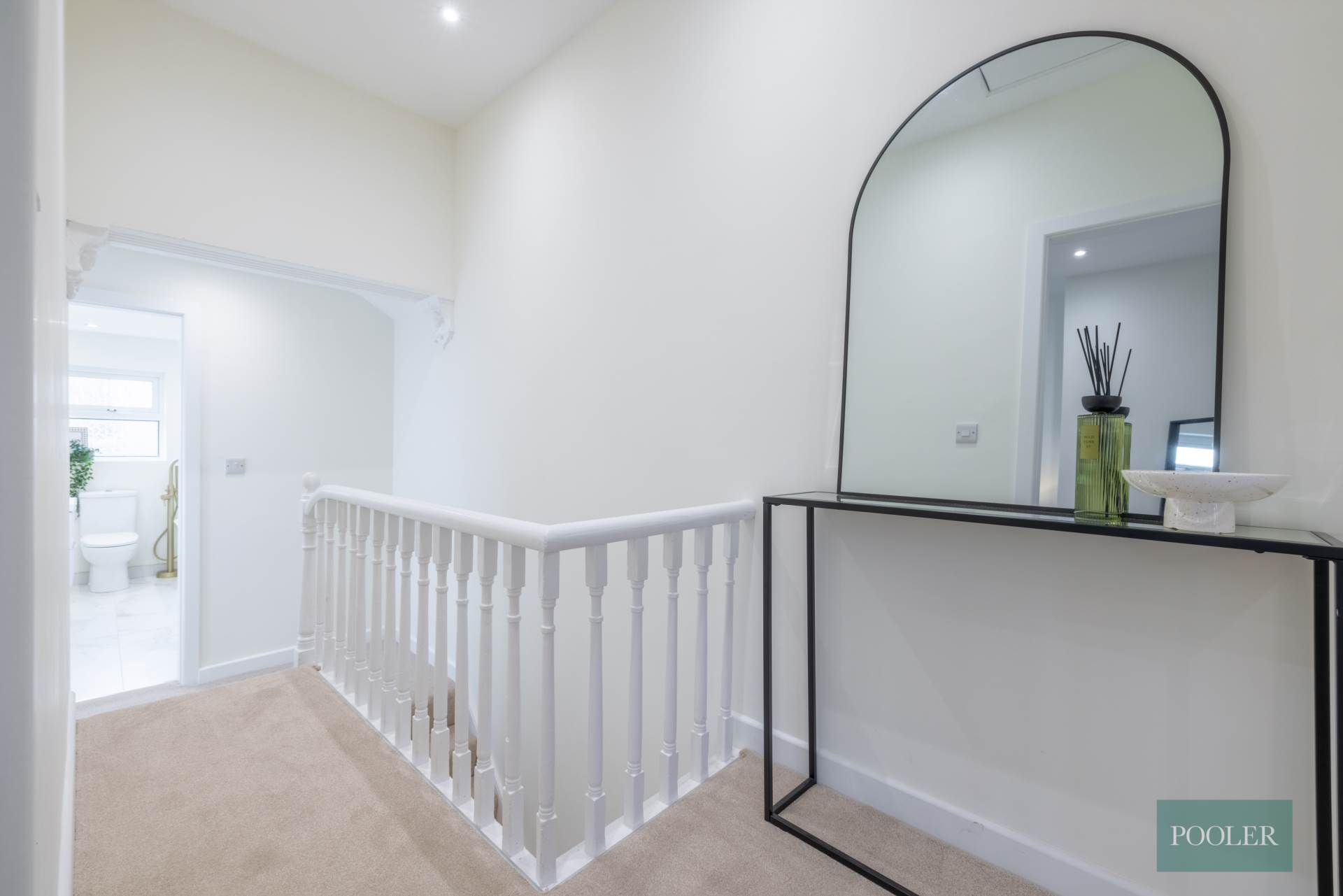 Upstairs, the stunning bathroom is a true highlight, featuring a freestanding bath, a separate shower cubicle, and striking brushed brass fittings that bring a touch of luxury and sophistication. It`s a spa-like haven to enjoy at the end of the day.
