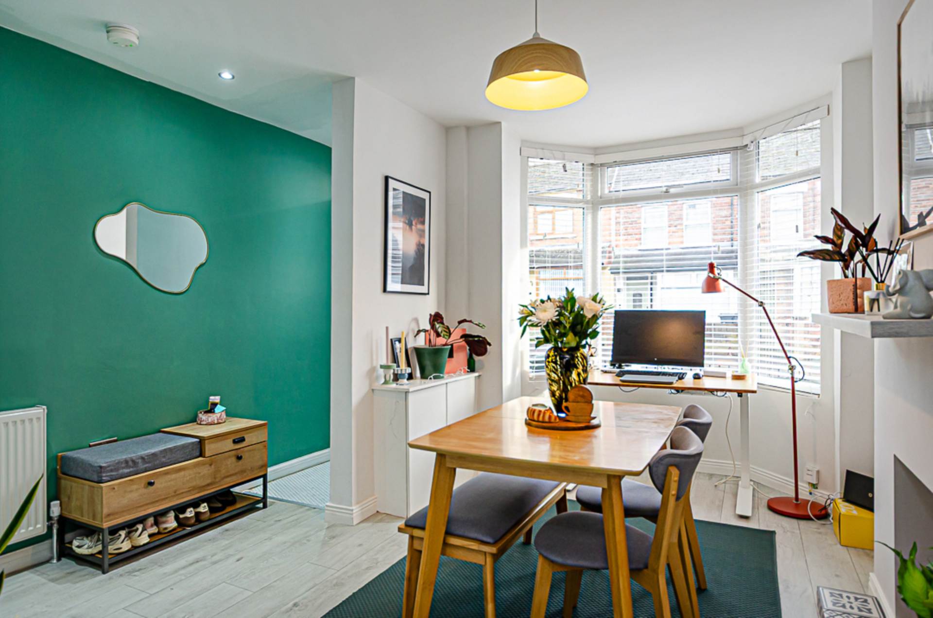 - Open plan living area with bay window and double doors to yard