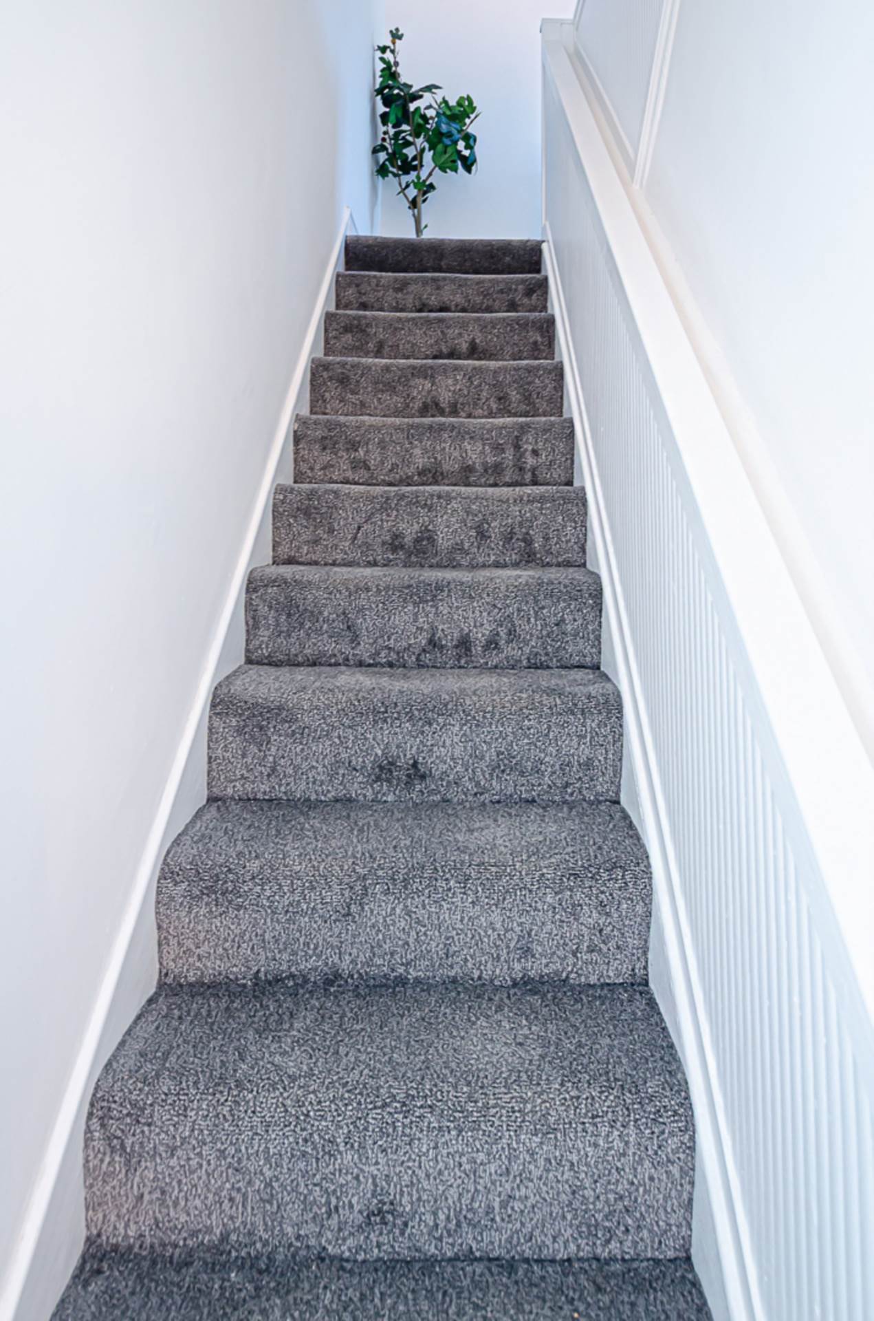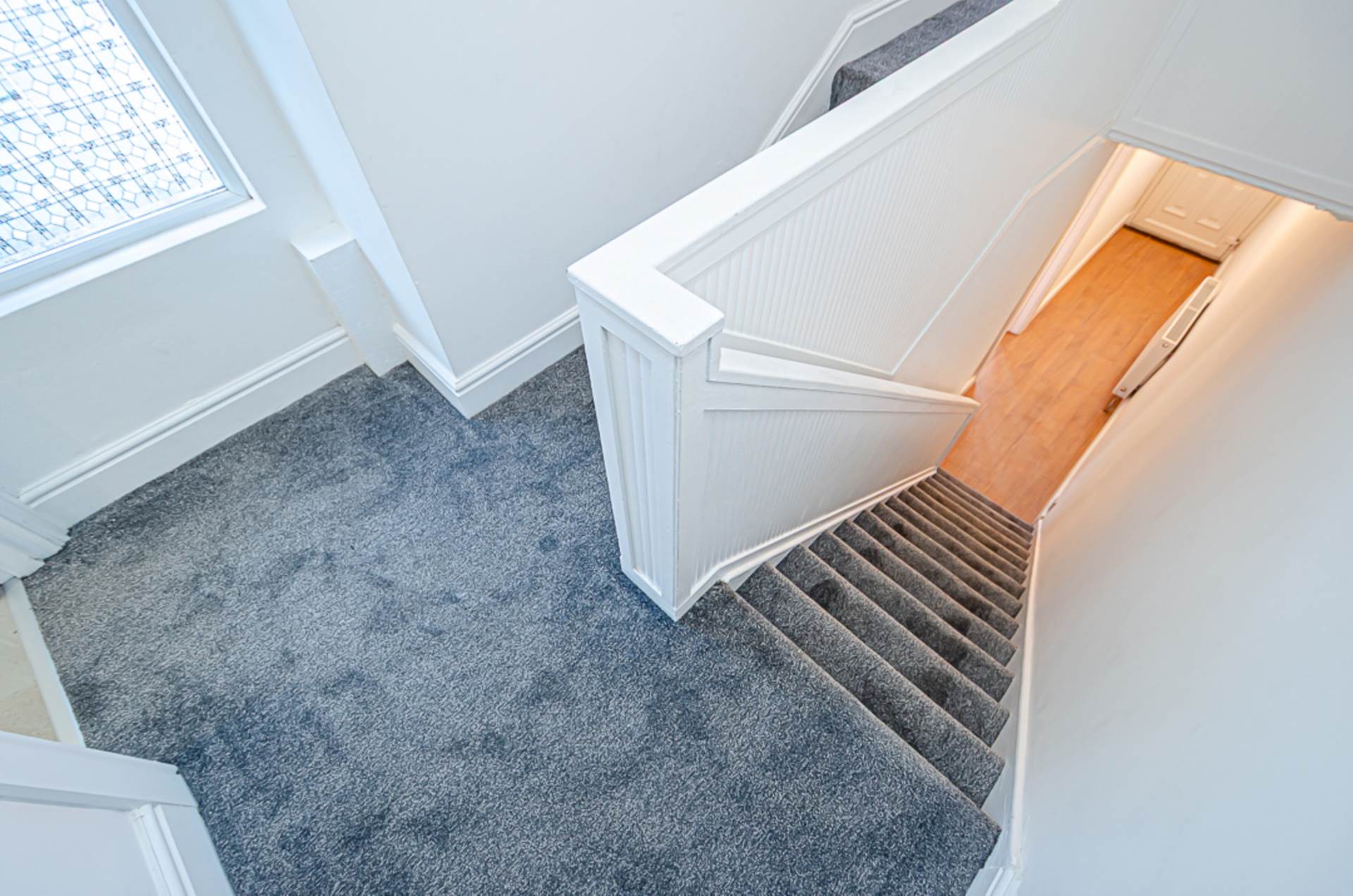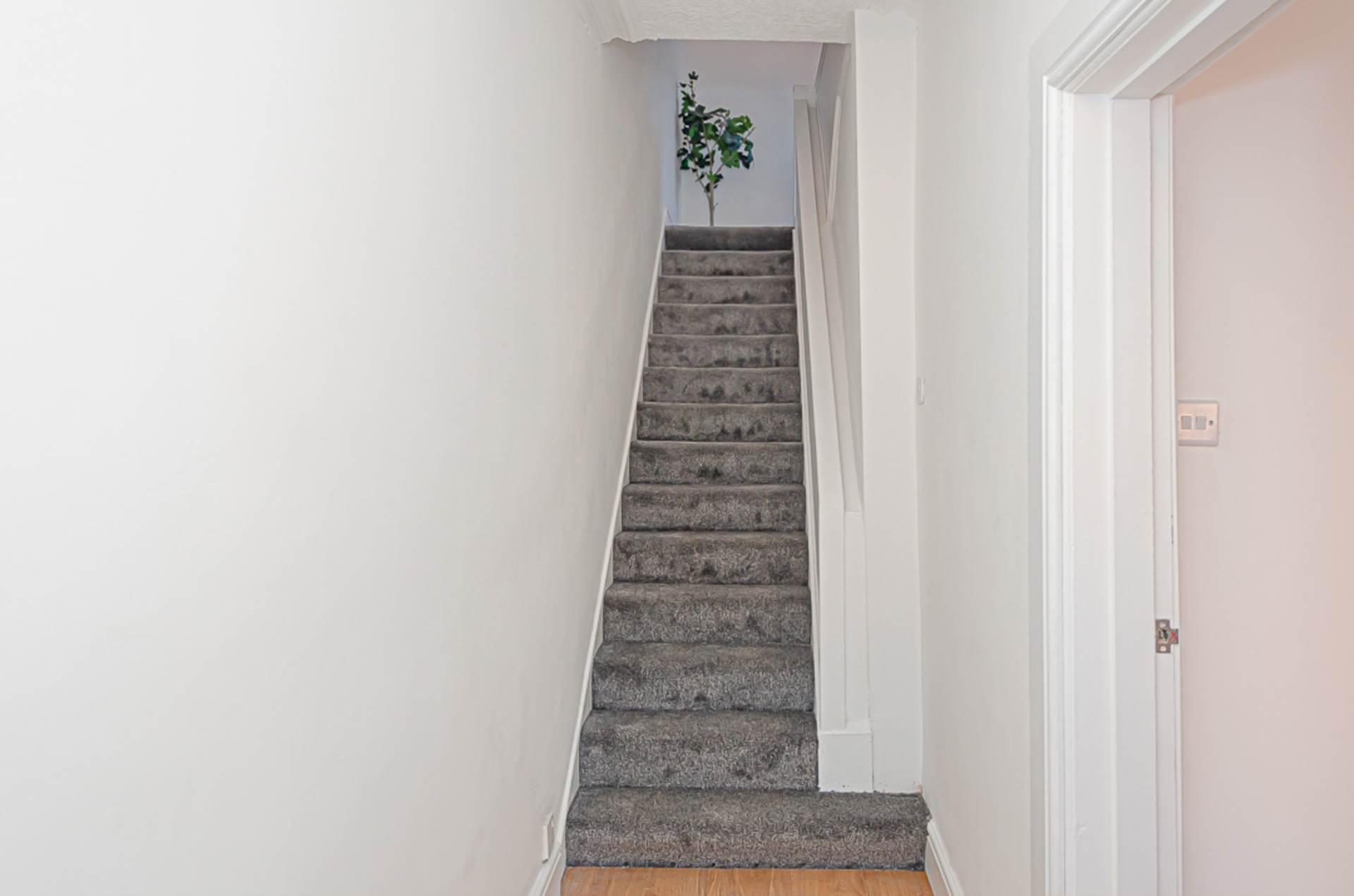 Ceiling rose, timber laminate floor, storage under stairs and gas boiler in cupboard