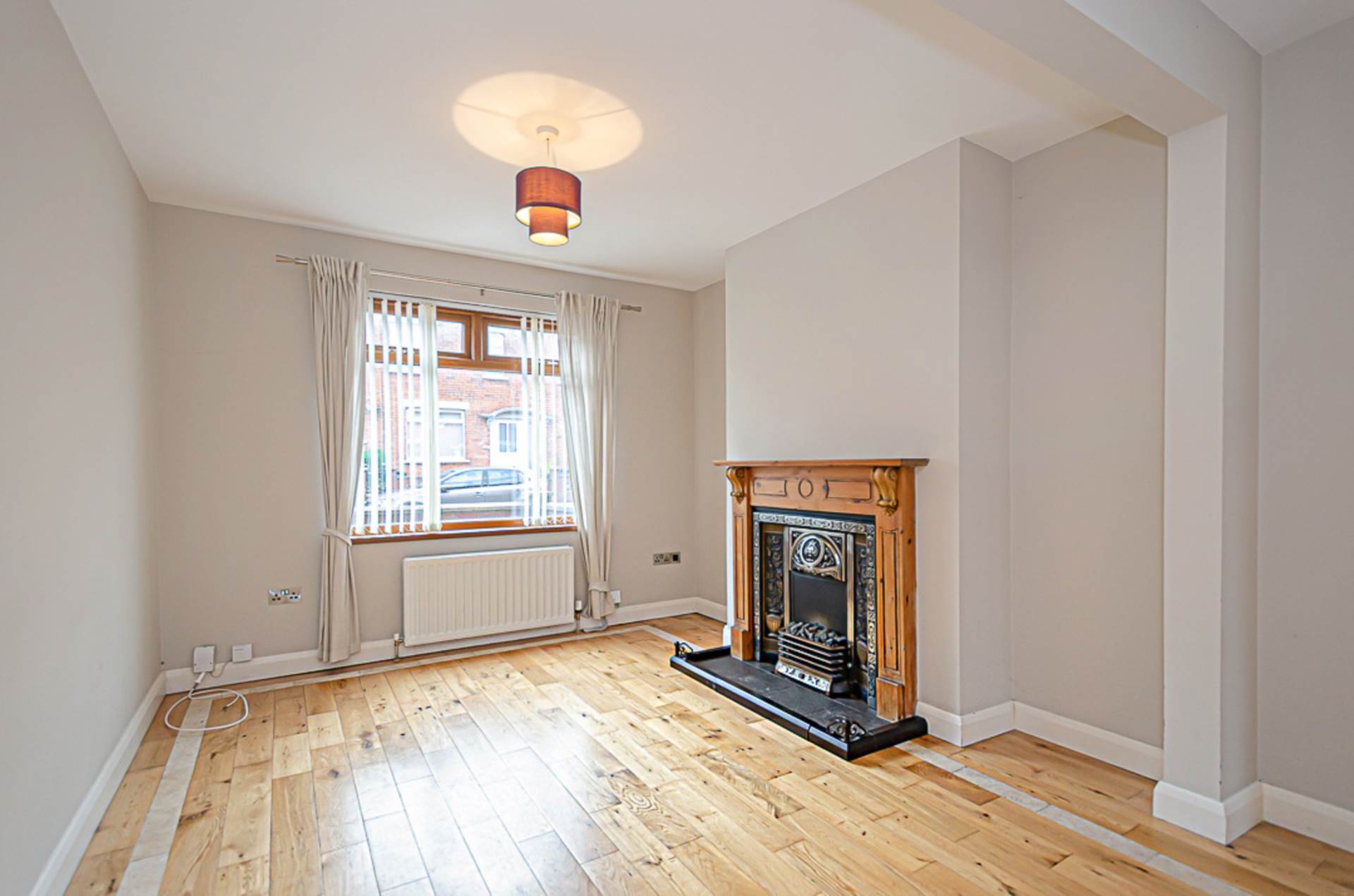 This charming and stylishly appointed terrace house offers the perfect blend of modern comfort and character. The inviting through lounge is a standout feature, boasting a striking feature fireplace and elegant statement flooring, creating a warm and contemporary living space.