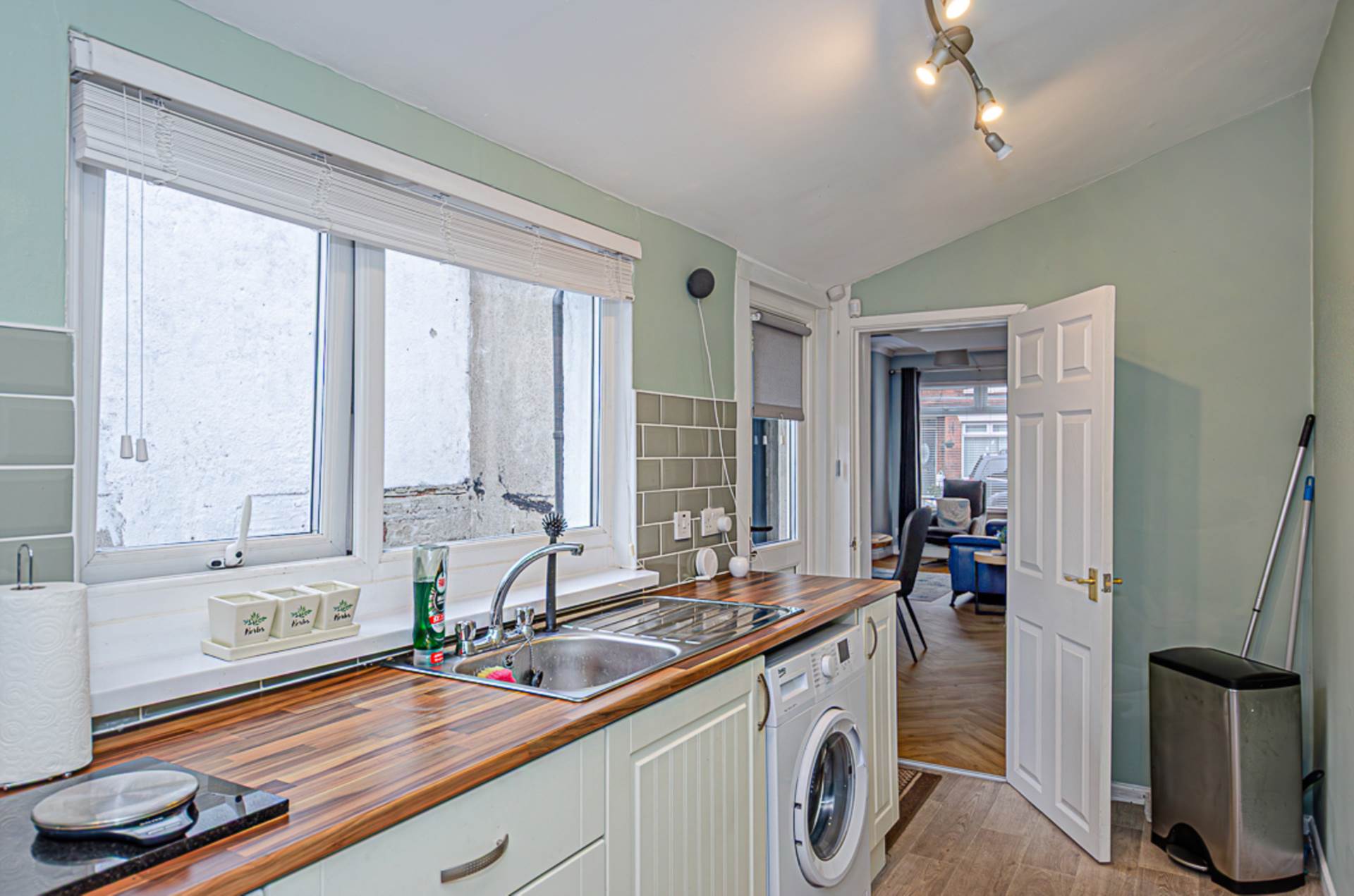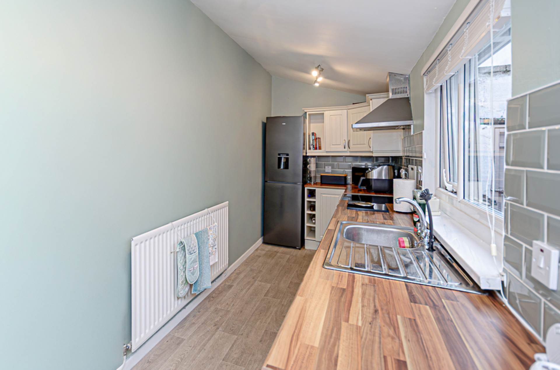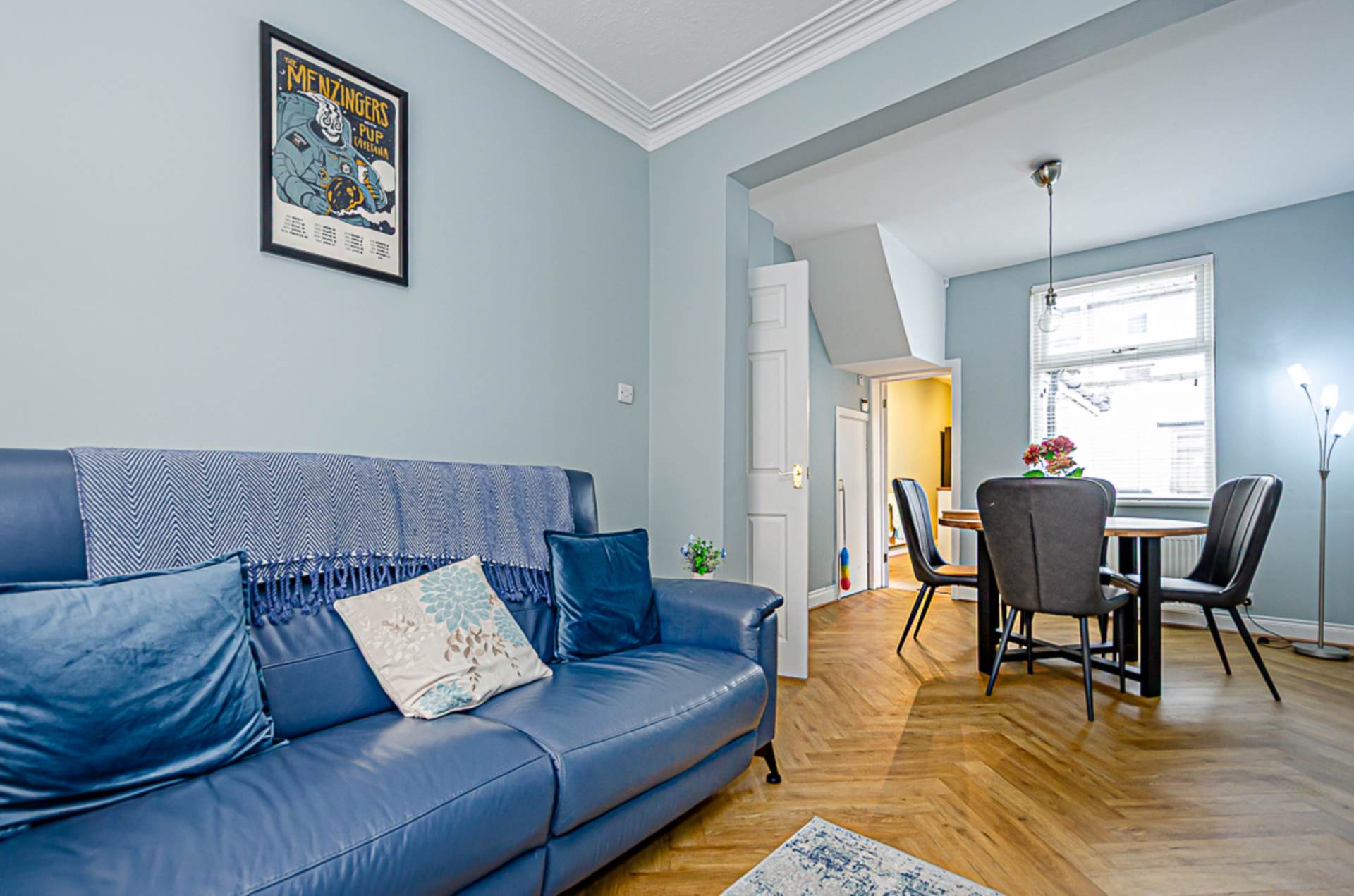 The property opens with a welcoming entrance hall retaining original features, leading to a bright through lounge with a bay window, creating a spacious and inviting living area. To the rear, a large modern kitchen offers excellent storage, contemporary fittings, and ample dining space perfect for both family life and entertaining.
