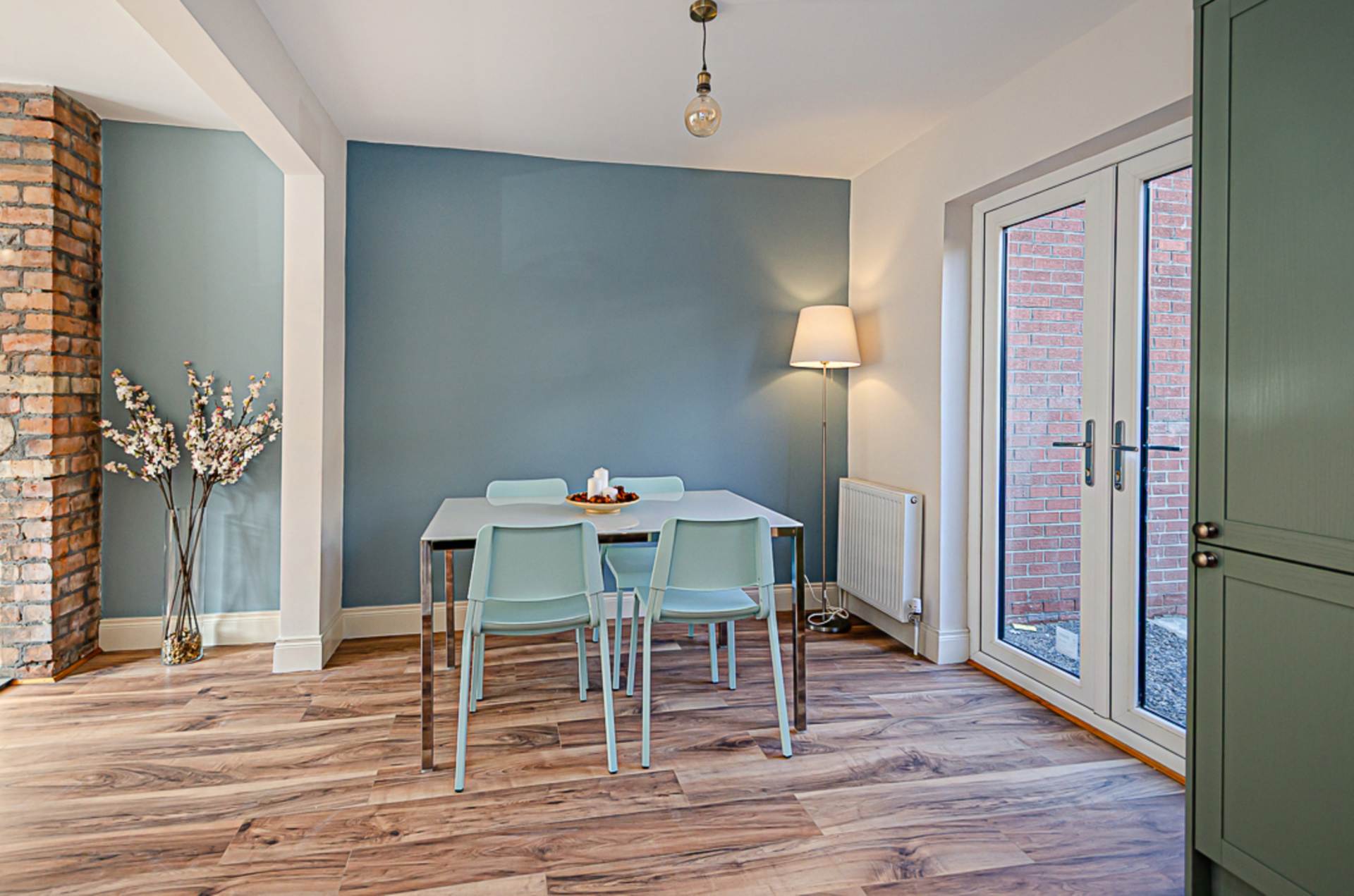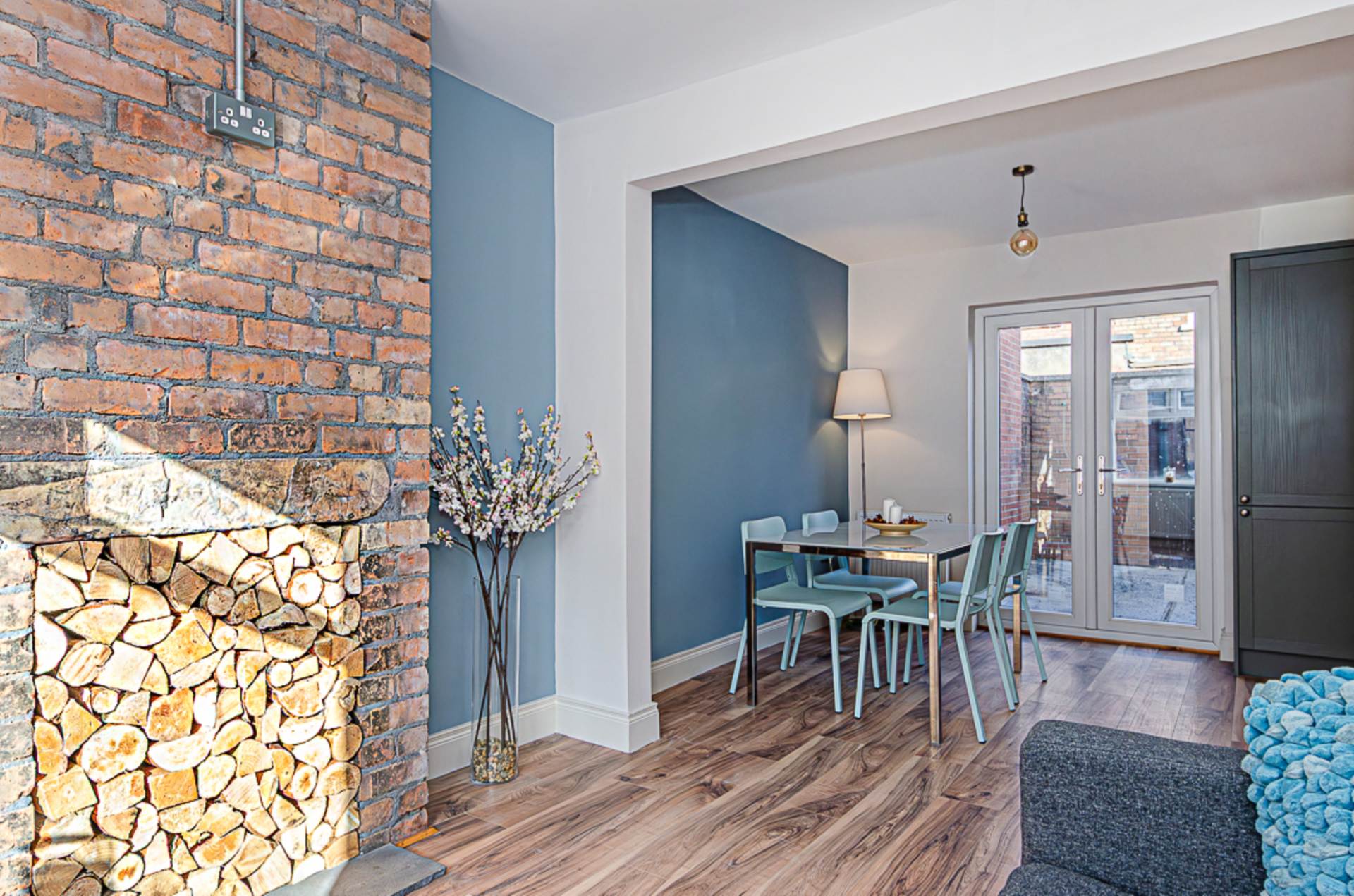 Living room - 19'8" (5.99m) x 9'6" (2.9m)Reclaimed brick chimney breast, timber laminate floor, French doors, and open to..