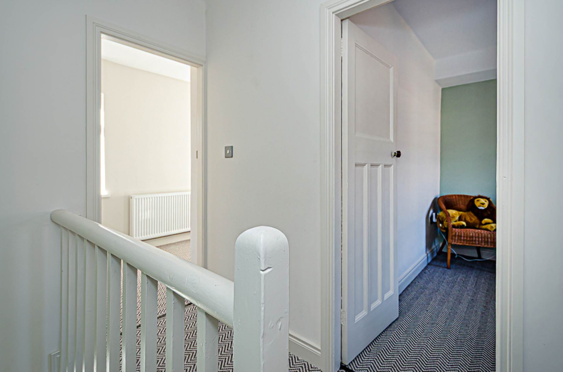 - Wide entrance hall with statement stair runner