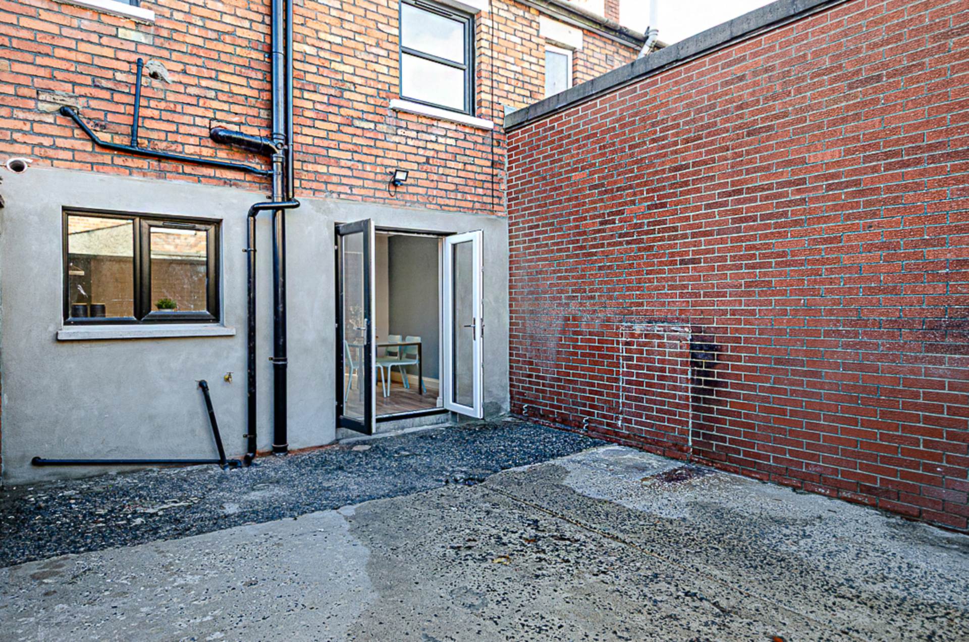 OutsideForecourt in small stones and path. Courtyard garden to the rear