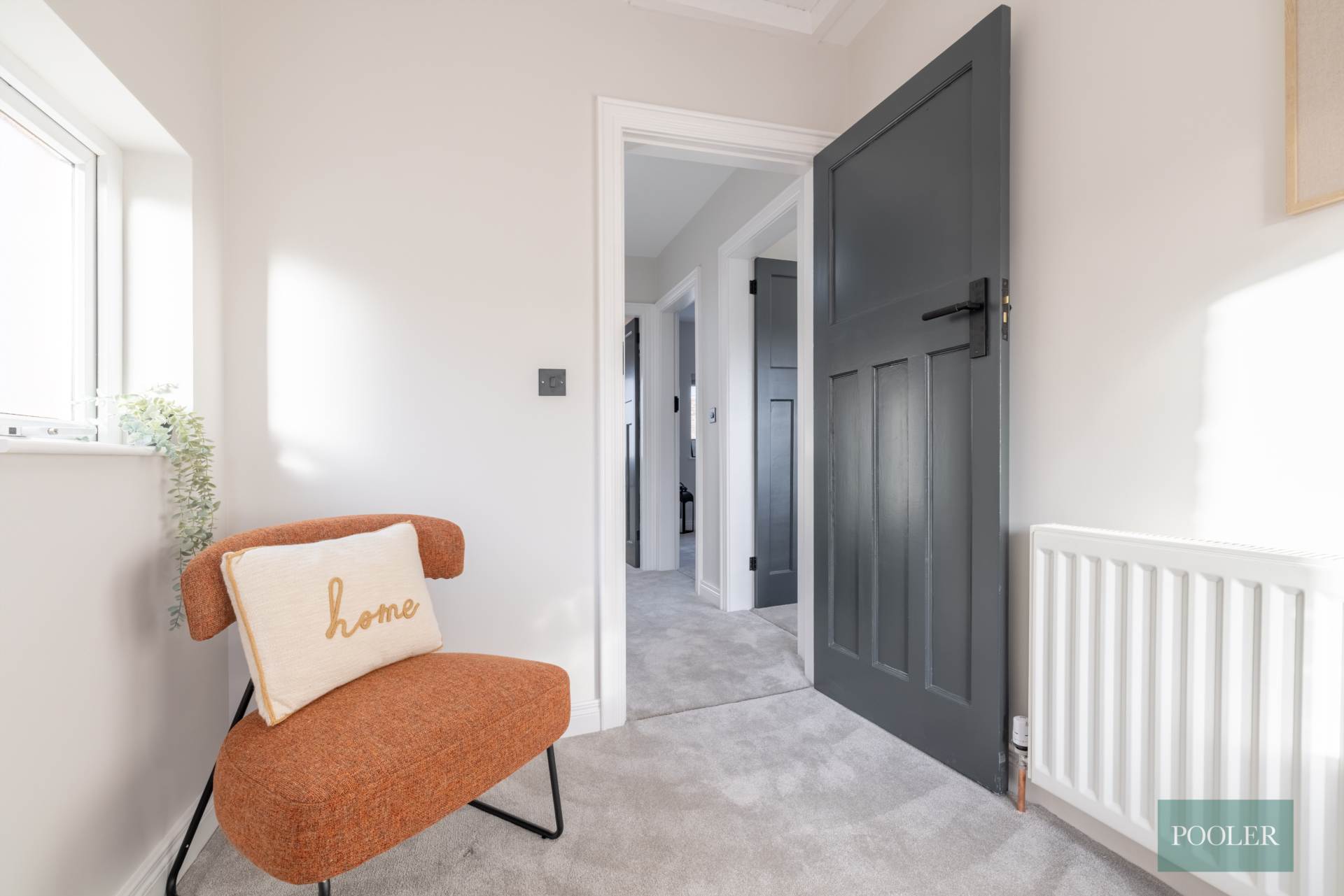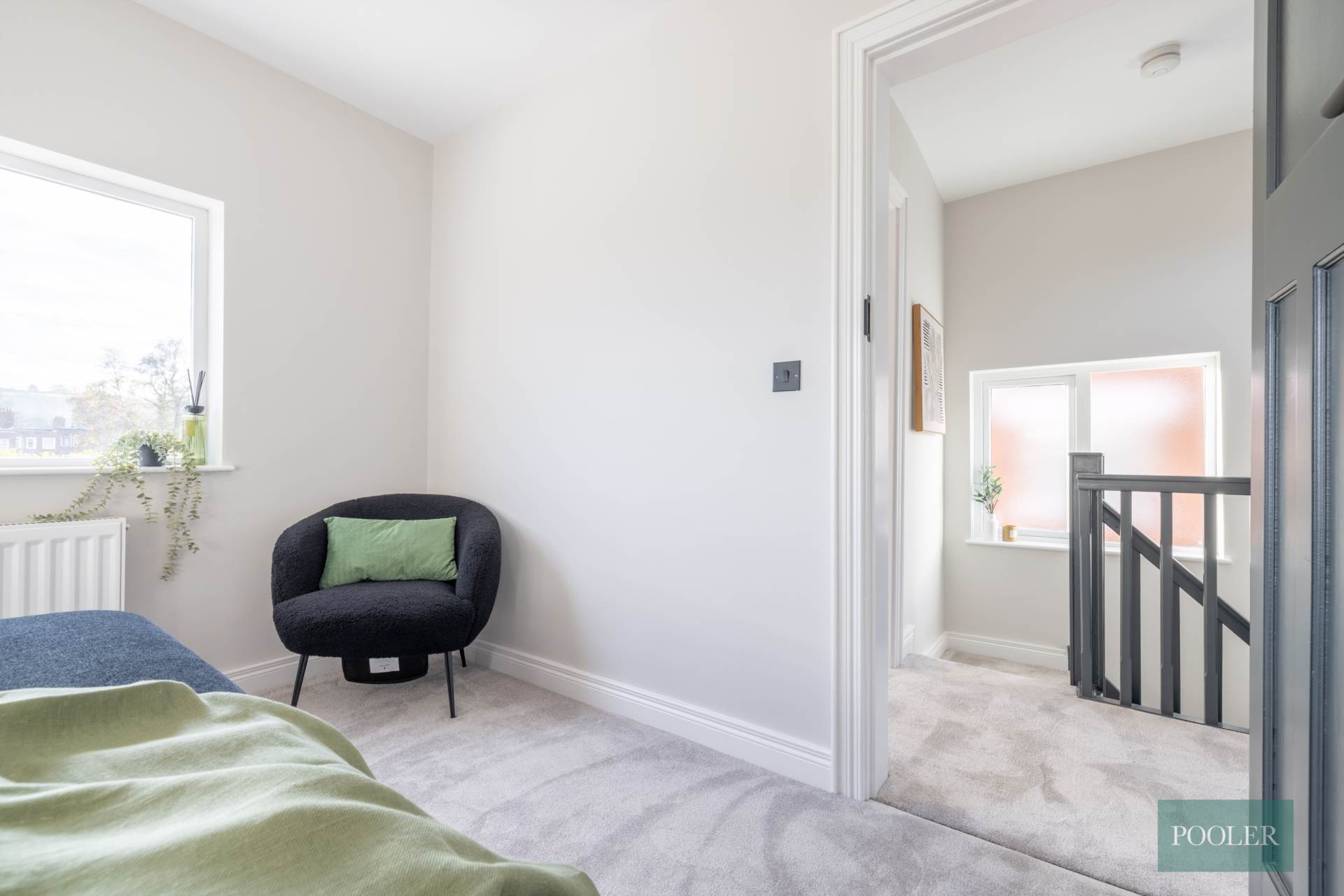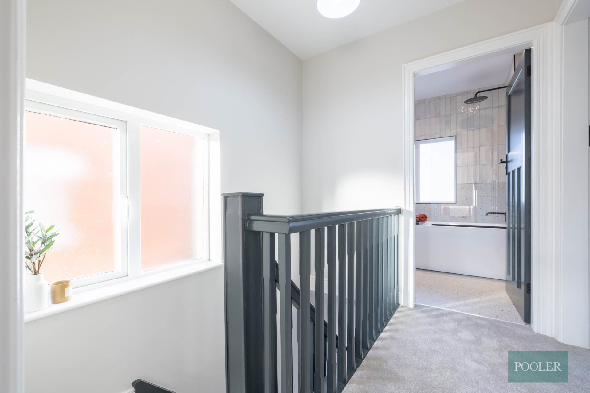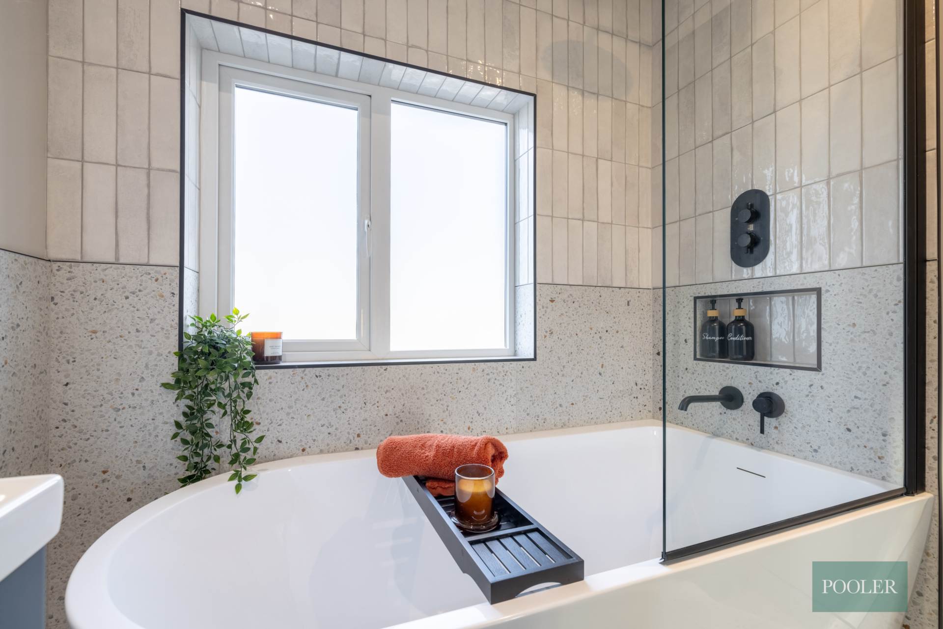 Upstairs, the home offers three double bedrooms, all beautifully presented and filled with natural light, along with a stylish bathroom featuring modern black fittings for an elegant, on-trend finish.