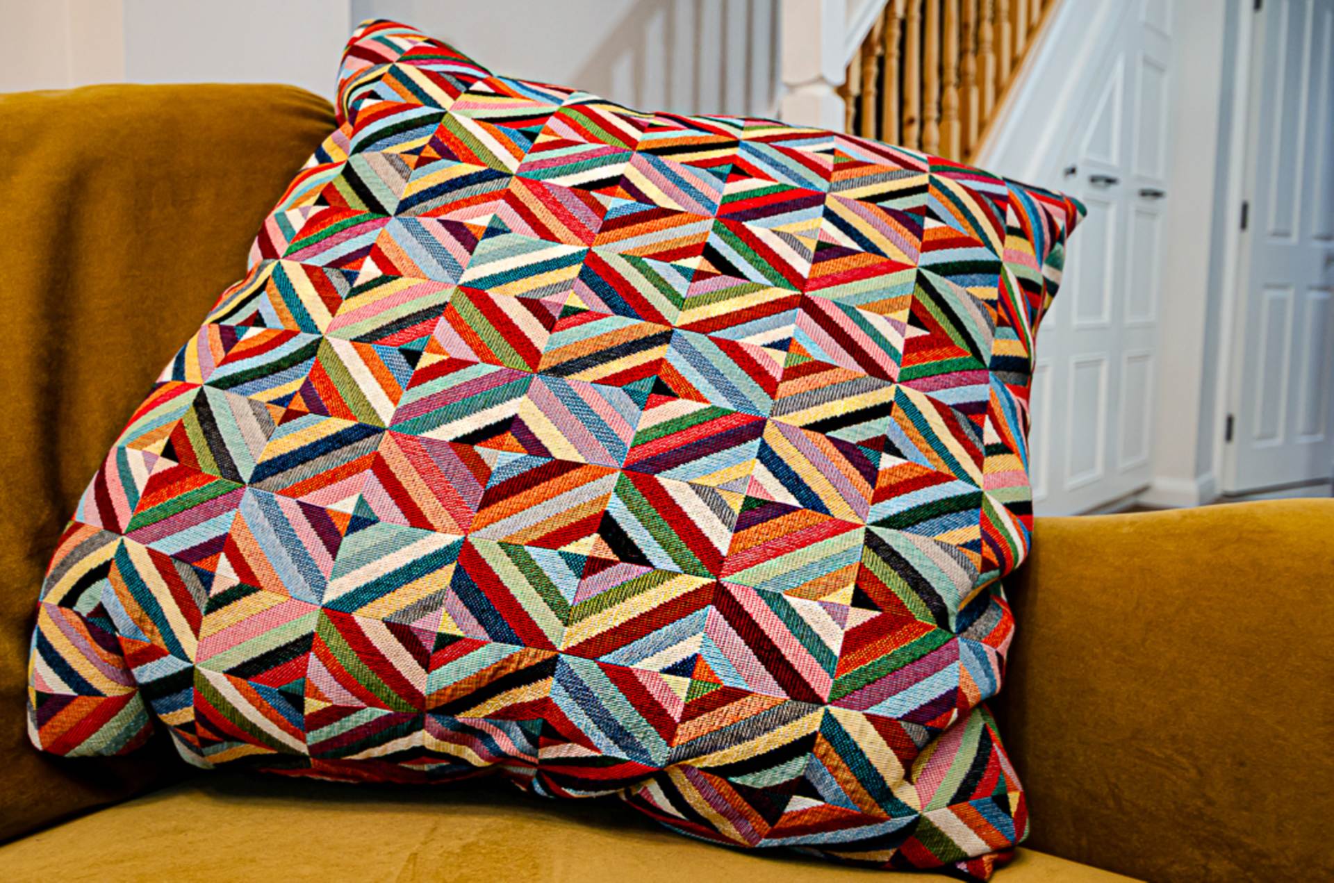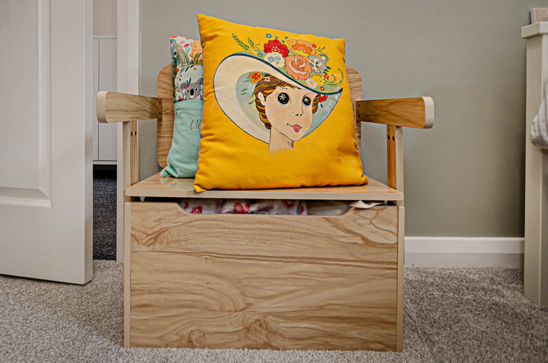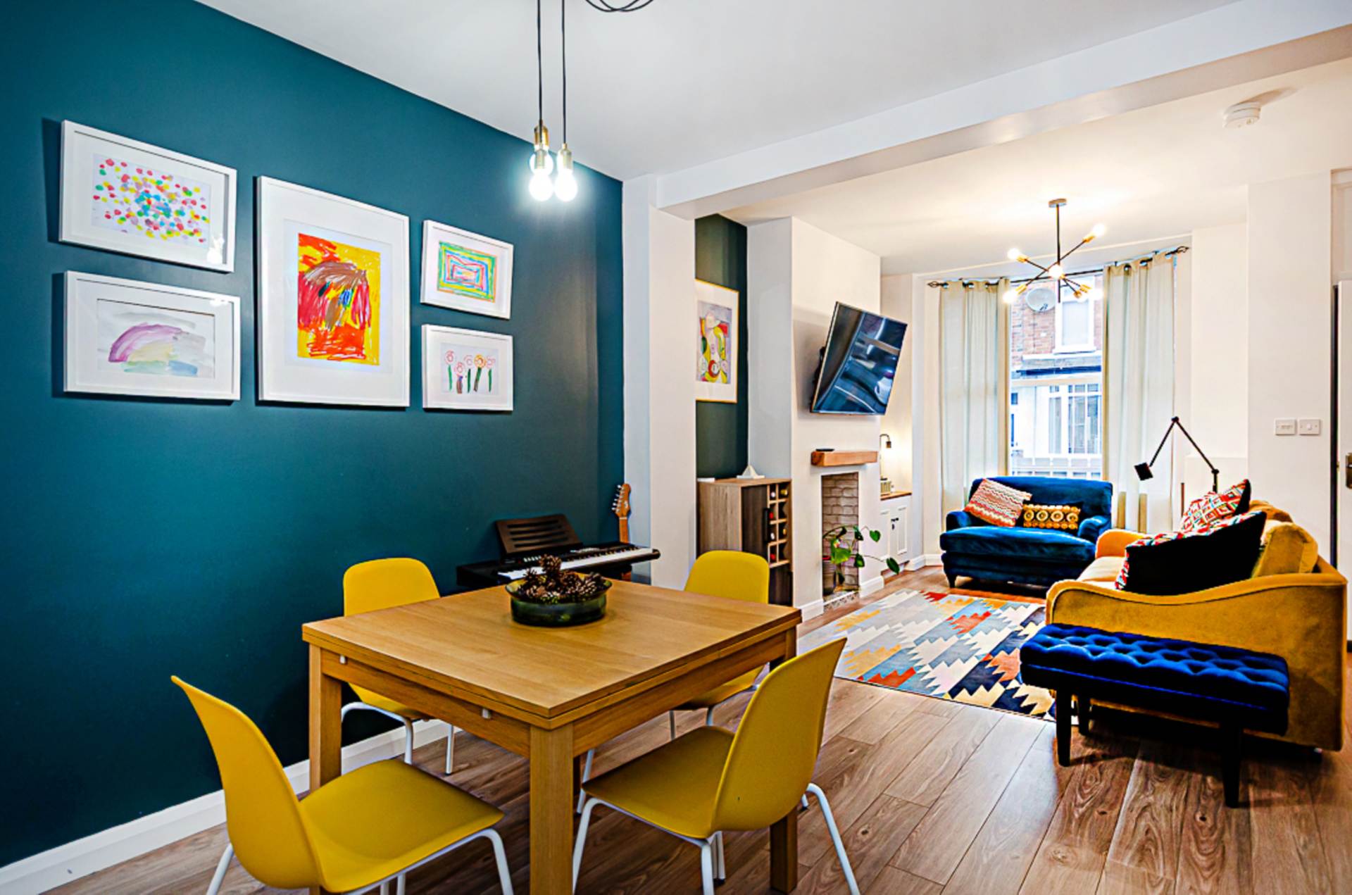 - Open plan living area with bay window and bespoke storage