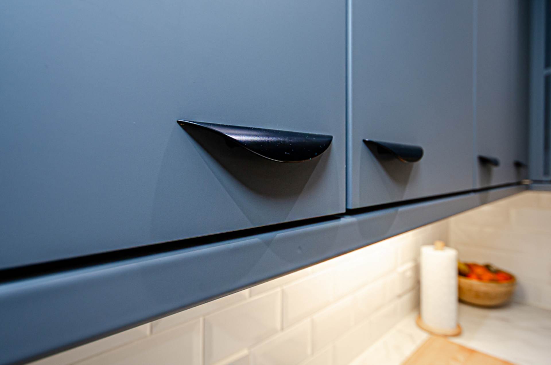 - Modern kitchen in grey finish with integrated appliances