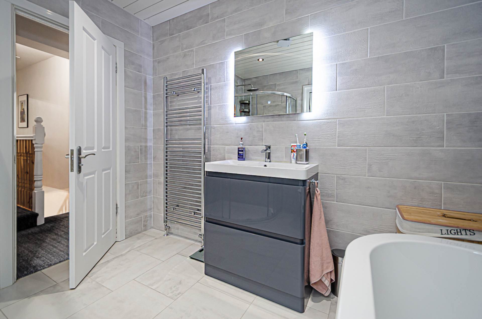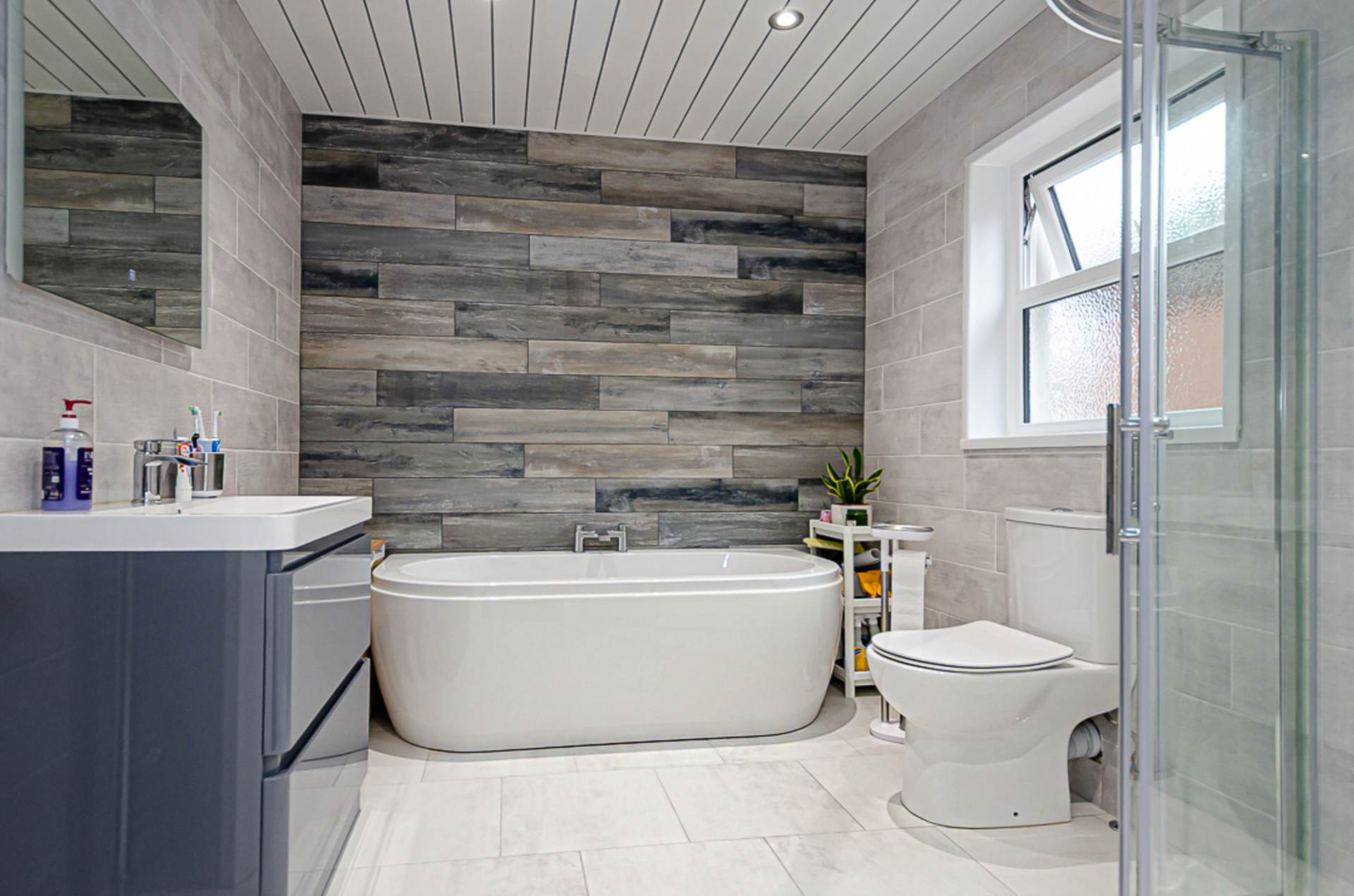 - Contemporary bathroom with separate shower cubicle