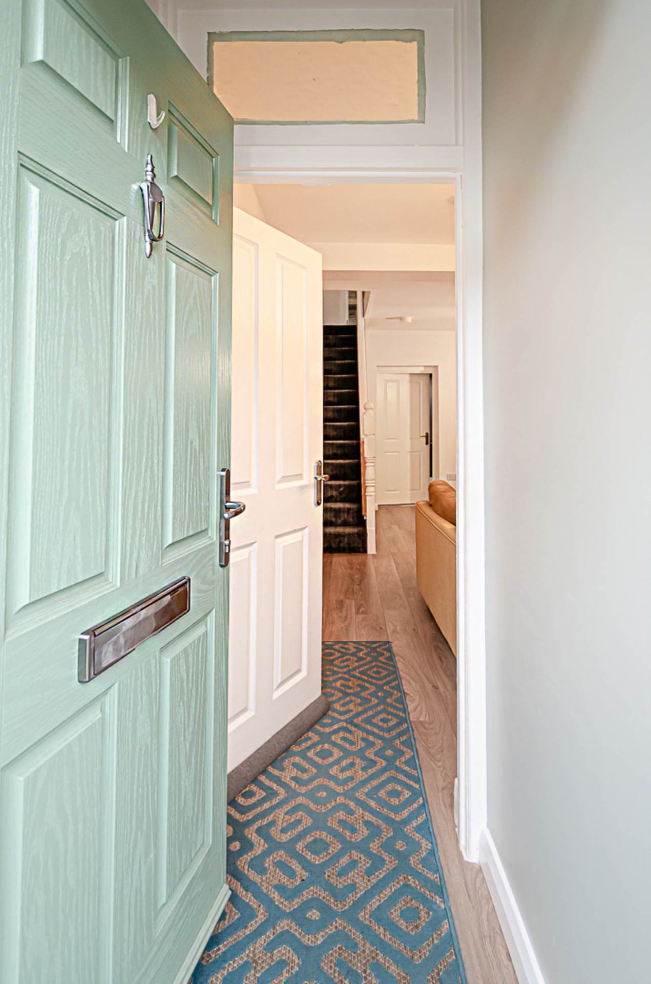 Entrance porchRecently fitted composite front door, timber laminate floor and alarm panel