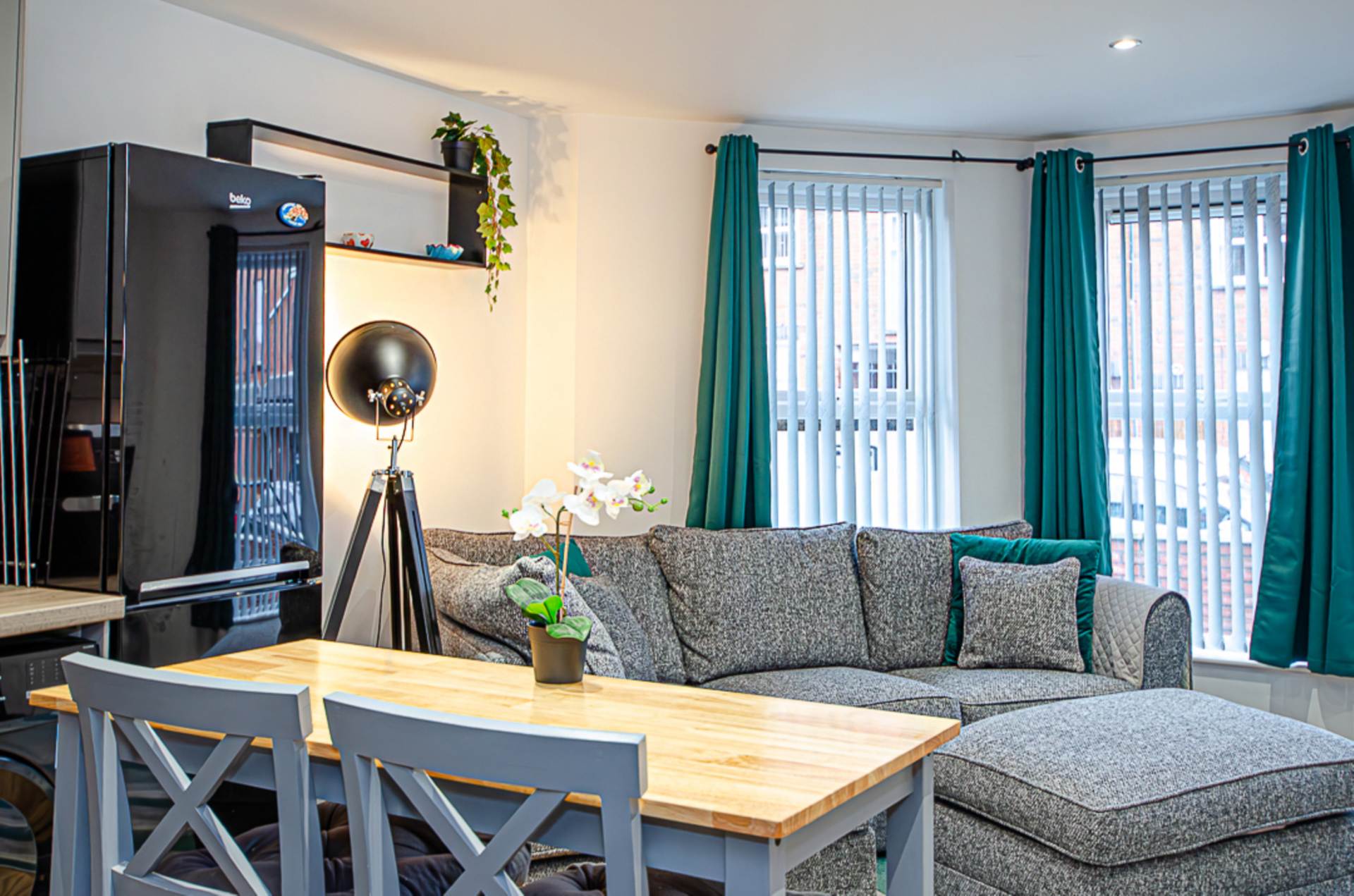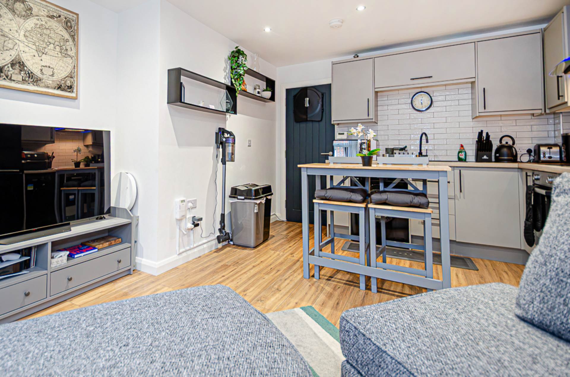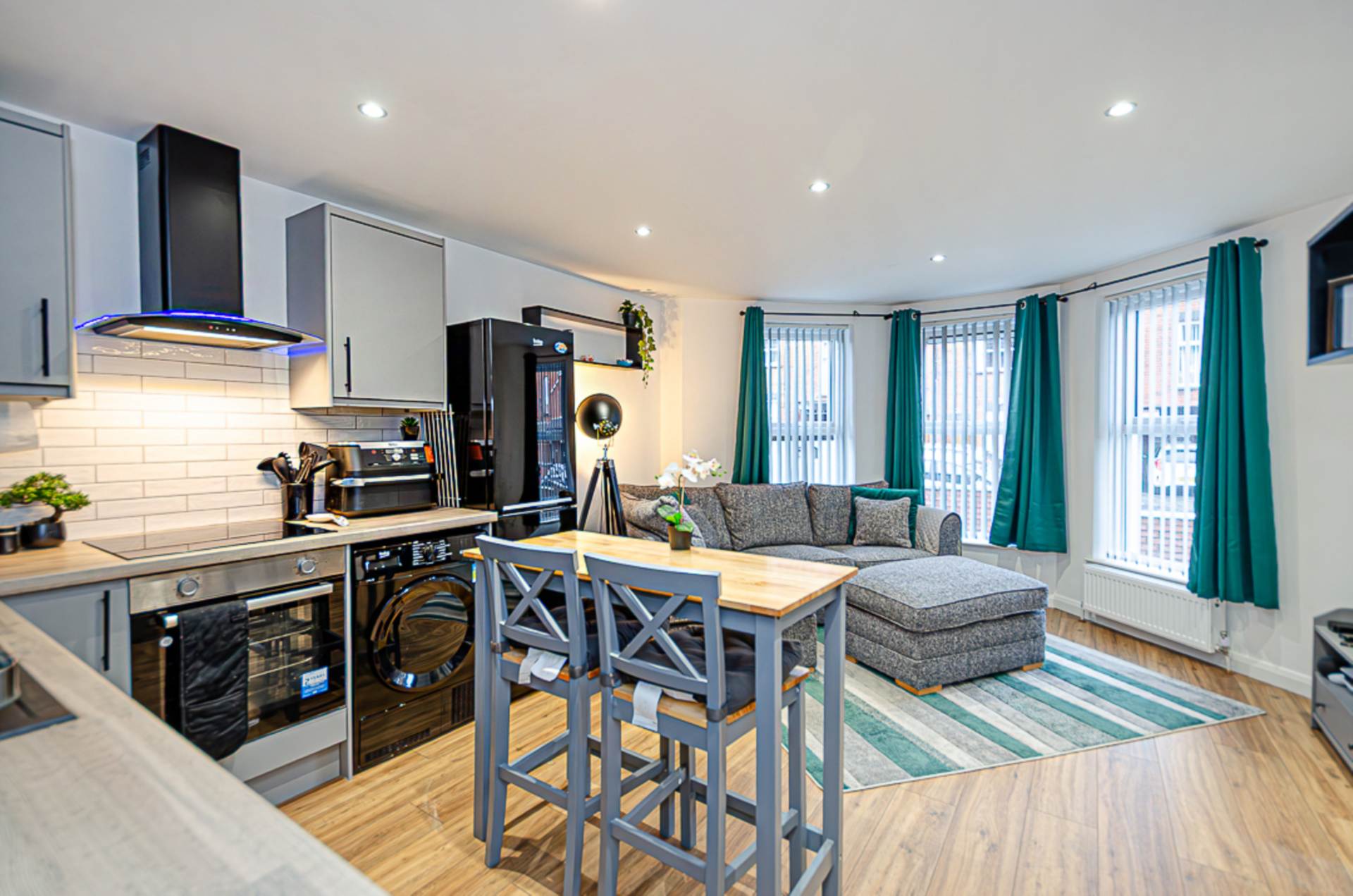 - Open plan kitchen/ living area with bay window
