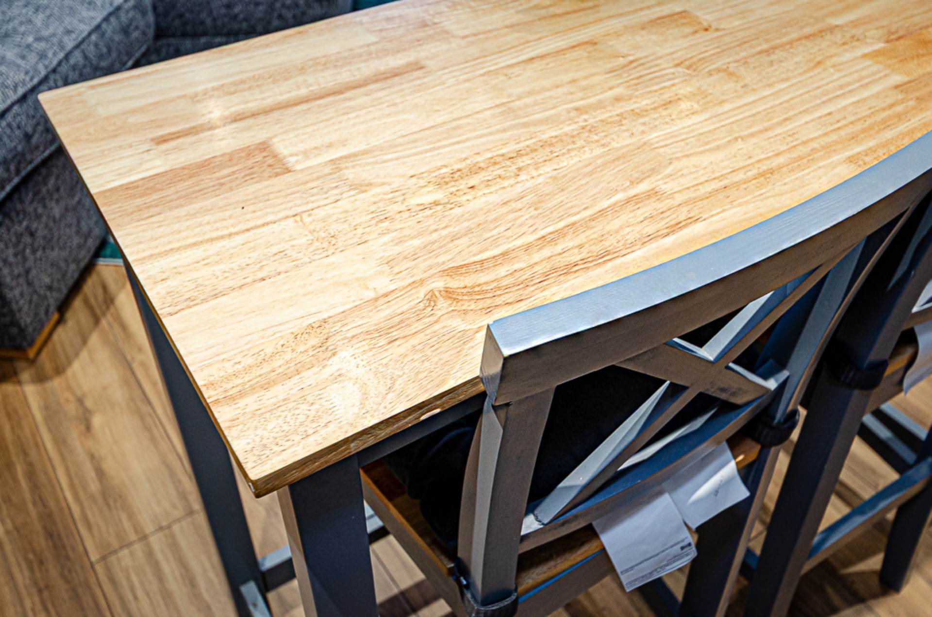 Living areaBay window, timber laminate floor and recessed spotlights