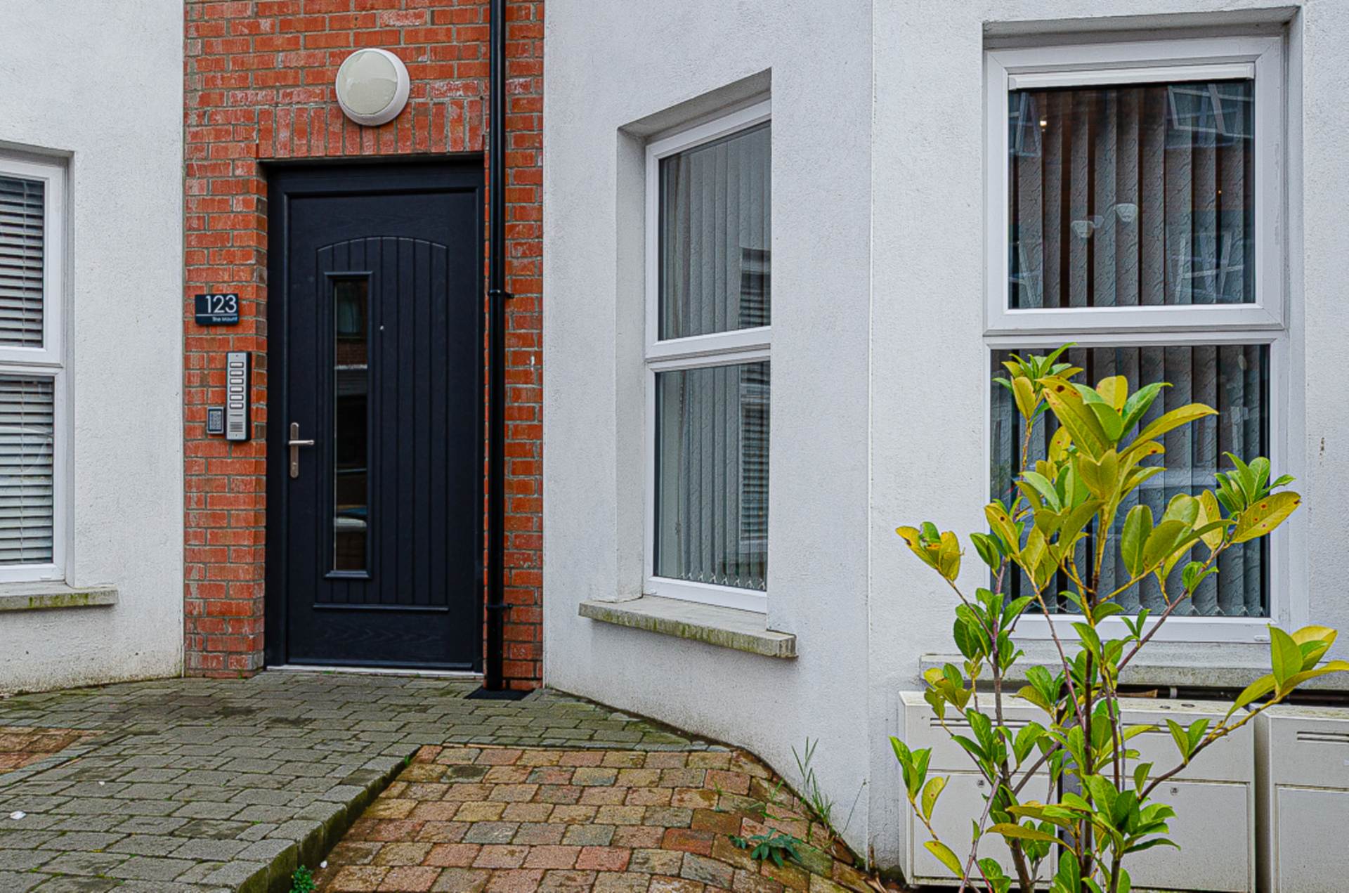Communal entrance with intercom entry system