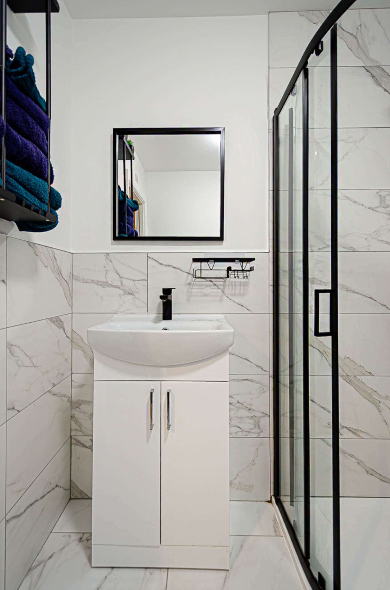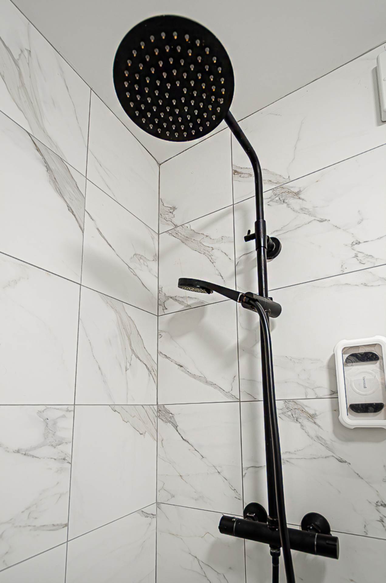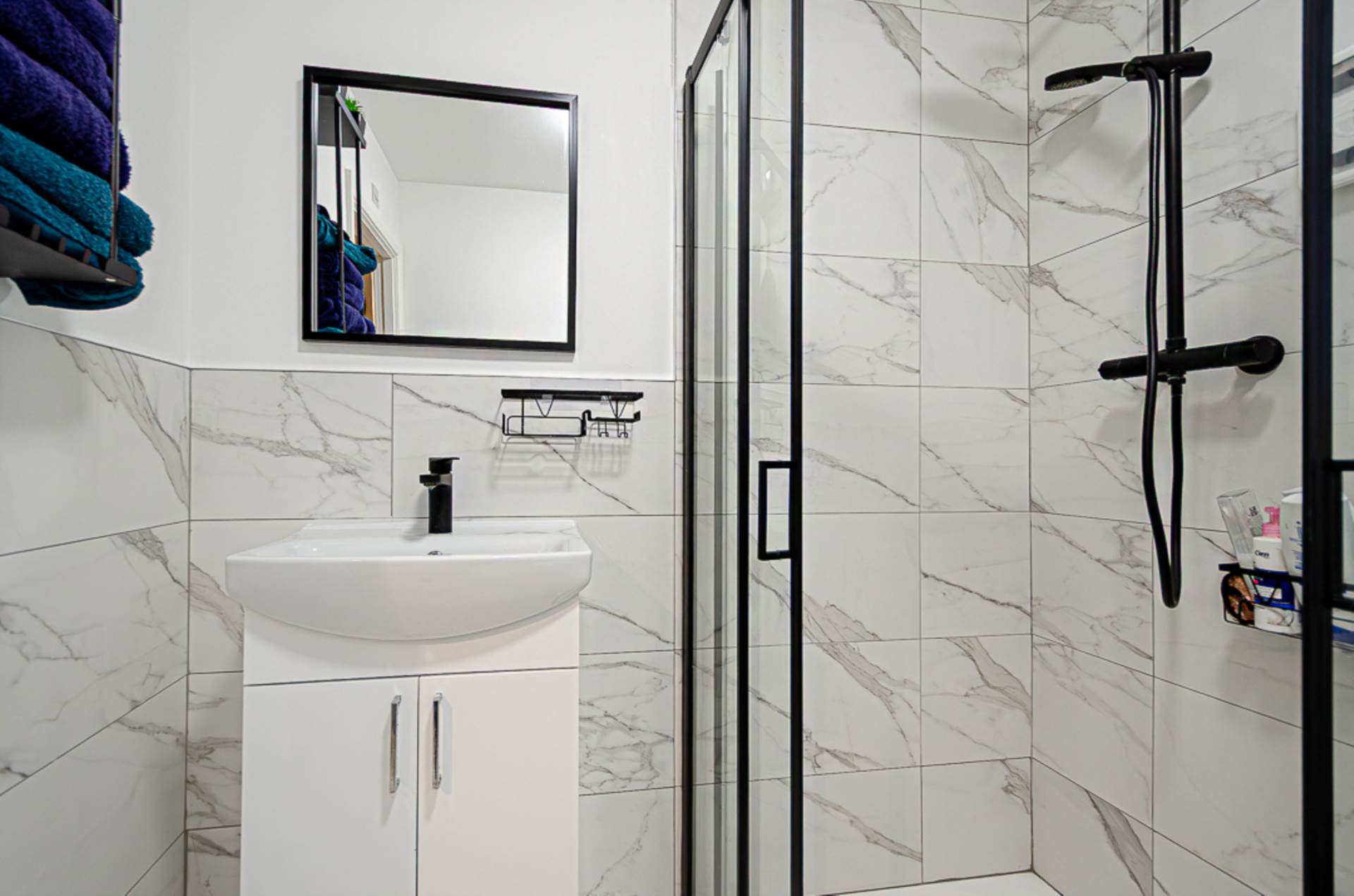 - Modern shower room with black fittings