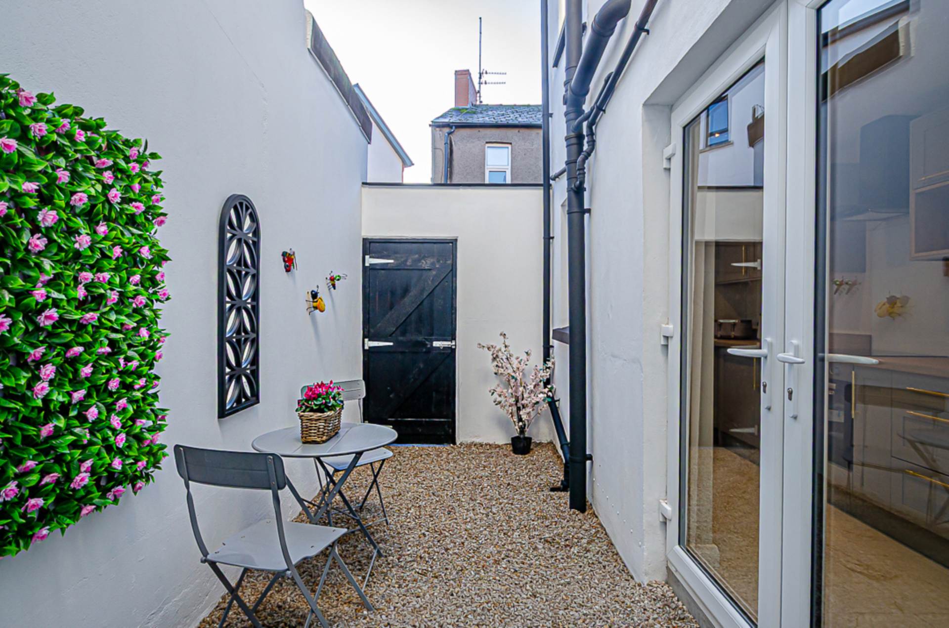 Externally, the property enjoys a south-facing enclosed rear yard finished in Donegal Quartz stones, perfect for outdoor dining and low-maintenance enjoyment.