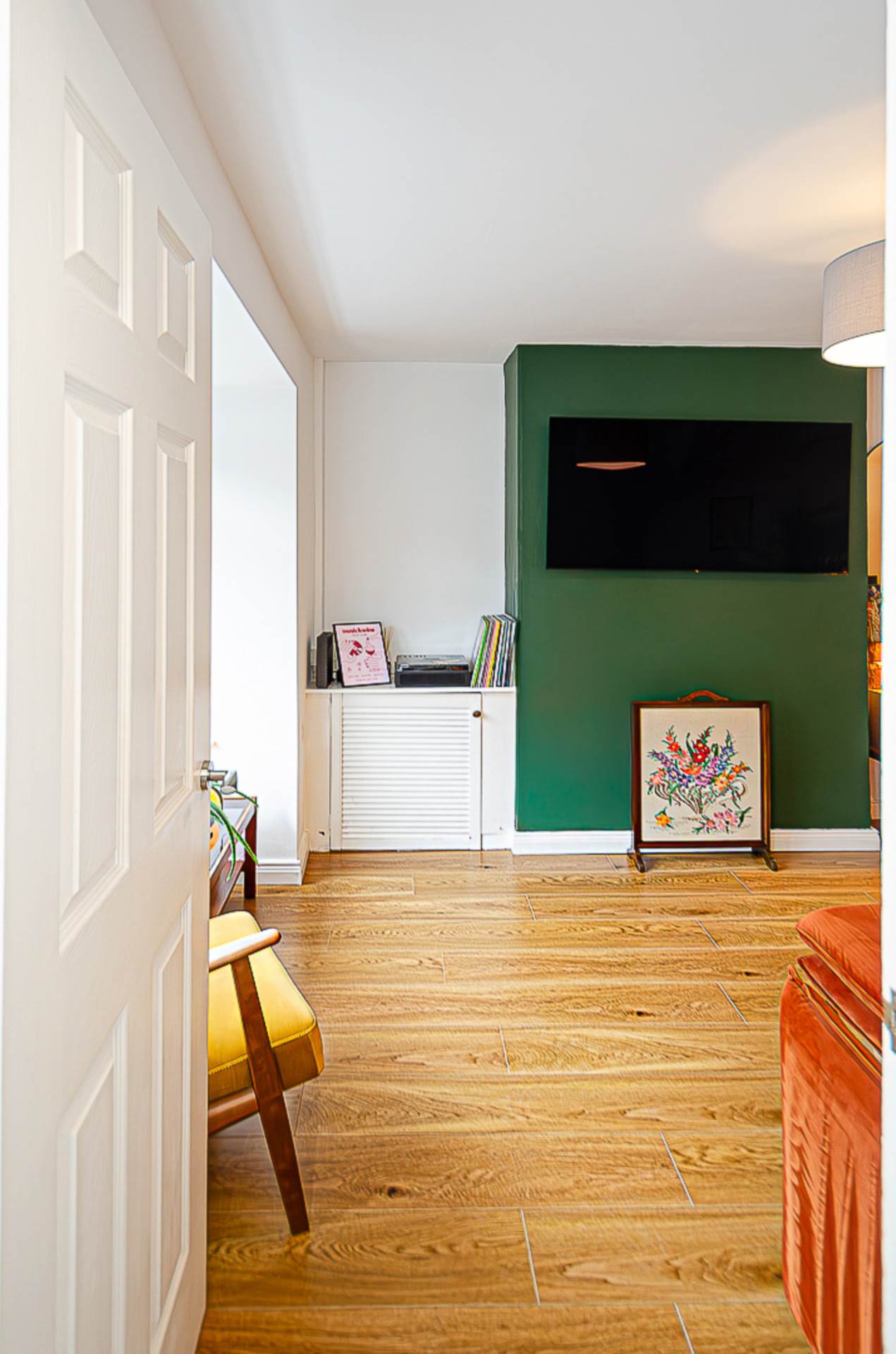 Through lounge - 20'2" (6.15m) x 13'10" (4.22m)Bay window, timber laminate floor and storage under stairs