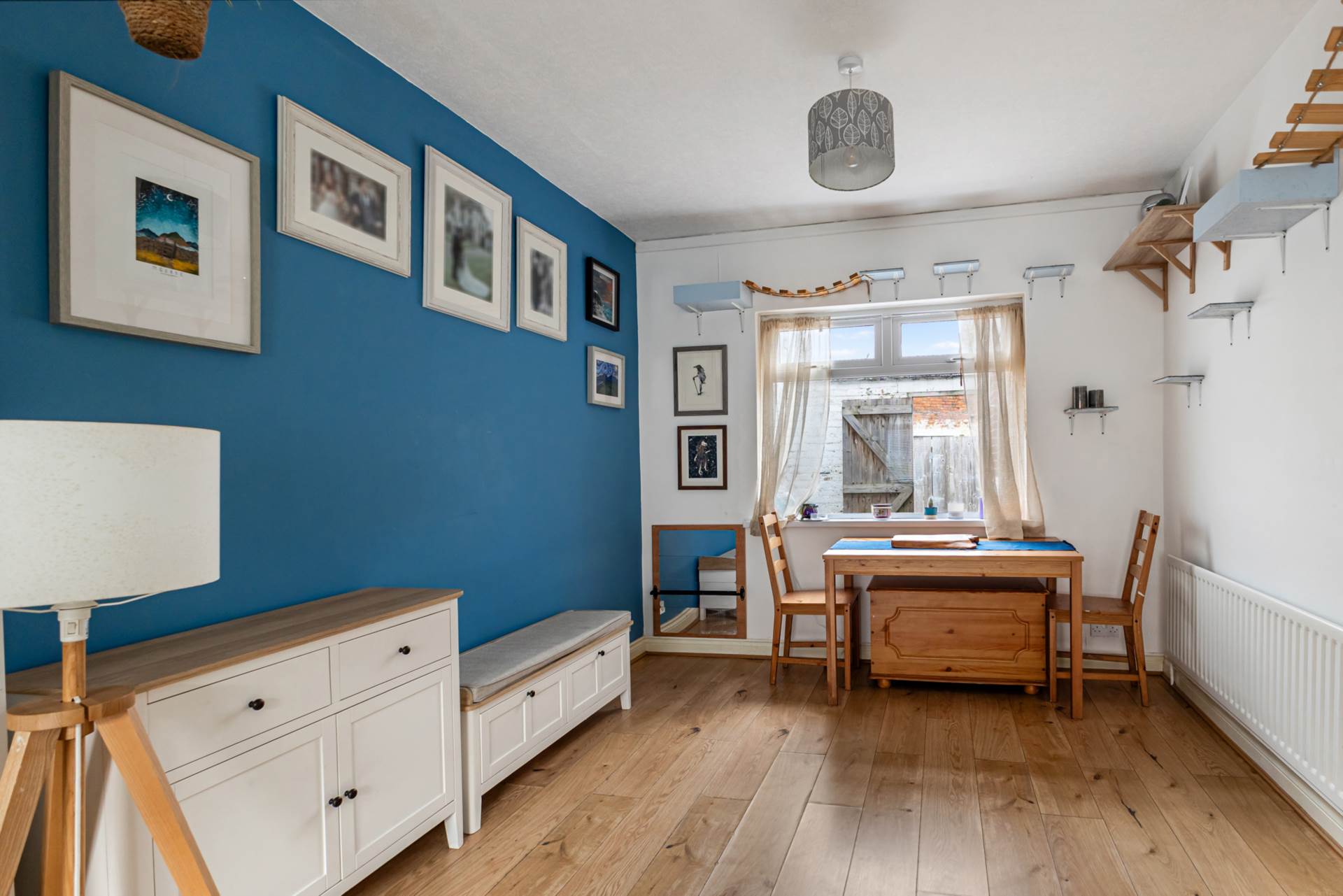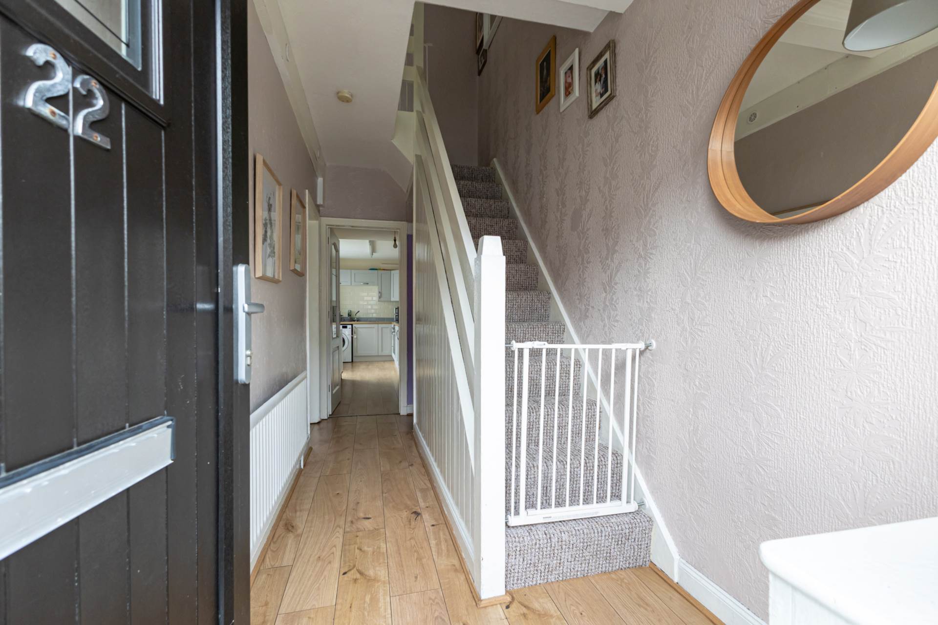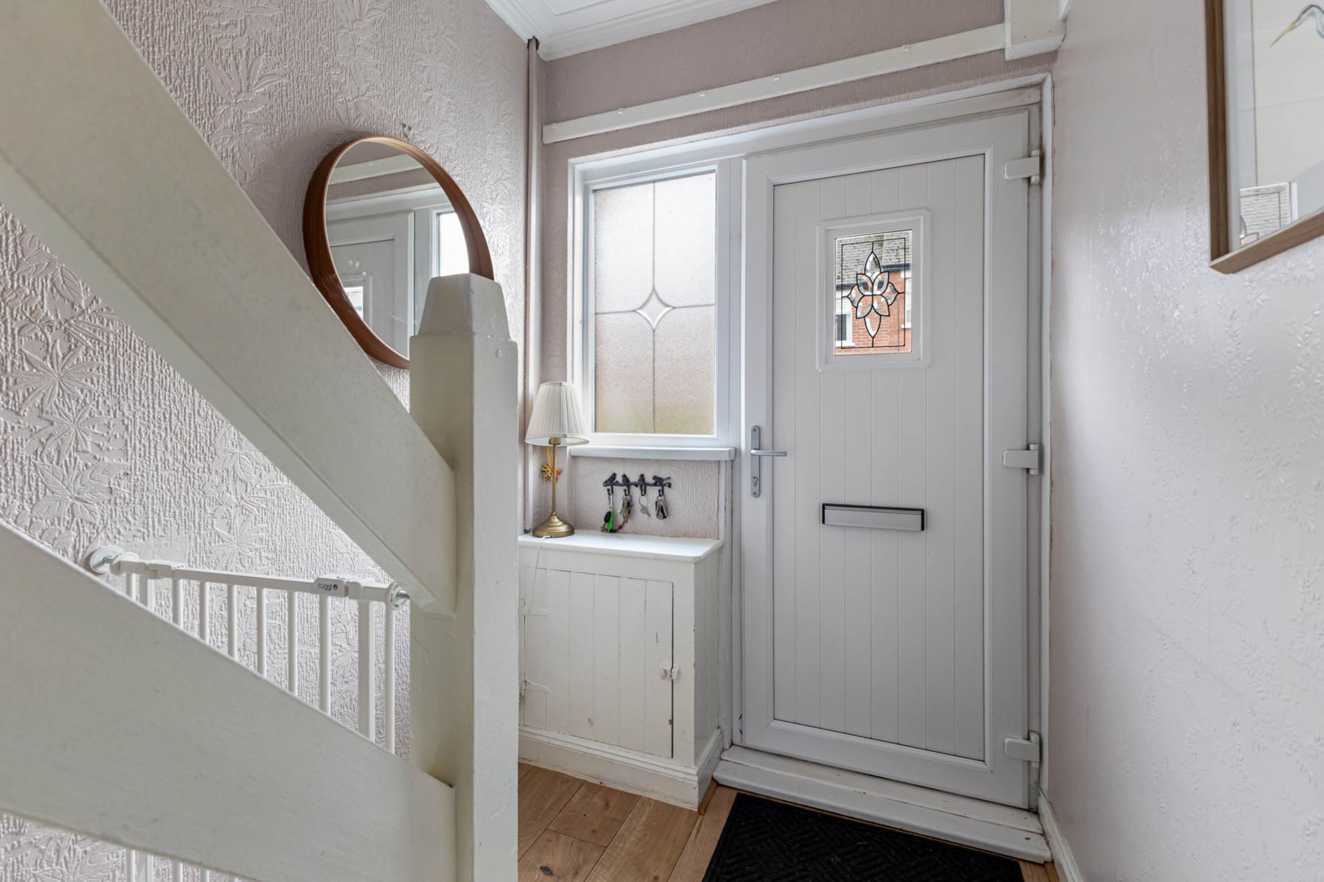 Entrance hallTimber laminate floor and cloak space understairs