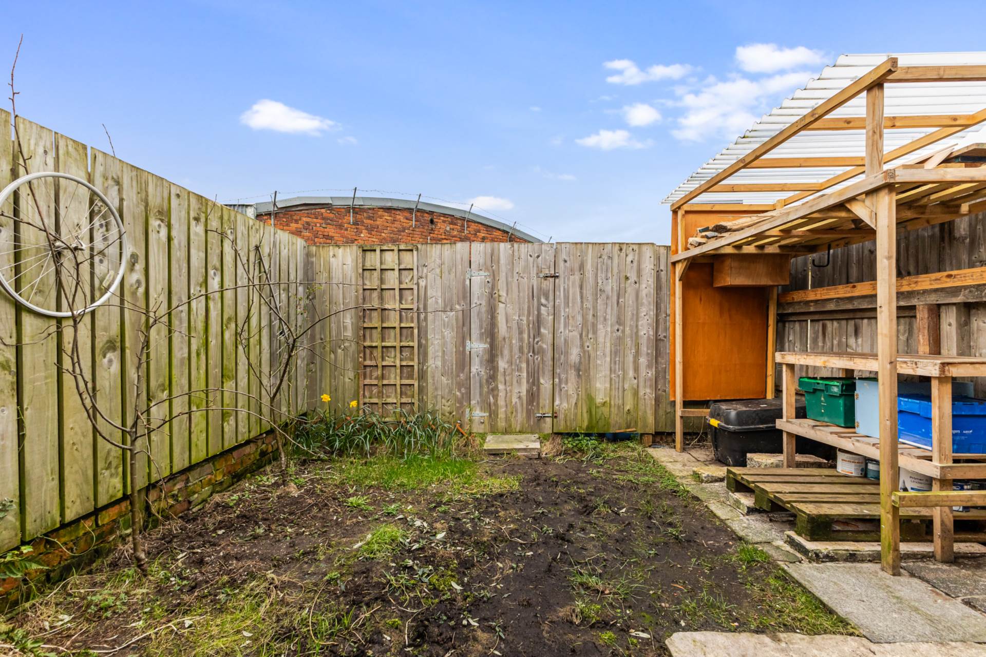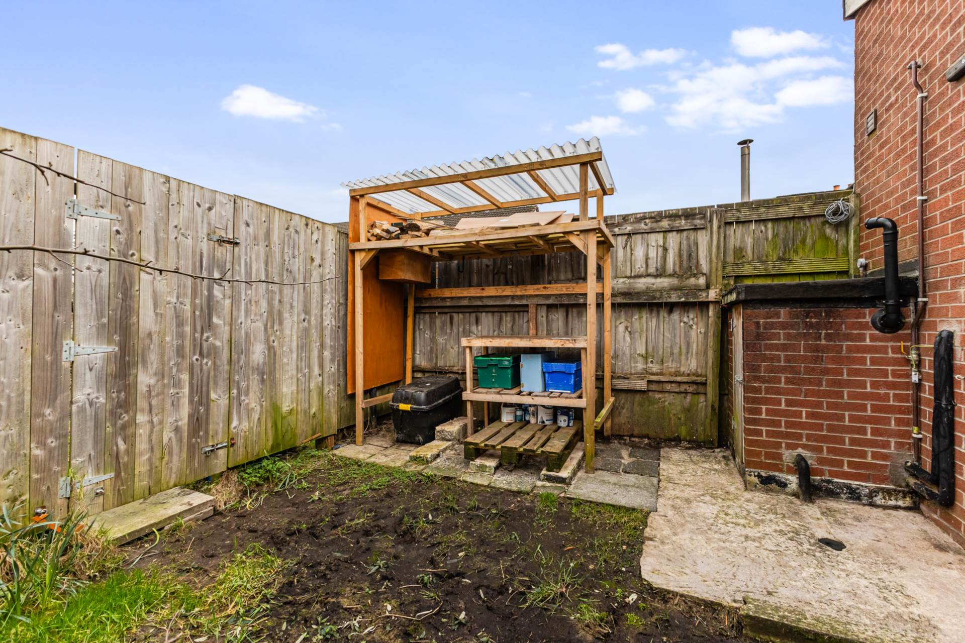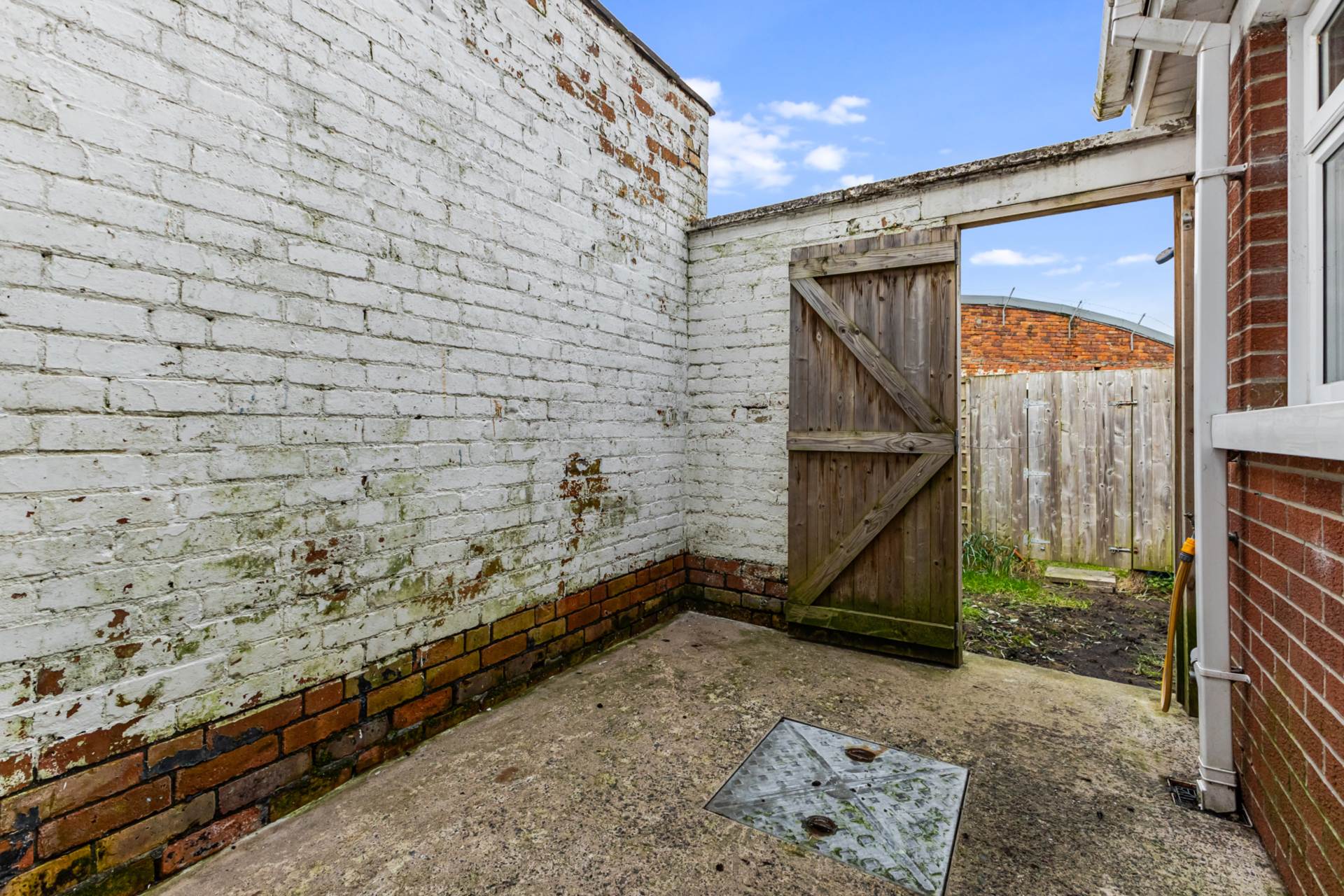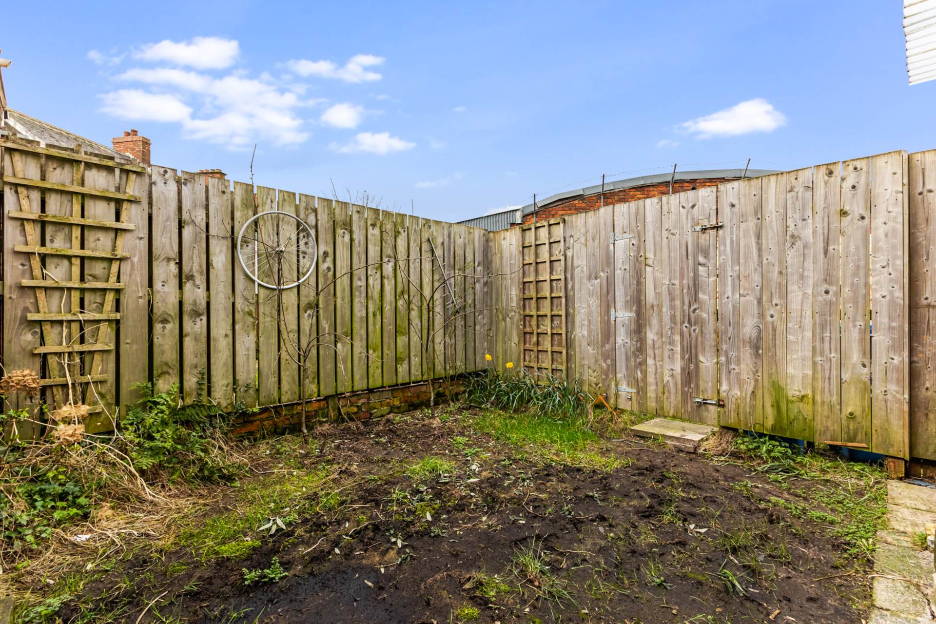 OutsideFront garden in small stones and path. Rear yard and rear garden in lawn (Needs seeded) and paving