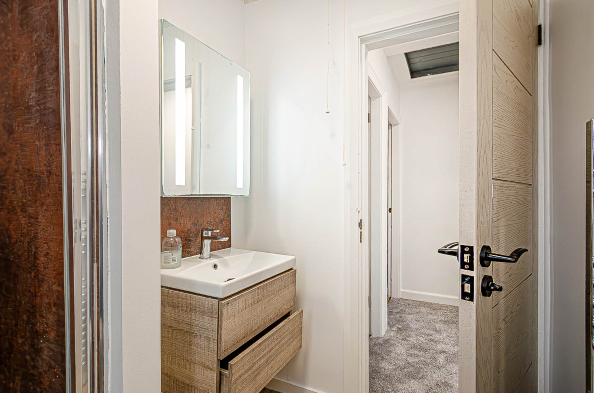 Upstairs, there are two well-proportioned bedrooms along with a modern shower room fitted with quality fixtures.