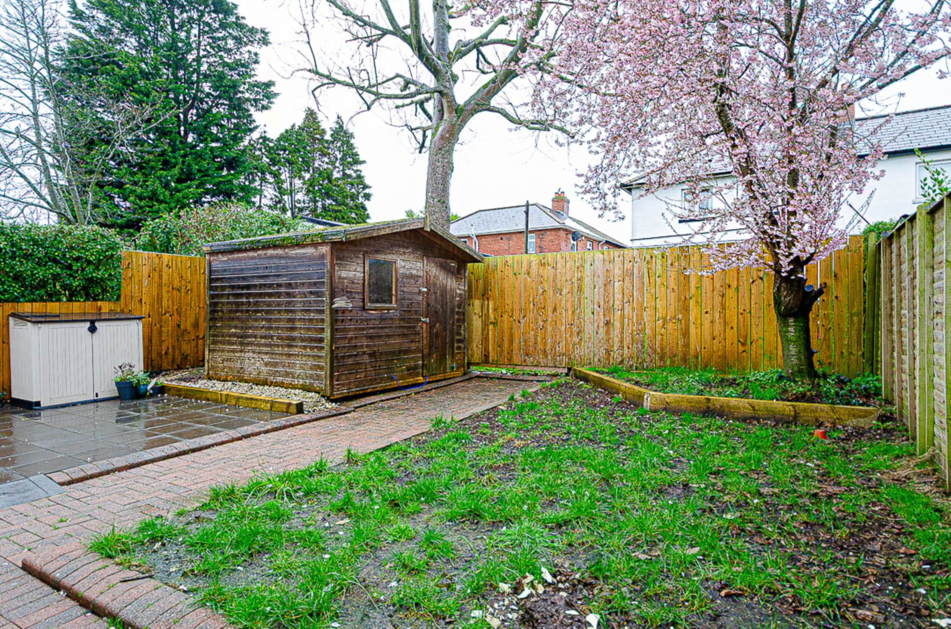 OutsideFrontage in tarmac, paving and small stones to side, and rear garden in paving, brick paving, lawn (in need of seeding), trees and shrub beds