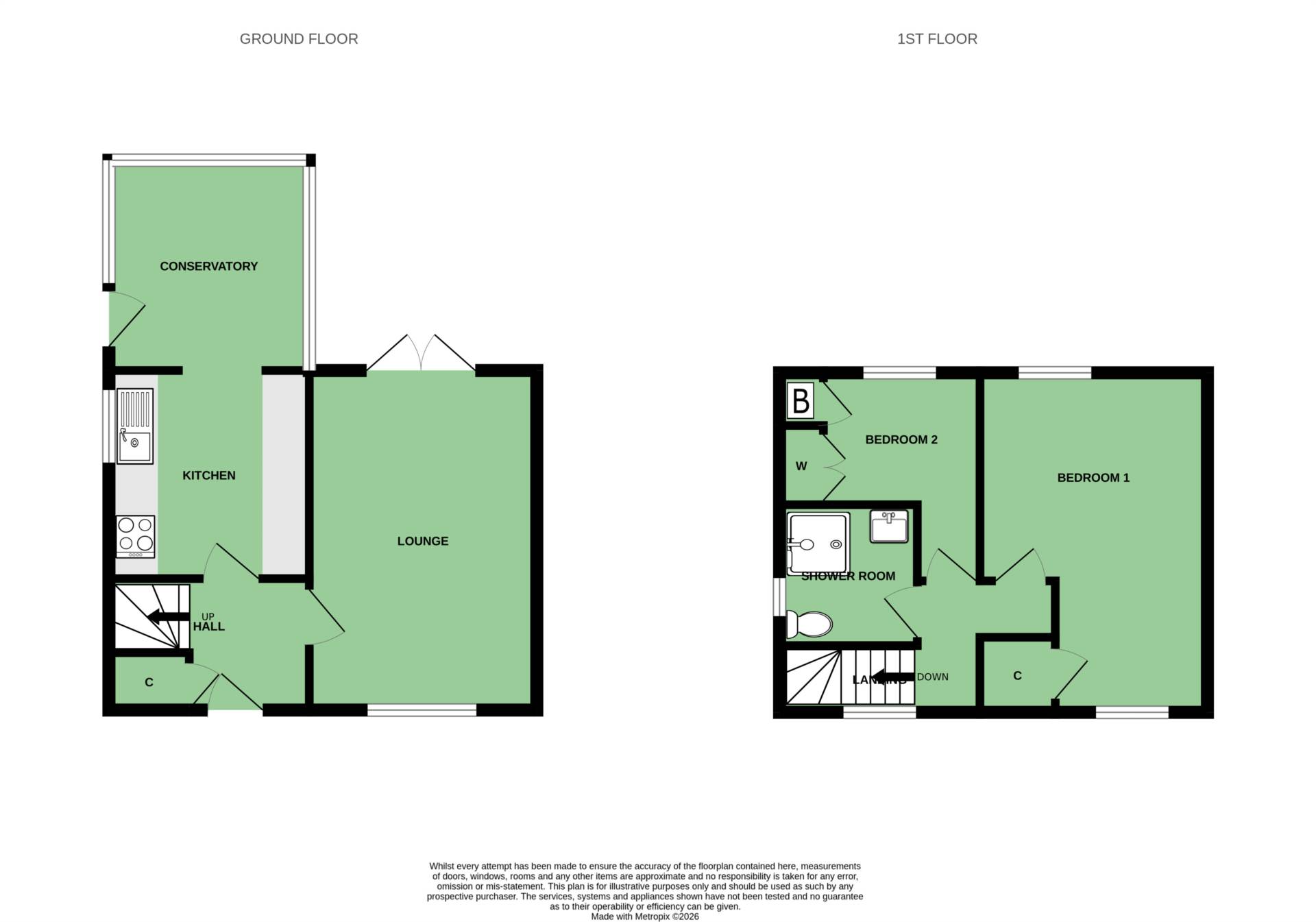 First floorBedroom 1 - 15'3" (4.65m) x 9'10" (3m) MaxBedroom 2 - 9'4" (2.84m) Max x 9'1" (2.77m) MaxBuilt in cupboard and gas boiler in cupboard