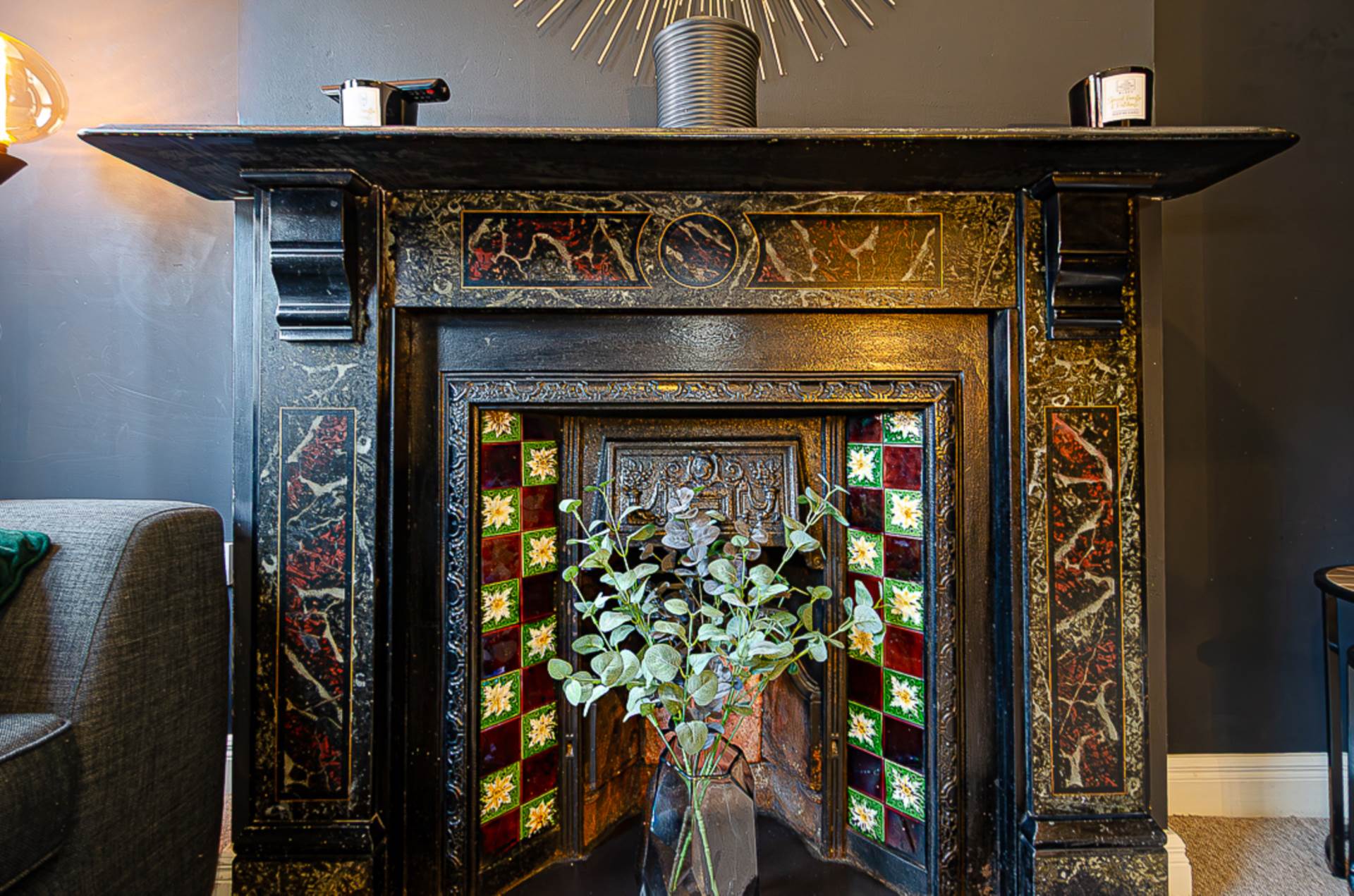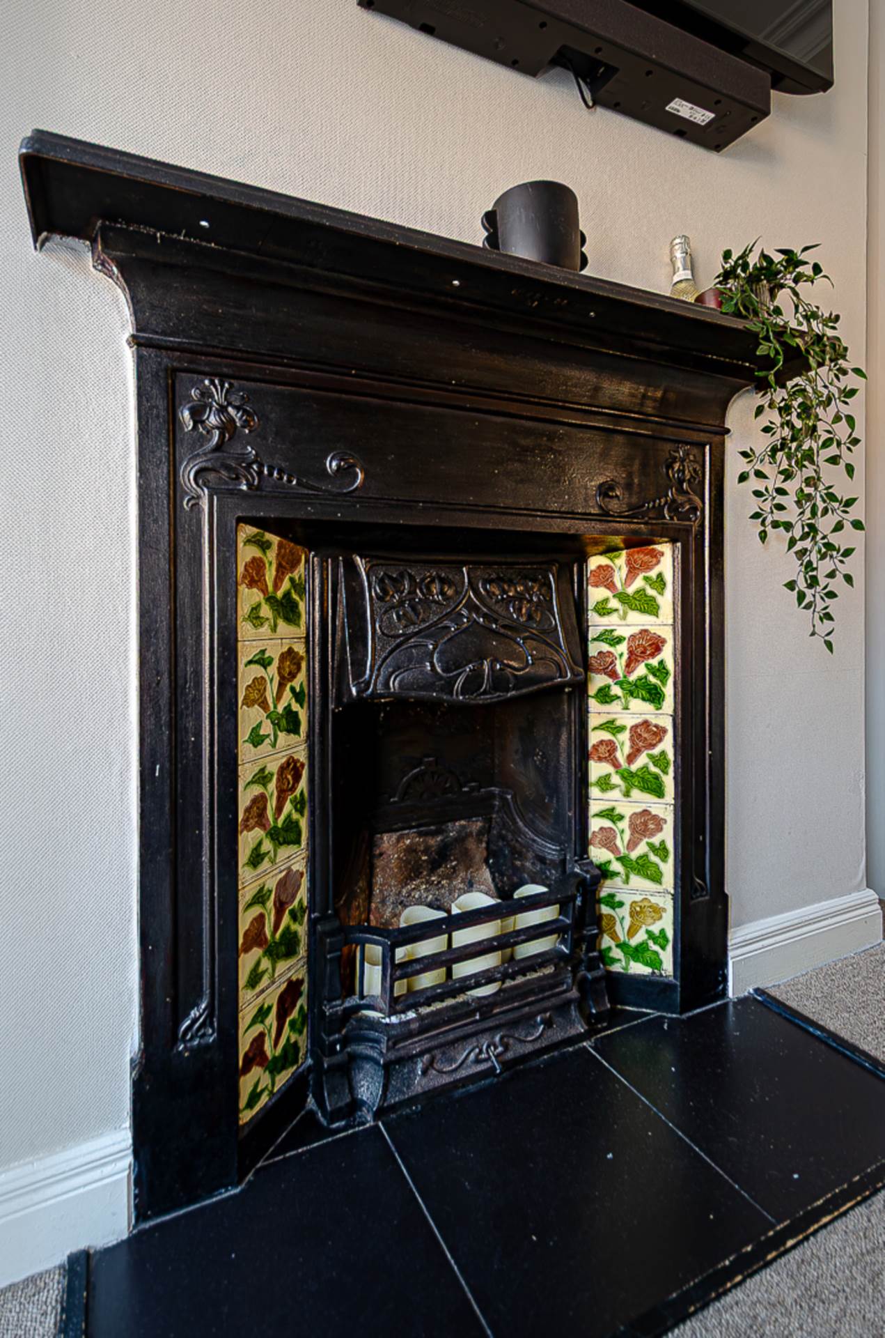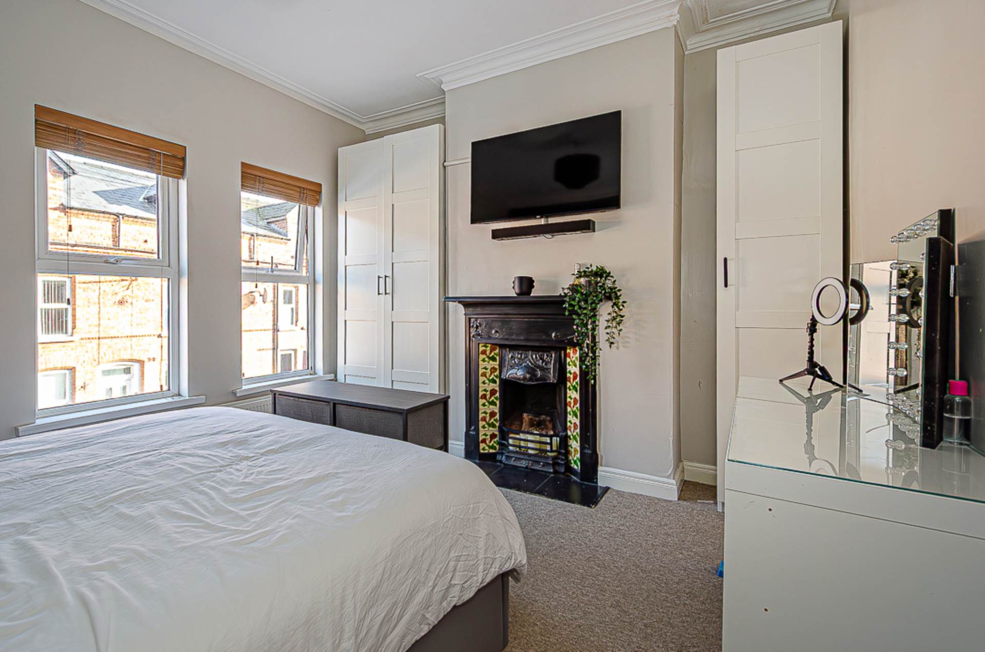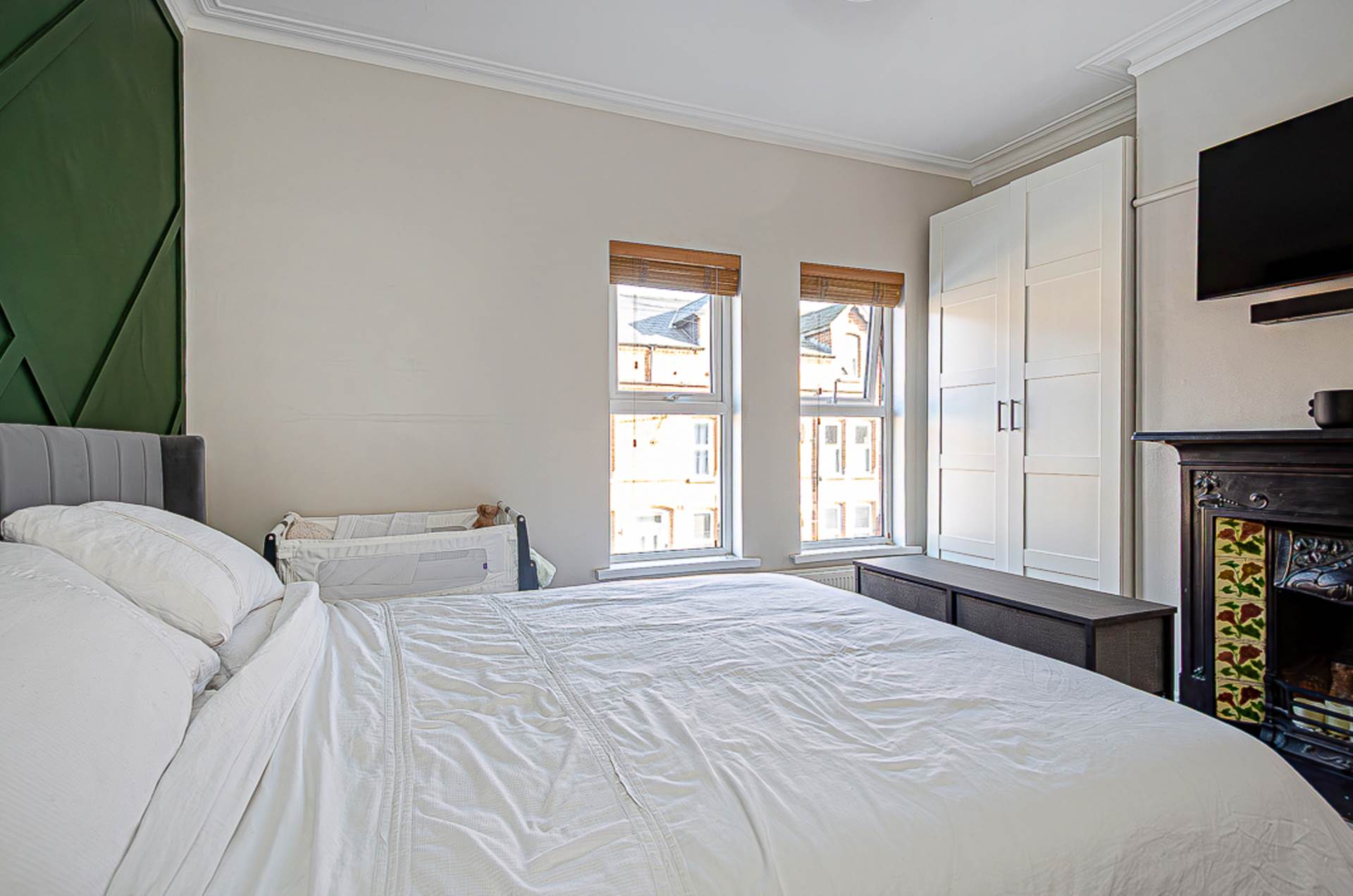 First floorBedroom 1 - 13'0" (3.96m) x 10'10" (3.3m)Modern timber panelling, cornice and feature cast iron fireplace with tiled inset