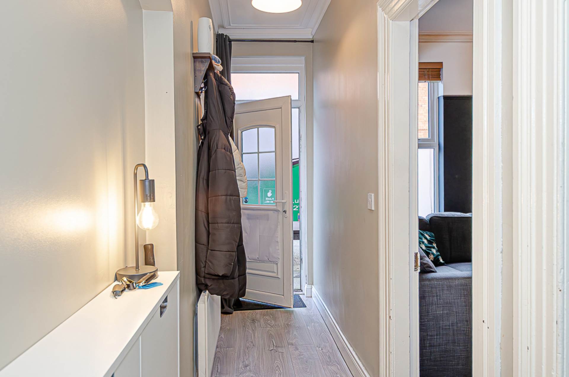 Entrance hallTimber laminate floor and cornice