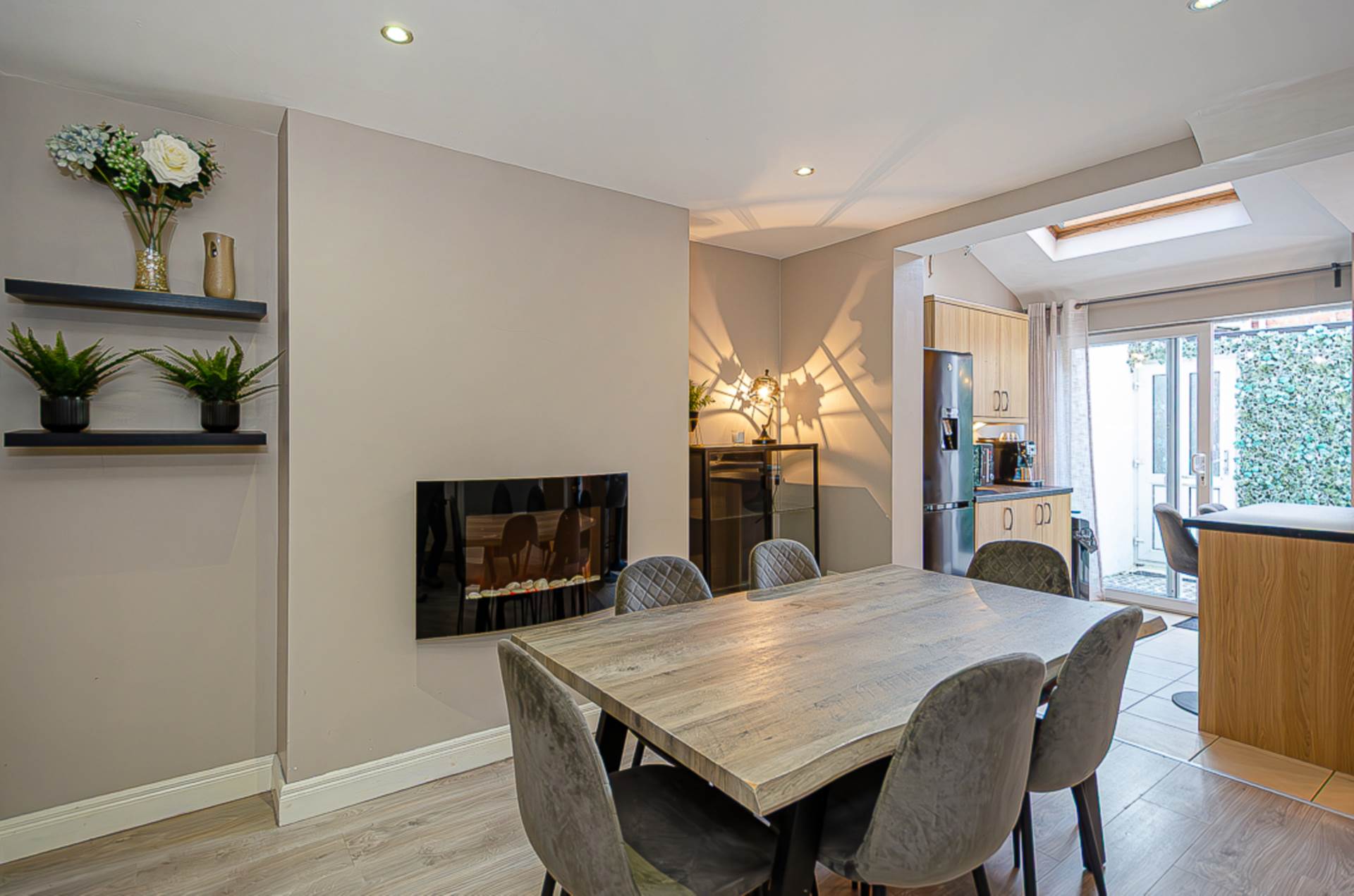 - Dining room with wall hung electric fire