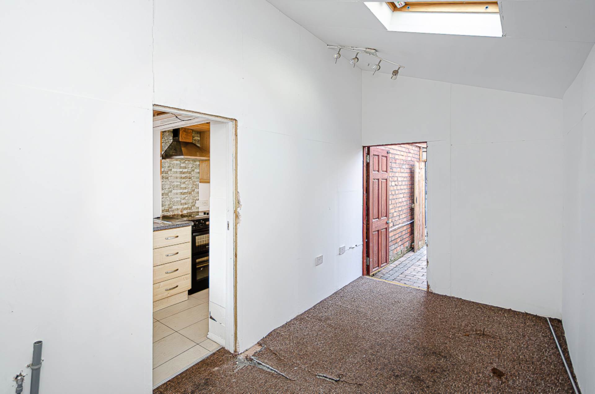 Lean to/utility area - 15'7" (4.75m) x 6'3" (1.91m)Velux window, spotlights and plumbing for washing machine